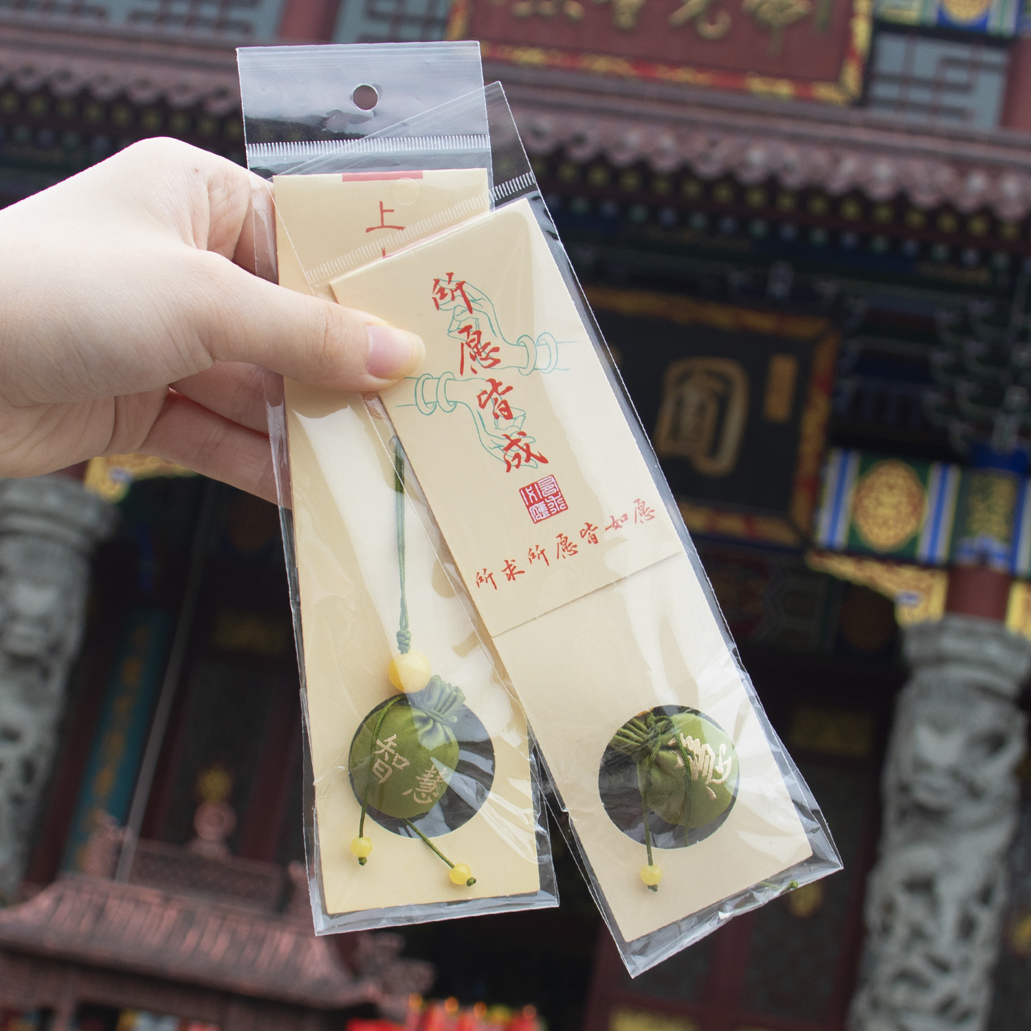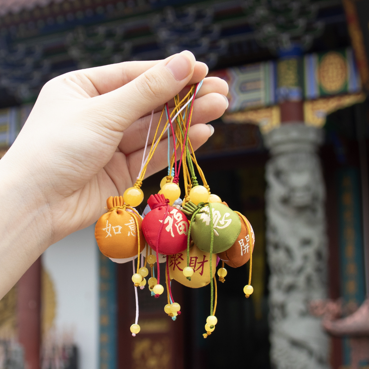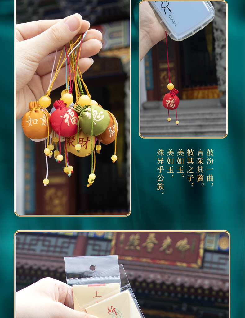 普陀山杭州法喜景区文化香囊随身圆球香包檀香手机钥匙小挂件