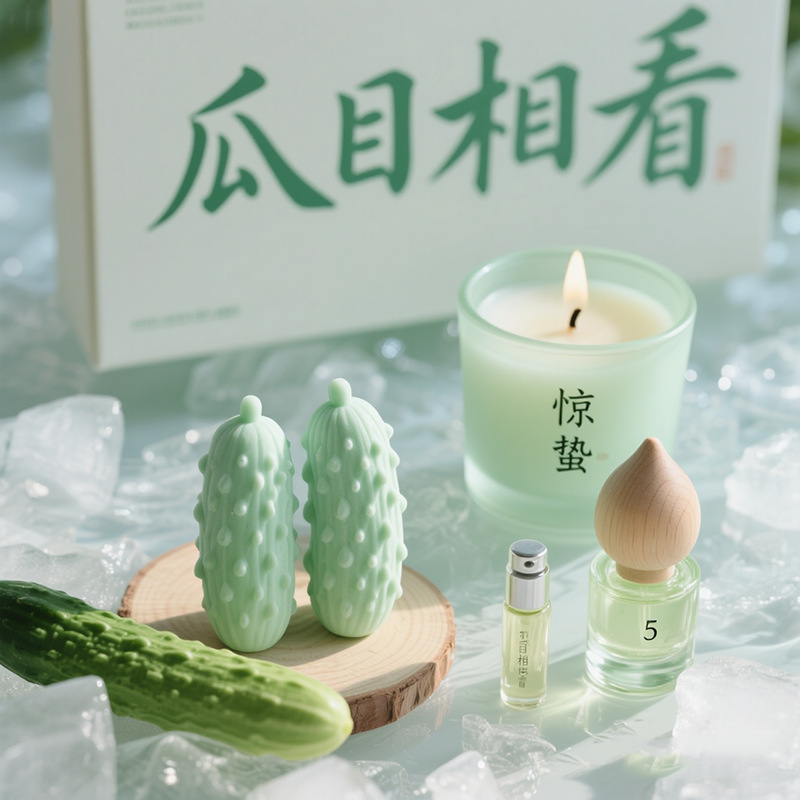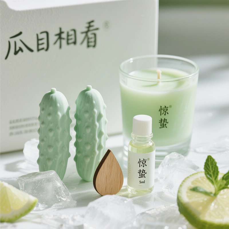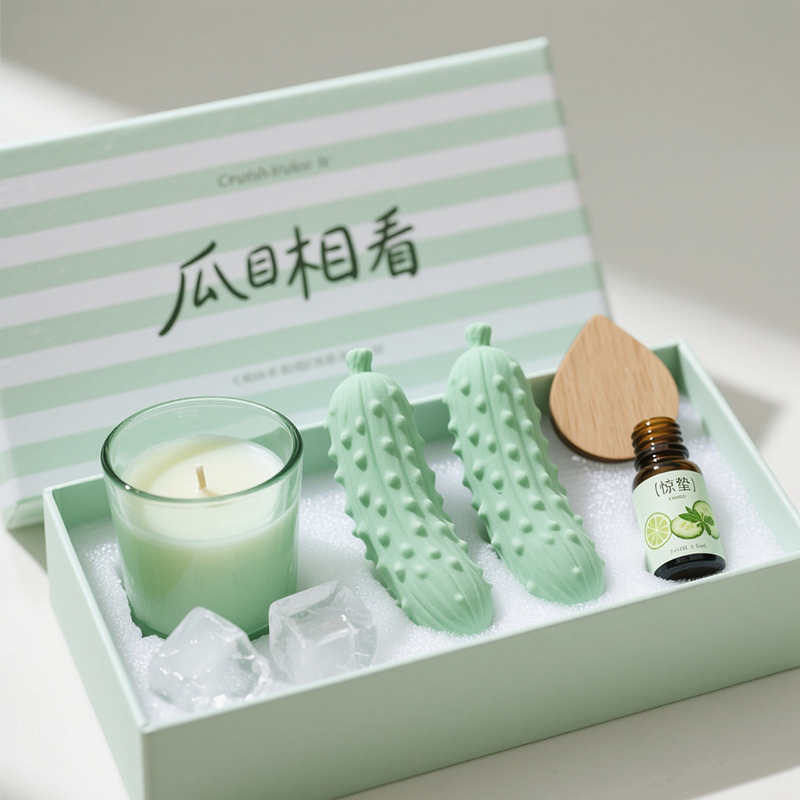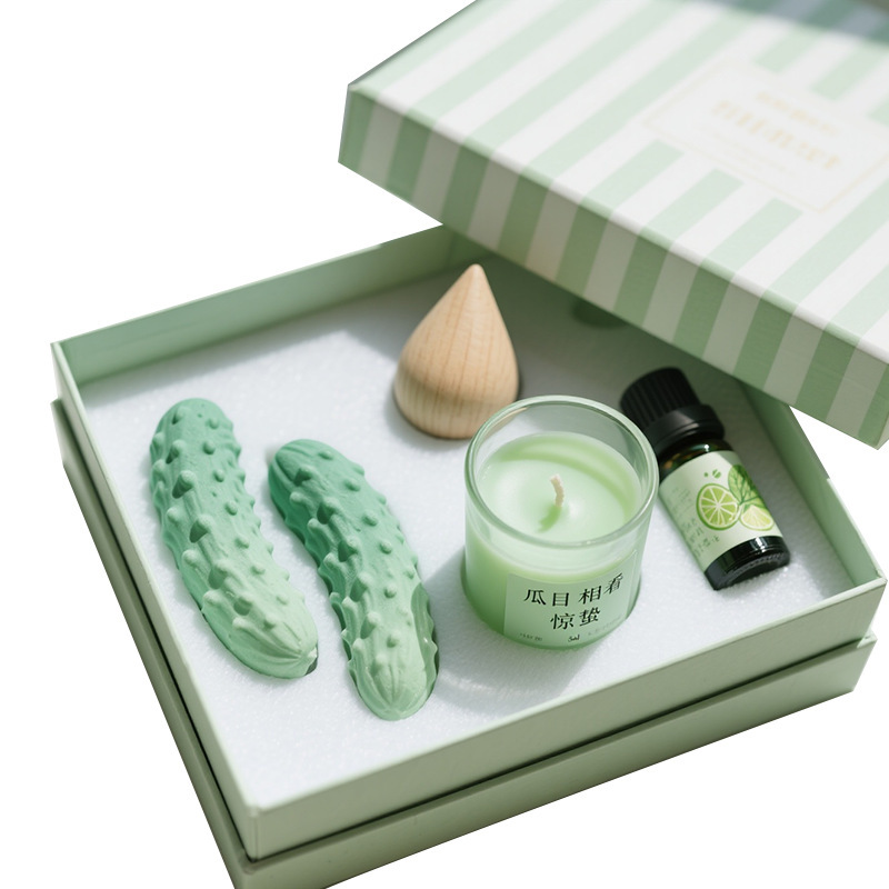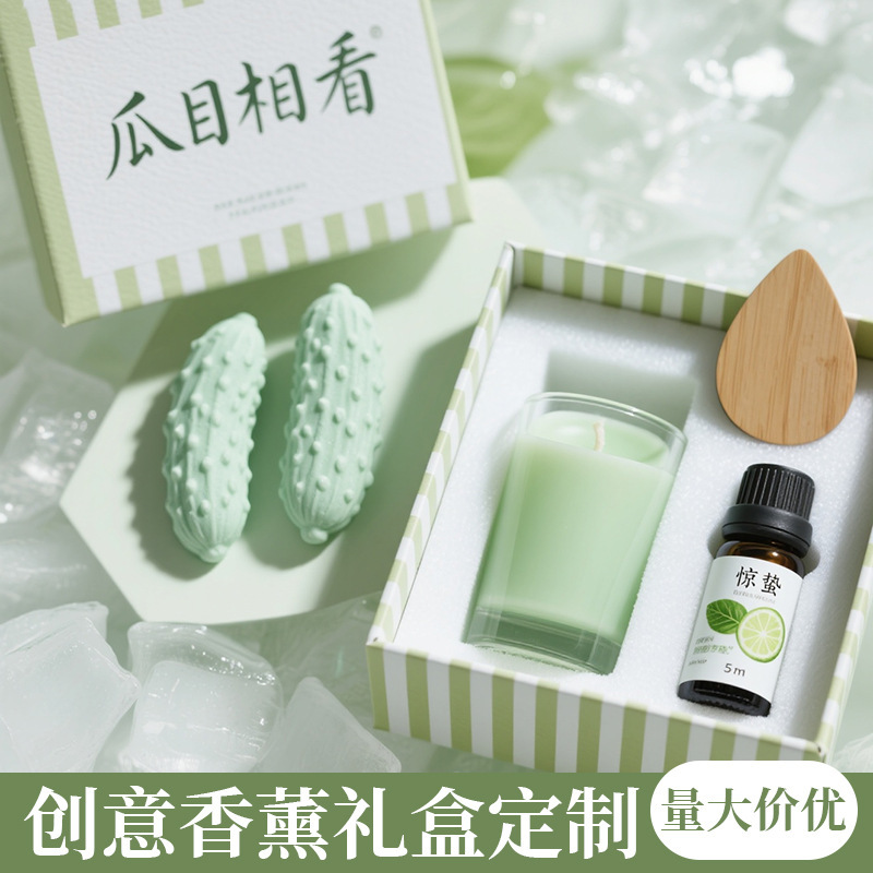 香薰蜡烛植物精油香礼盒香氛瓜目相看创意香薰礼盒绿清新石膏摆件