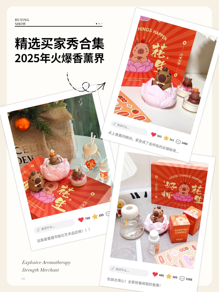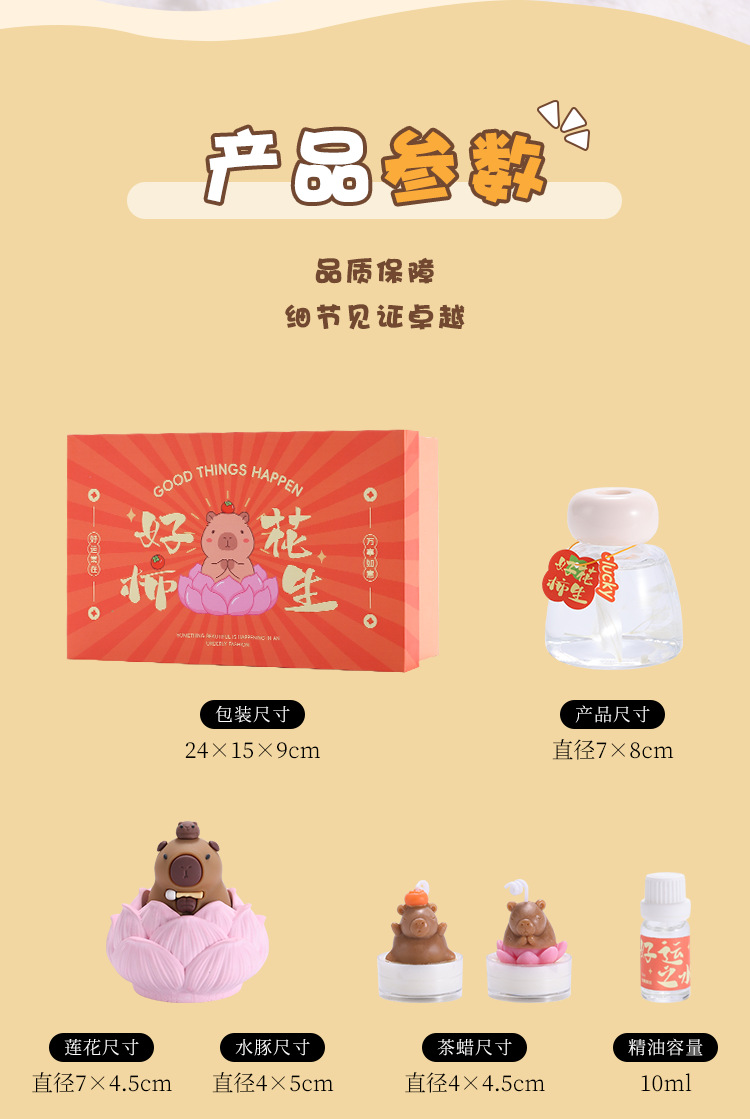 卡皮巴拉水豚可爱卡通香薰蜡烛摆件礼盒送女朋友节日礼物批发