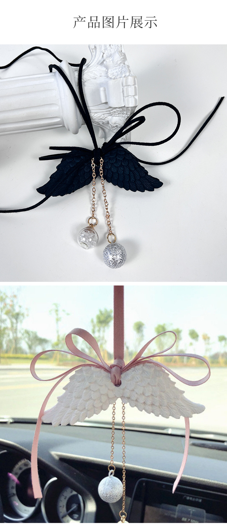 车载石膏香薰挂件固体香氛天使翅膀吊坠空气清新汽车香熏留香