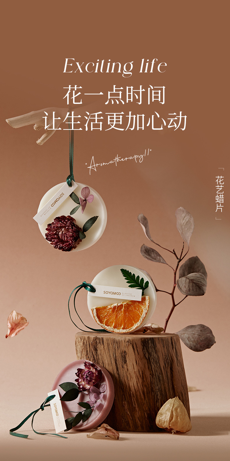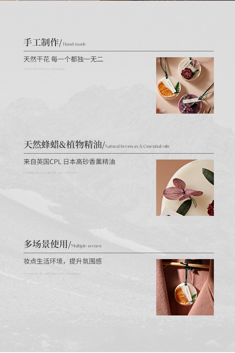 花艺香薰蜡片 家用留香衣柜除味固体香氛挂件 车载挂件伴手礼