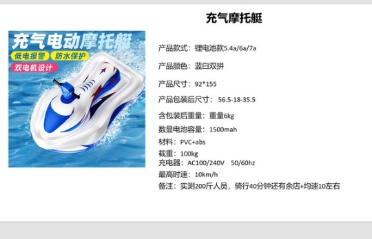 新款动力充气充电动摩托艇水上坐骑戏水玩具家用男女把手自由转向