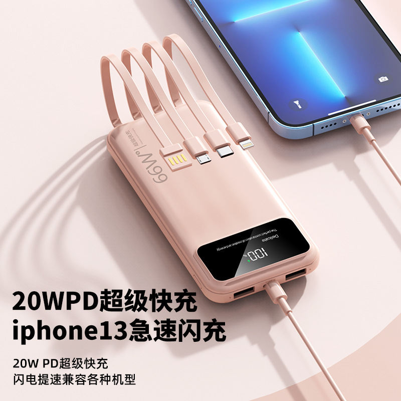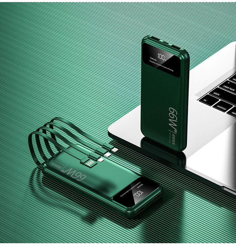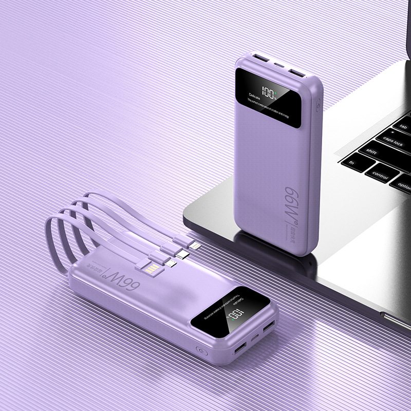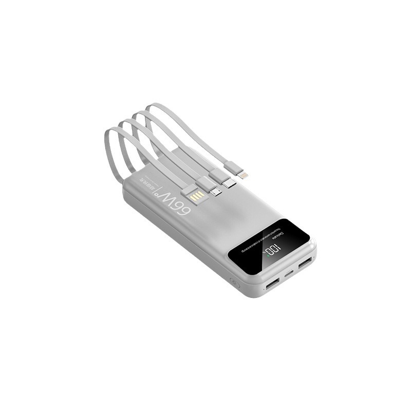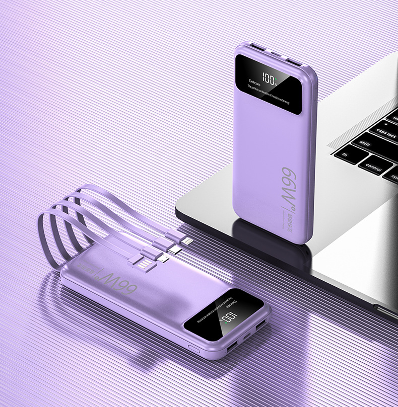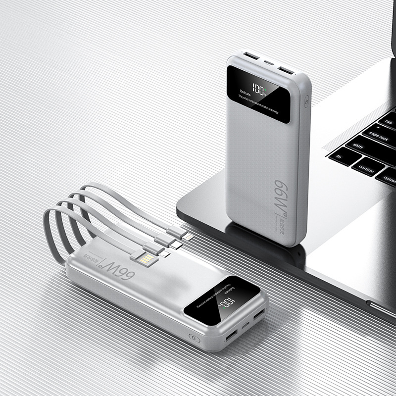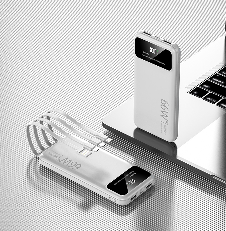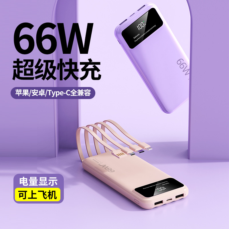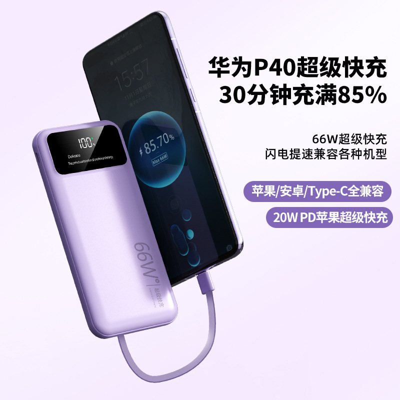 跨境超大容量充电宝30000毫安66W快充共享数显便携自带线移动电源