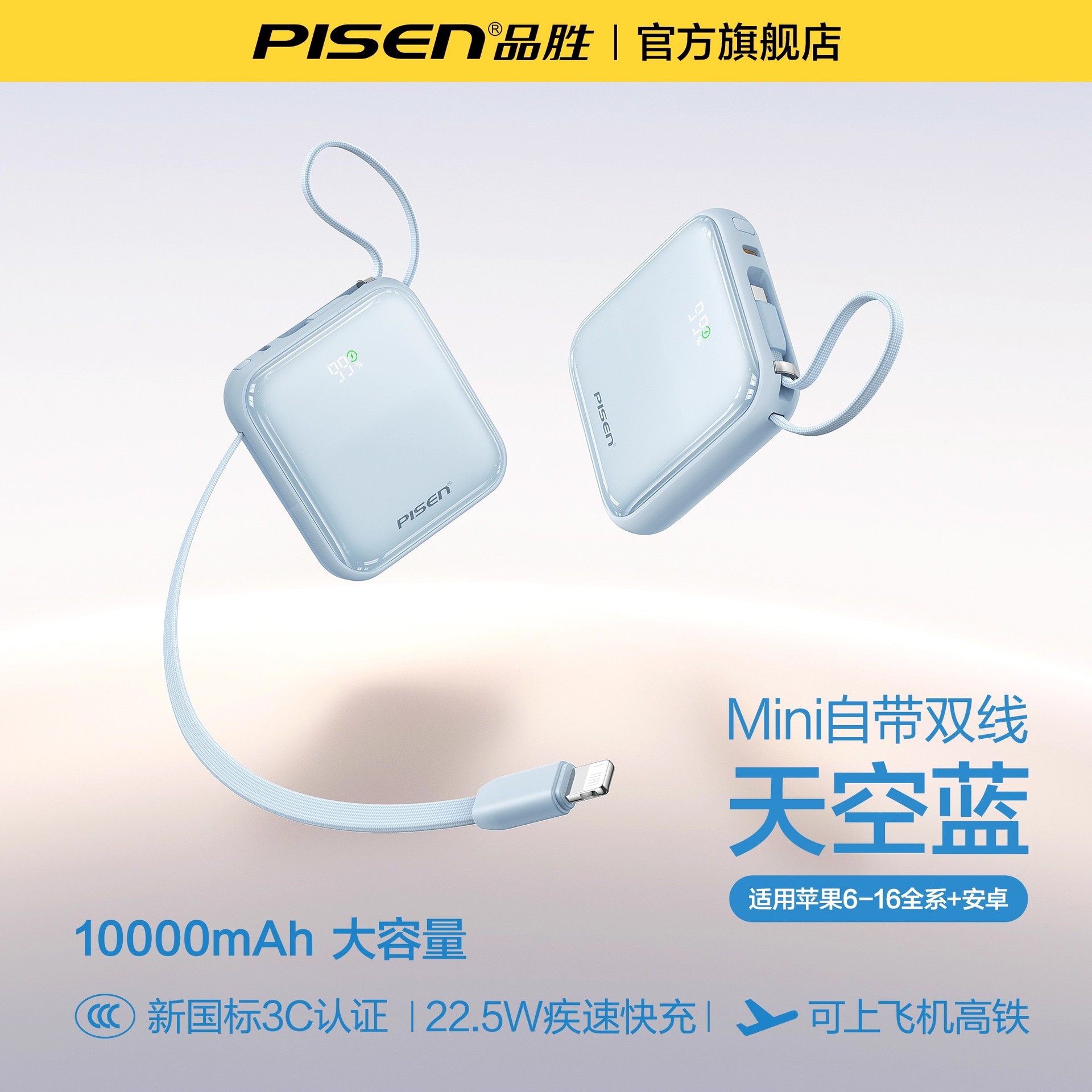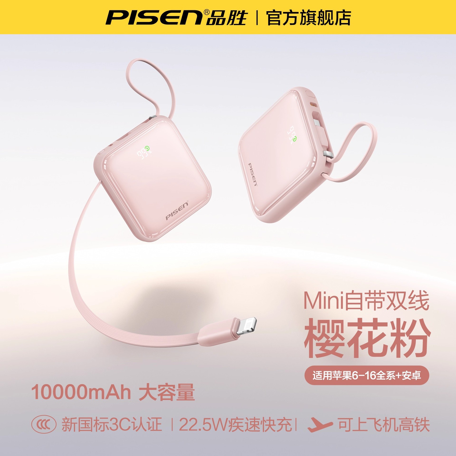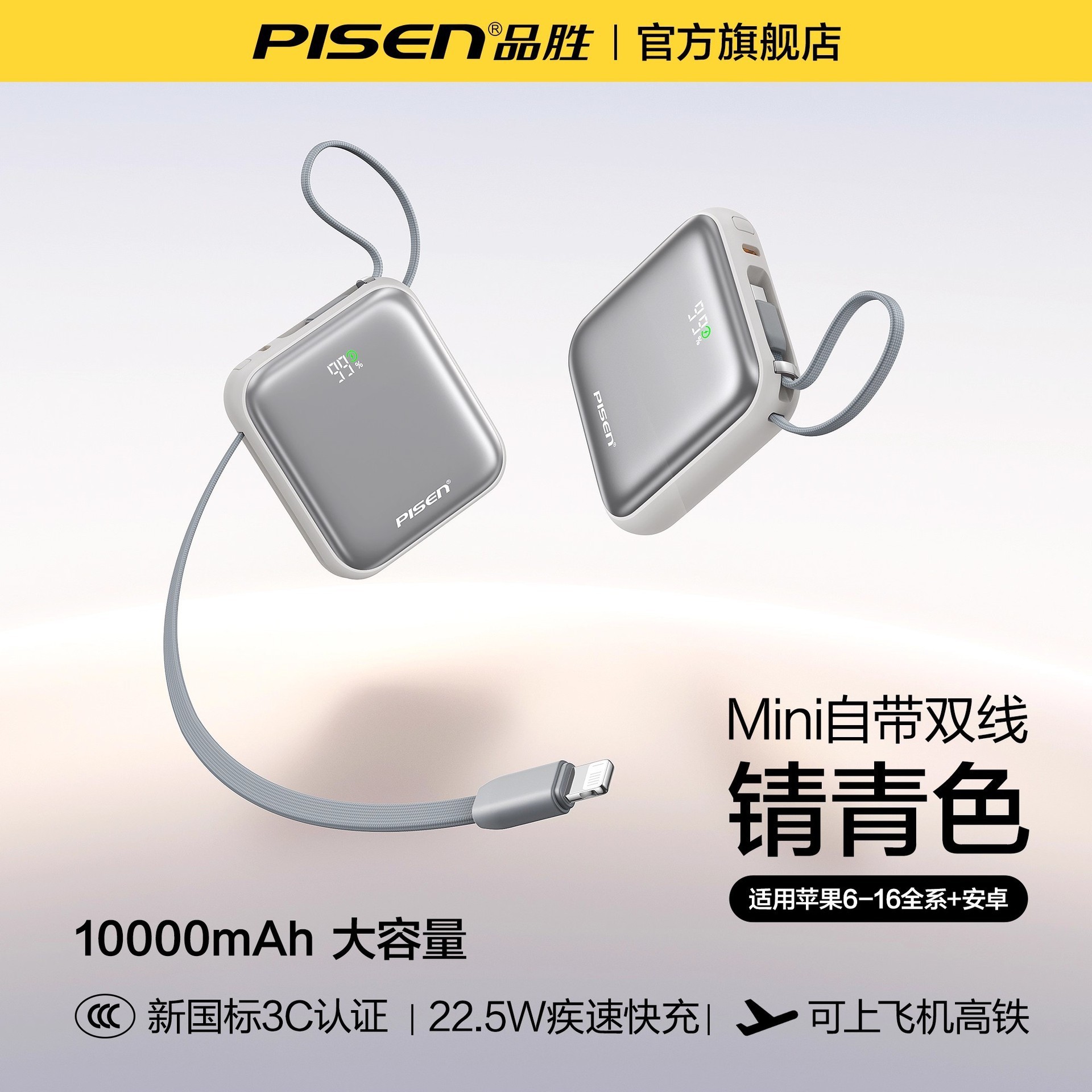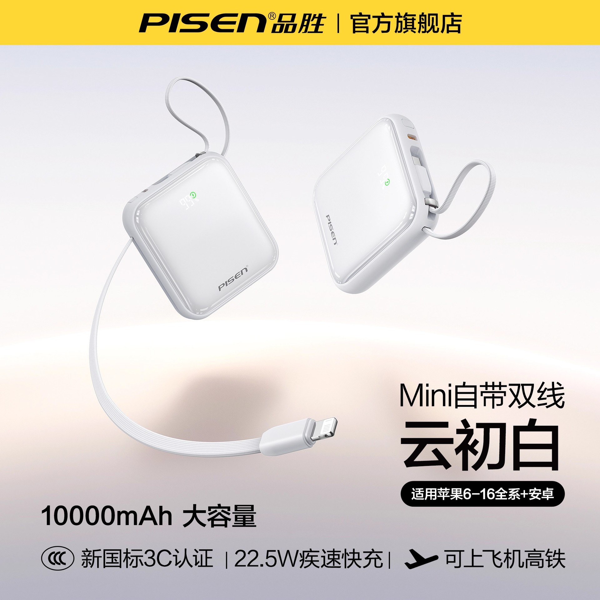 品胜充电宝10000毫安22.5W快充便携大容量迷你自带线移动电源定制