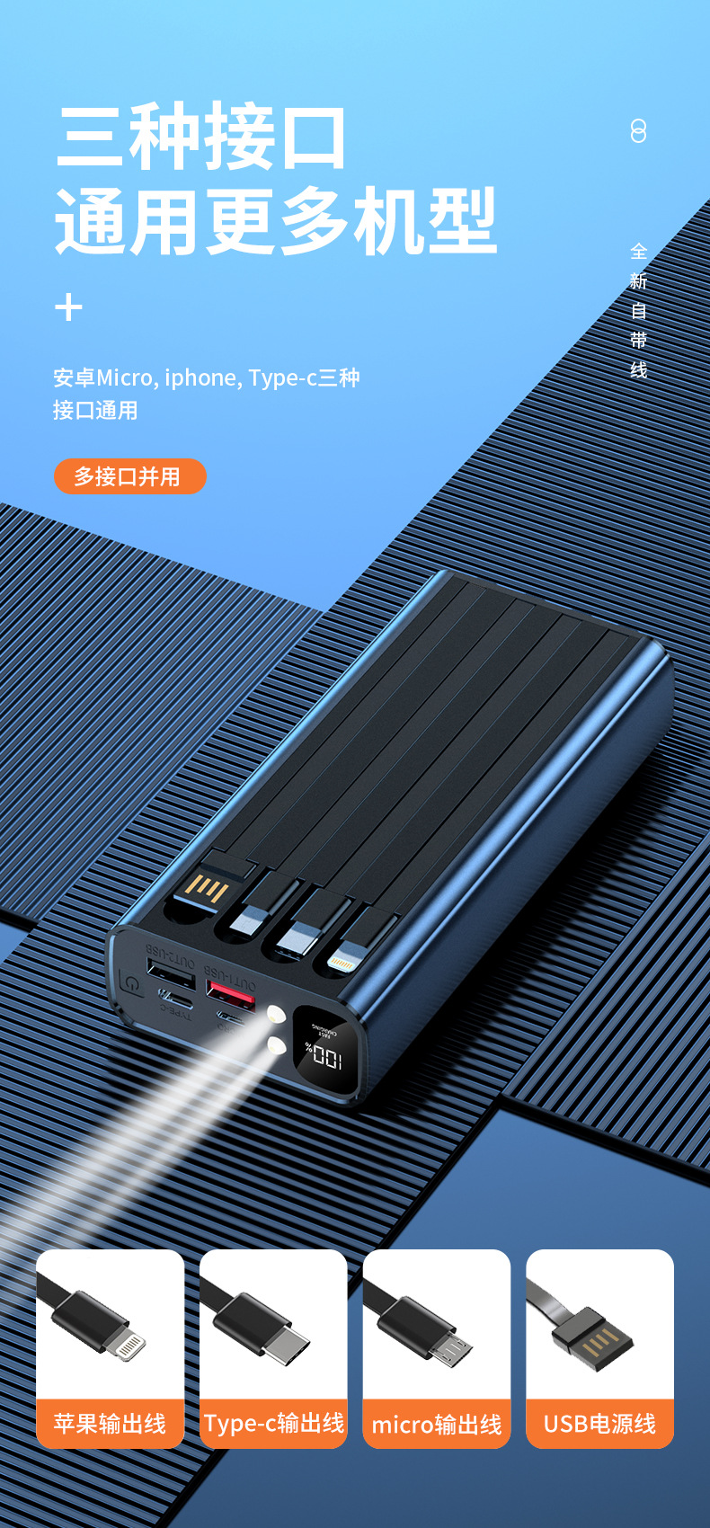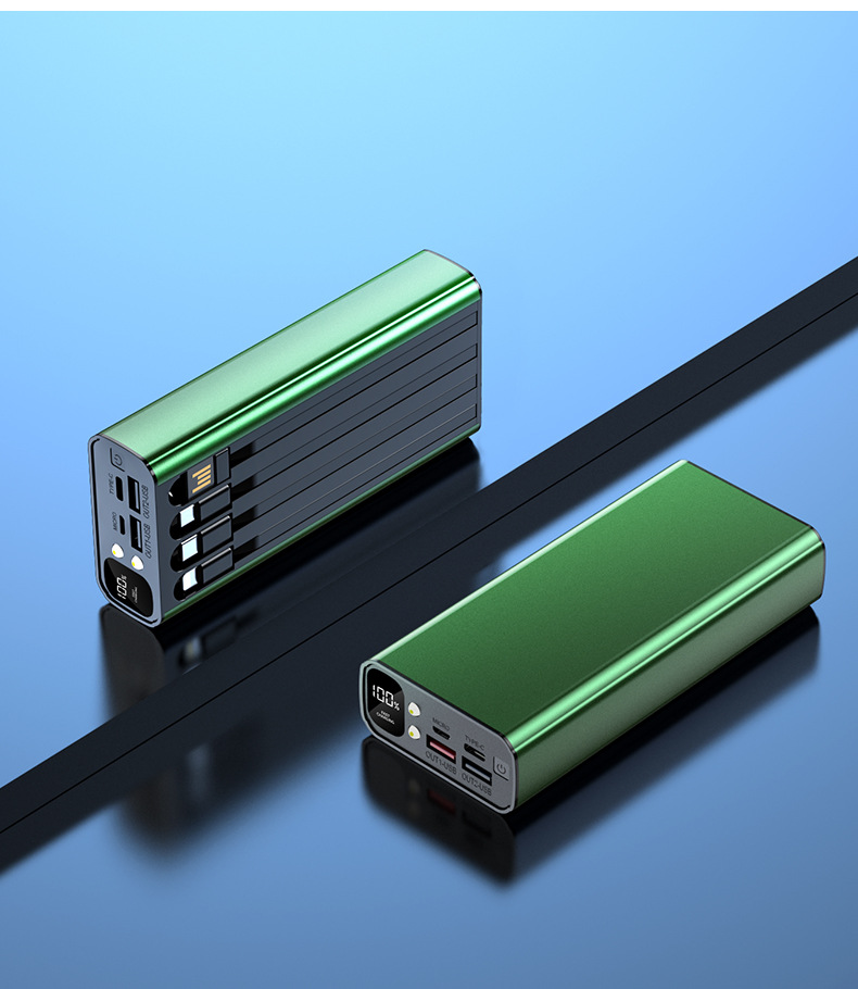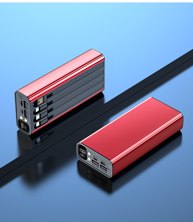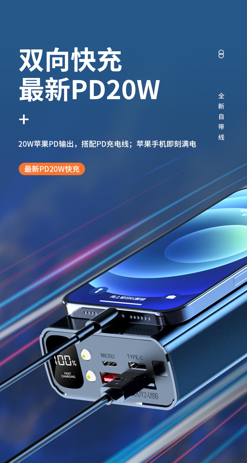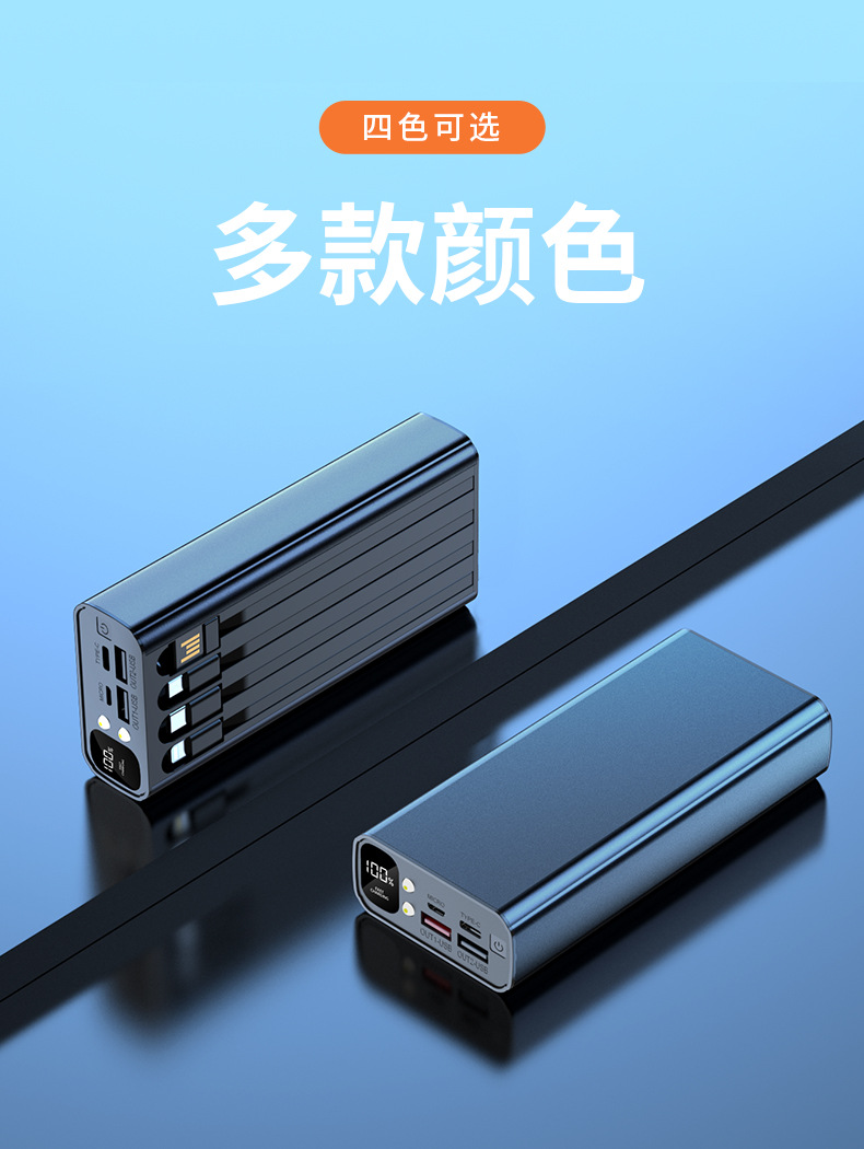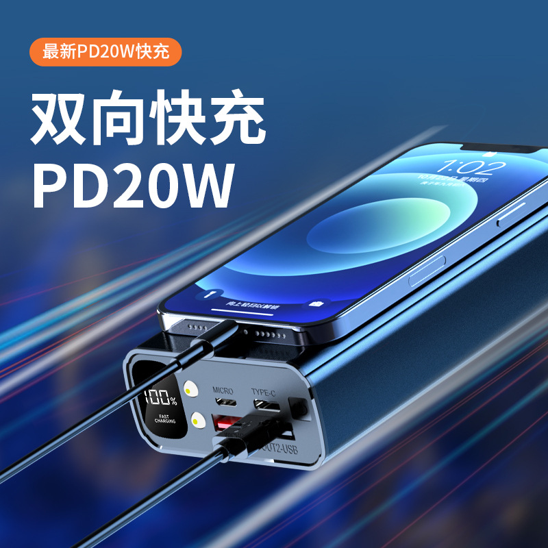 跨境热销铝合金快充PD22.5W充电宝自带线移动电源20000毫安大容量