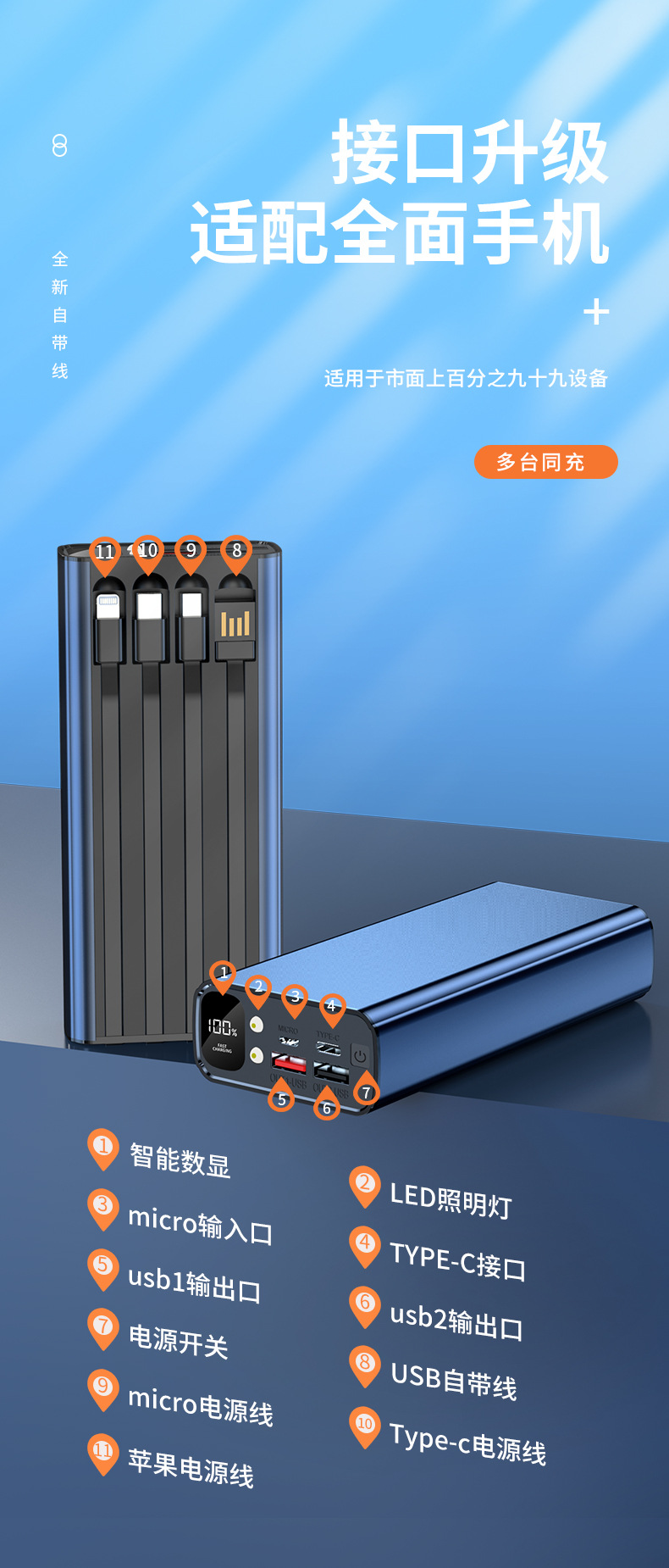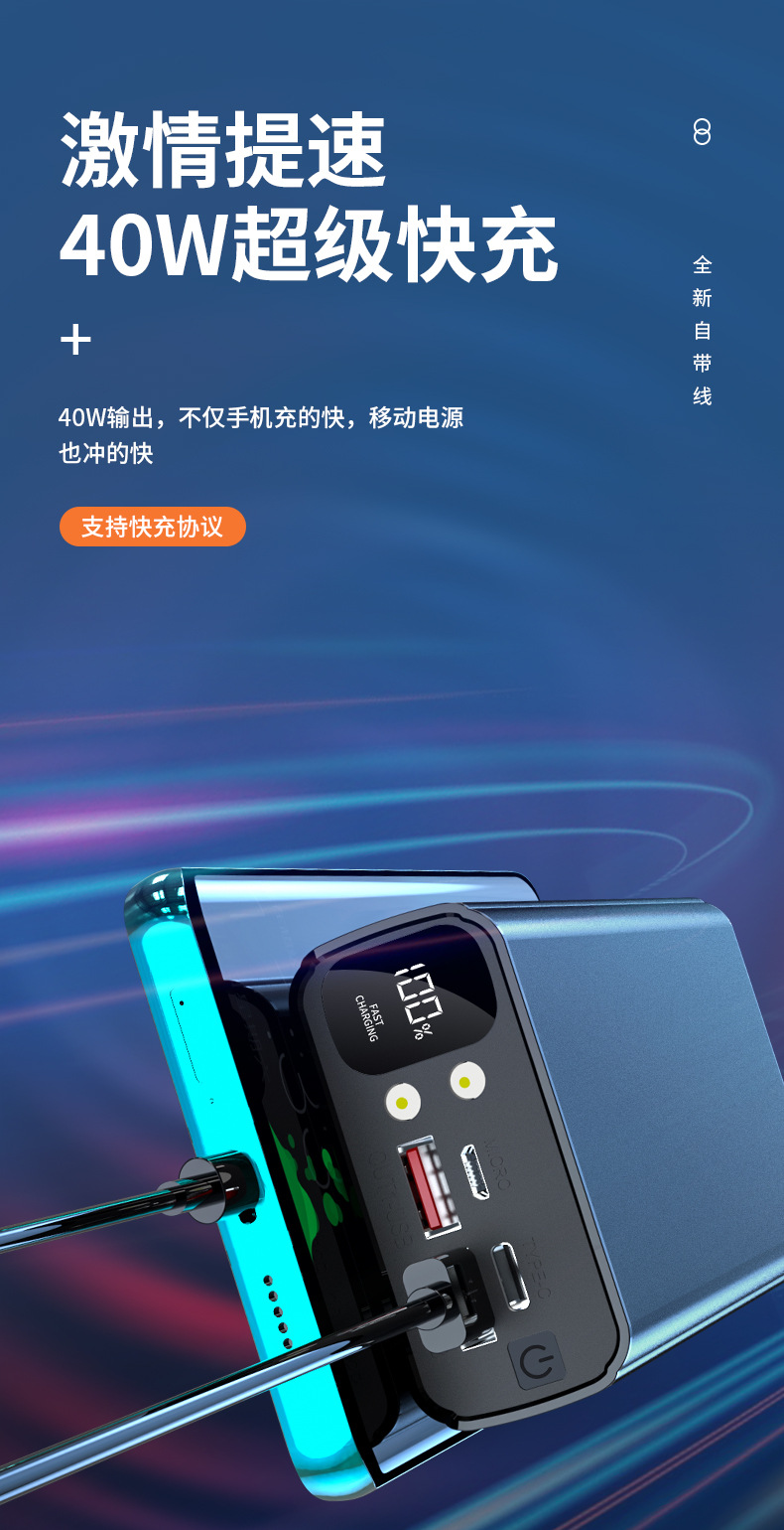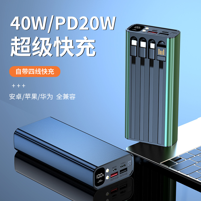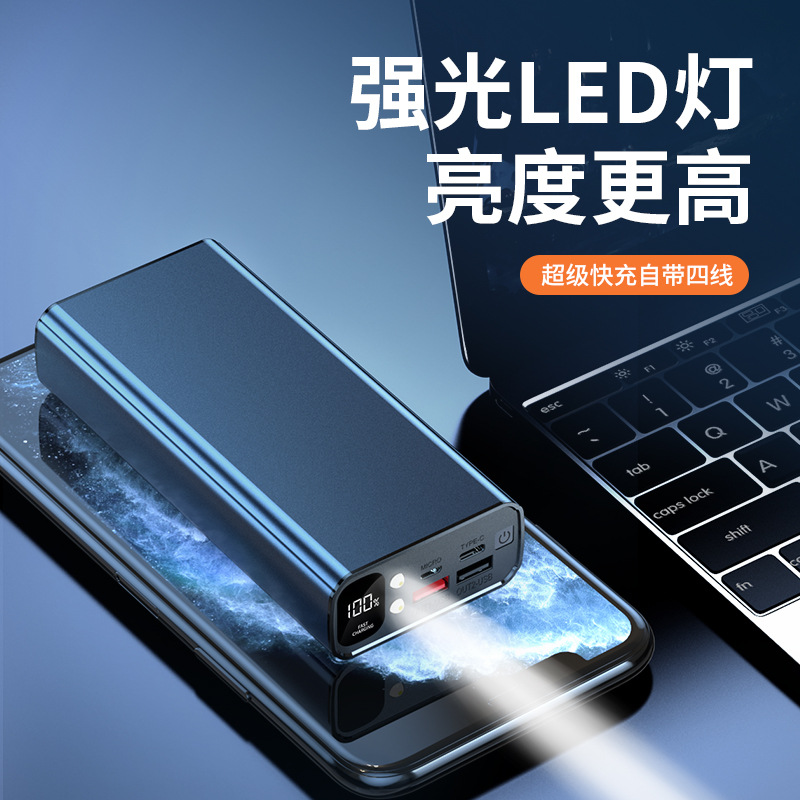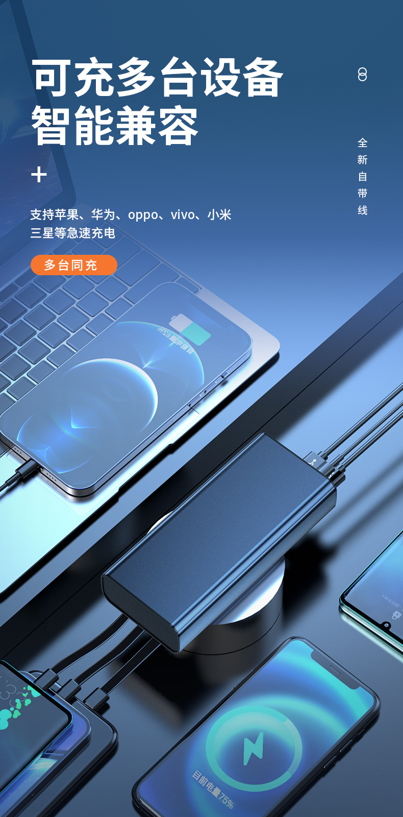 跨境热销铝合金快充PD22.5W充电宝自带线移动电源20000毫安大容量