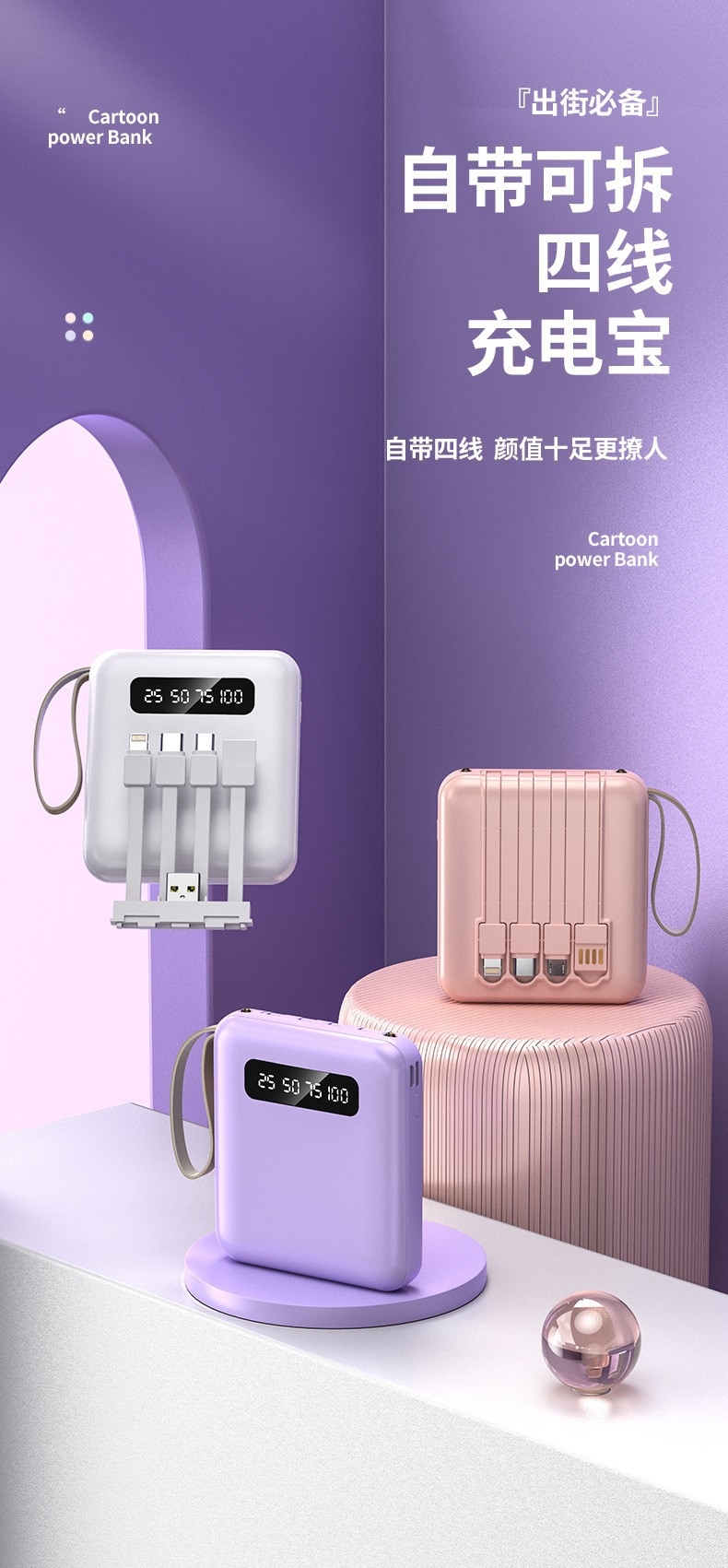3C认证迷你自带线充电宝10000毫安便捷礼品移动电源批发印制快充