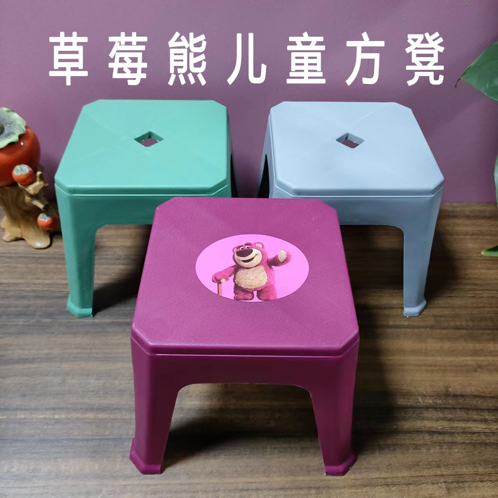 厂家批发23年高颜值新款草莓熊方凳 儿童凳 四角凳换鞋凳元宝凳