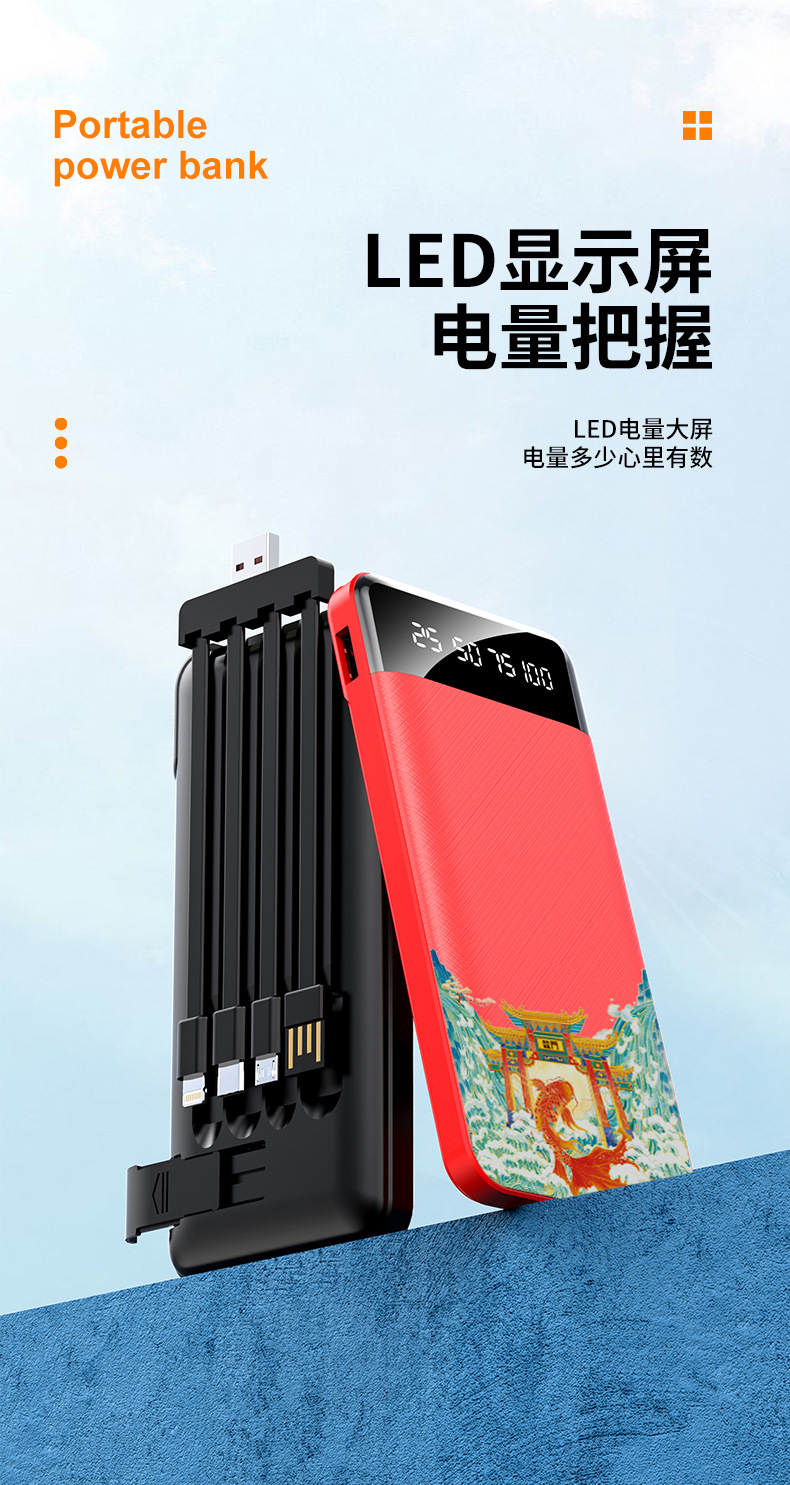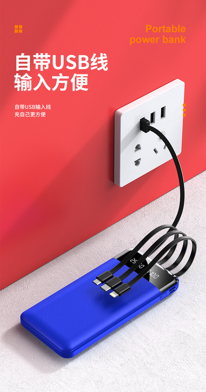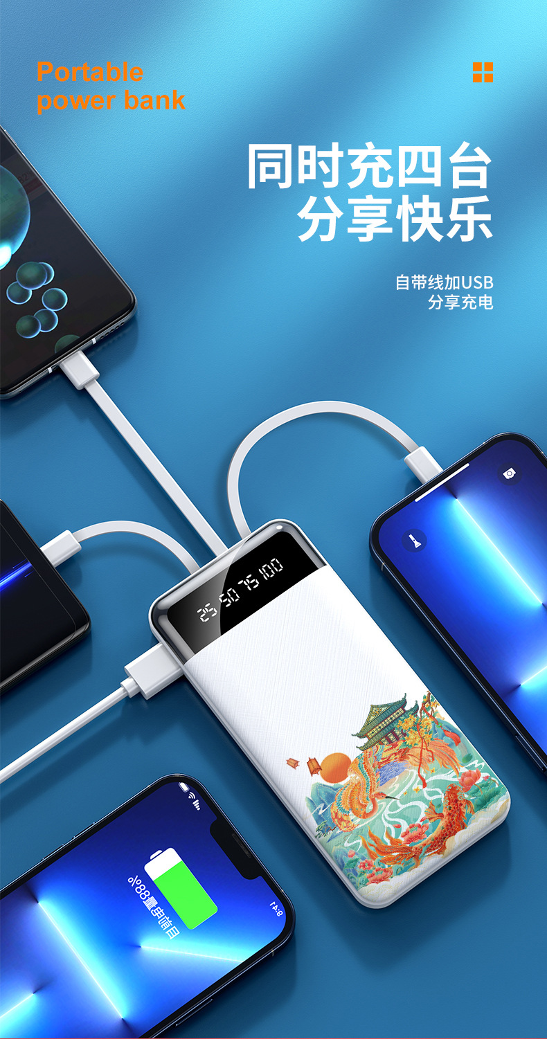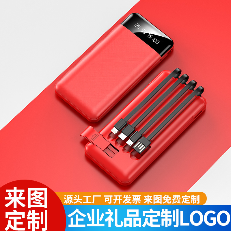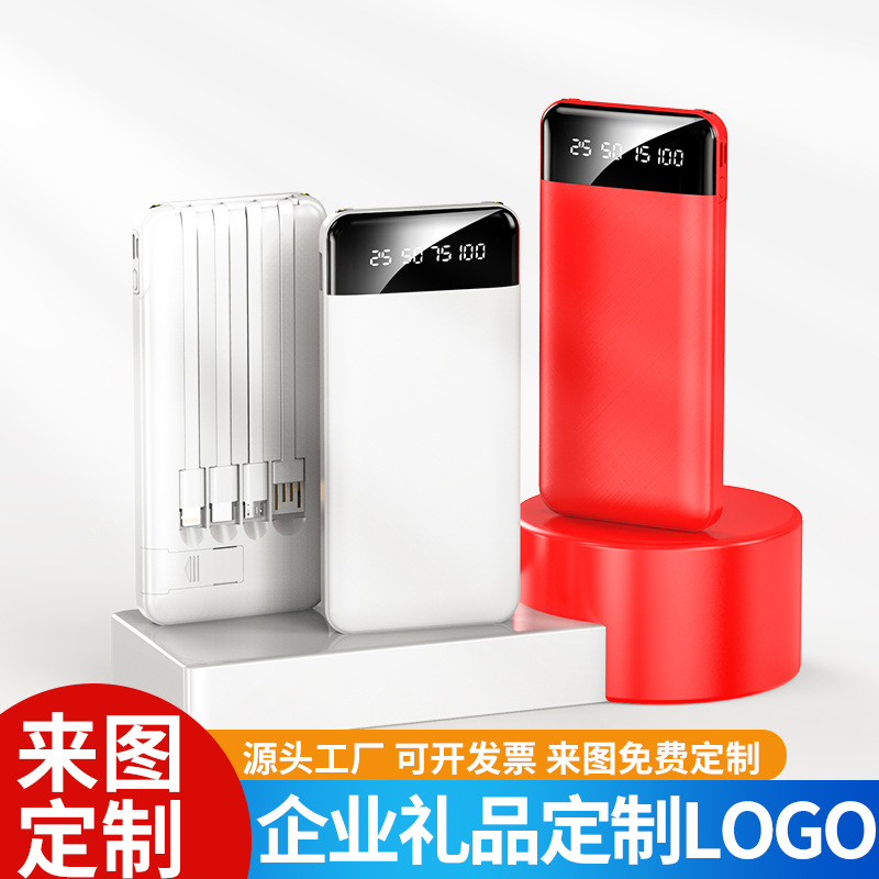 跨境批发自带线充电宝20000毫安大容量便携移动电源礼品LOGO定 制