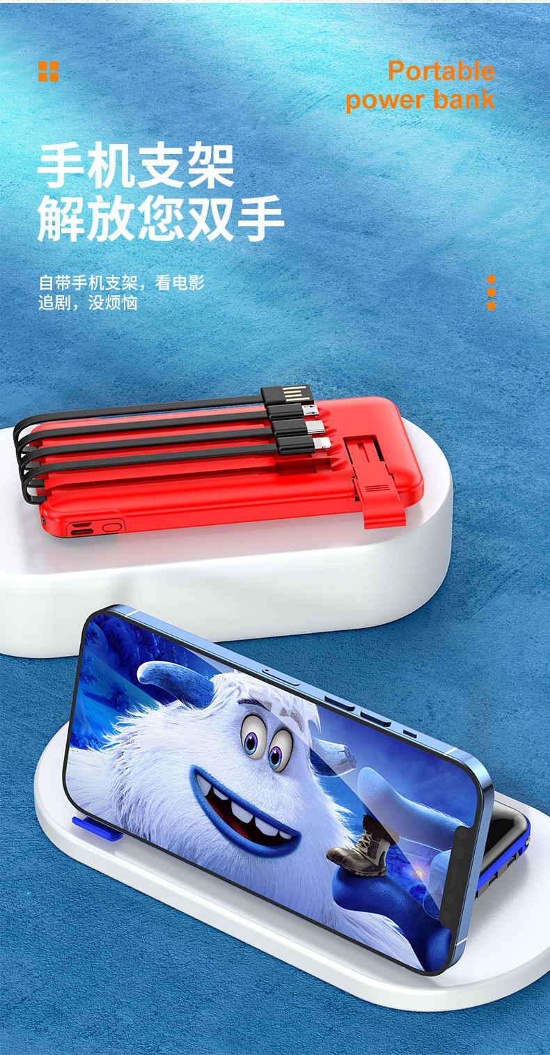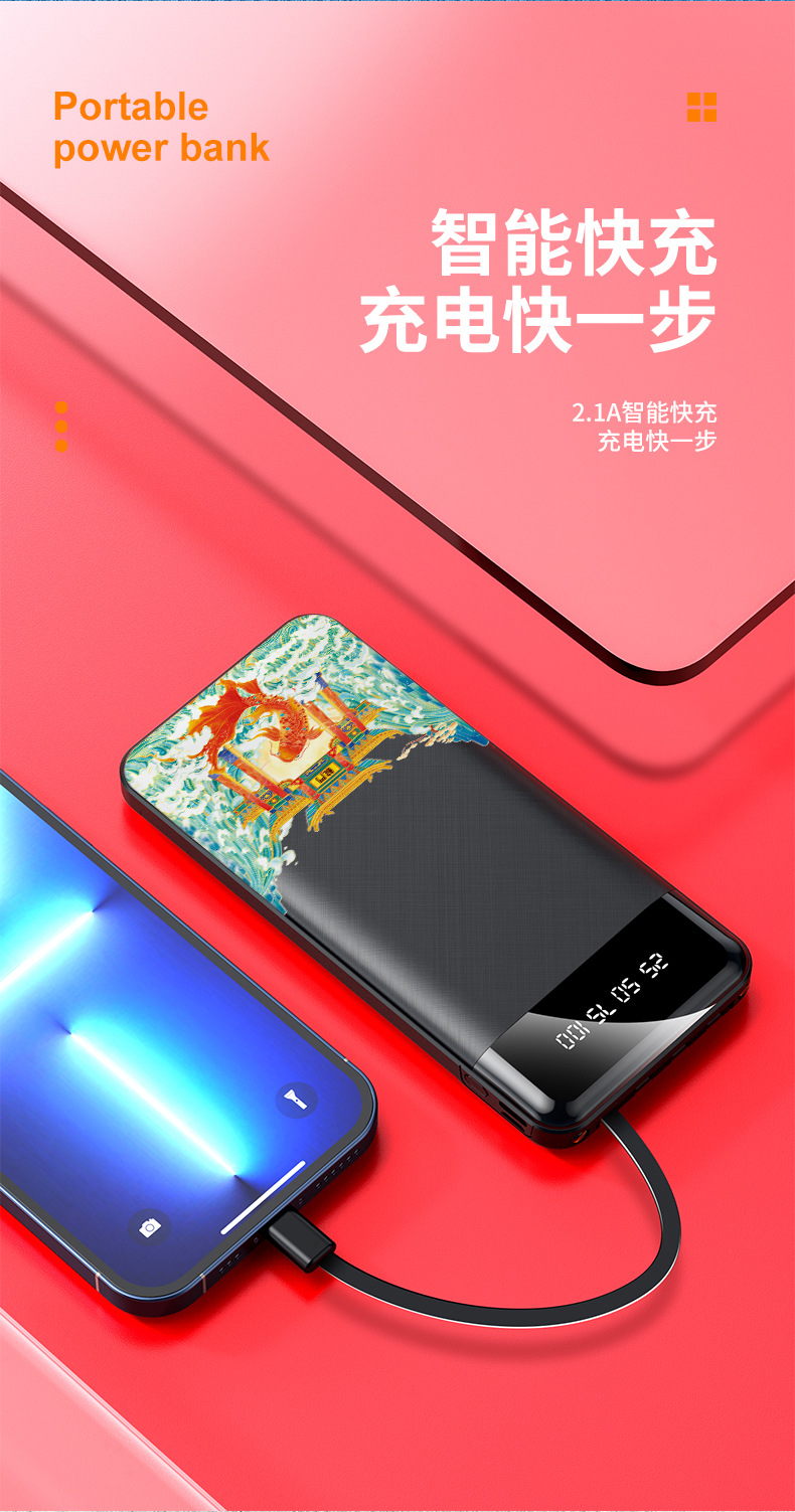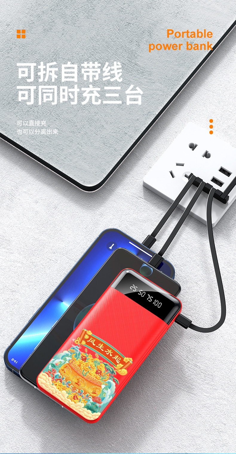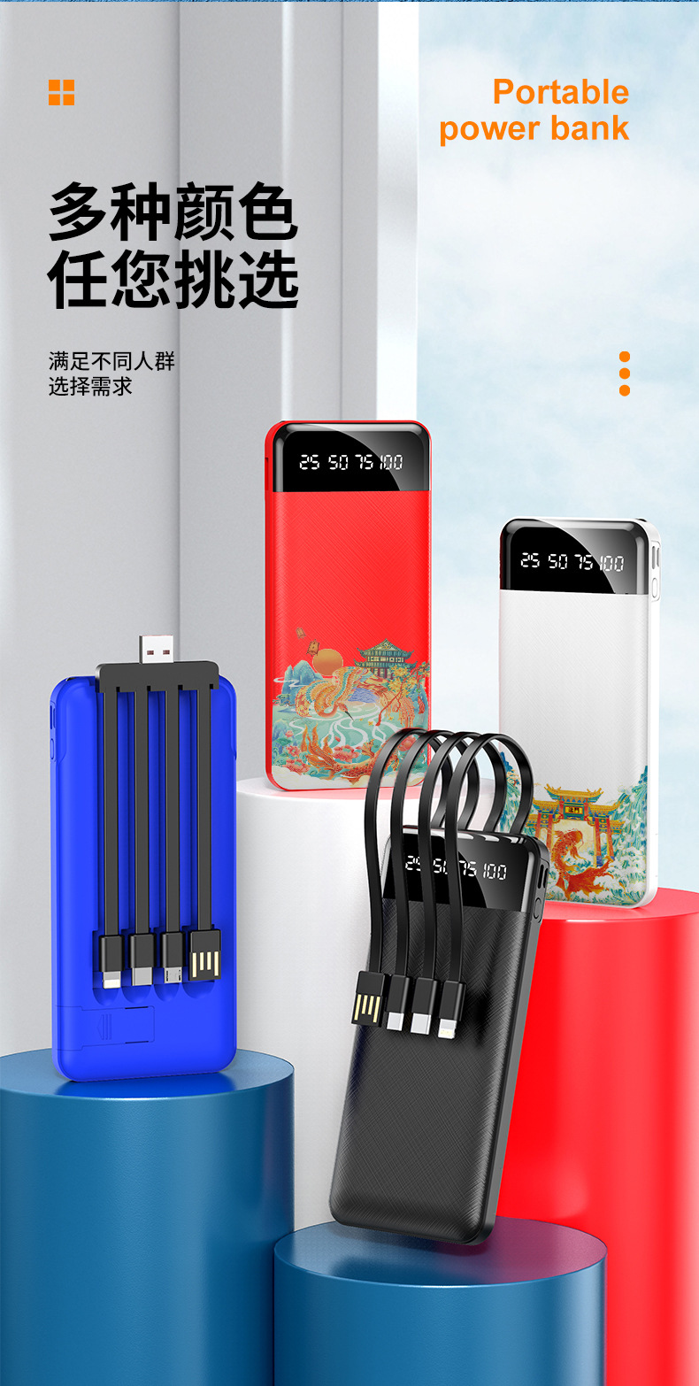 跨境批发自带线充电宝20000毫安大容量便携移动电源礼品LOGO定 制