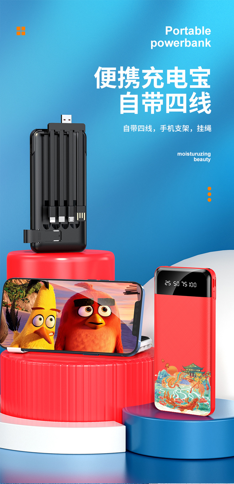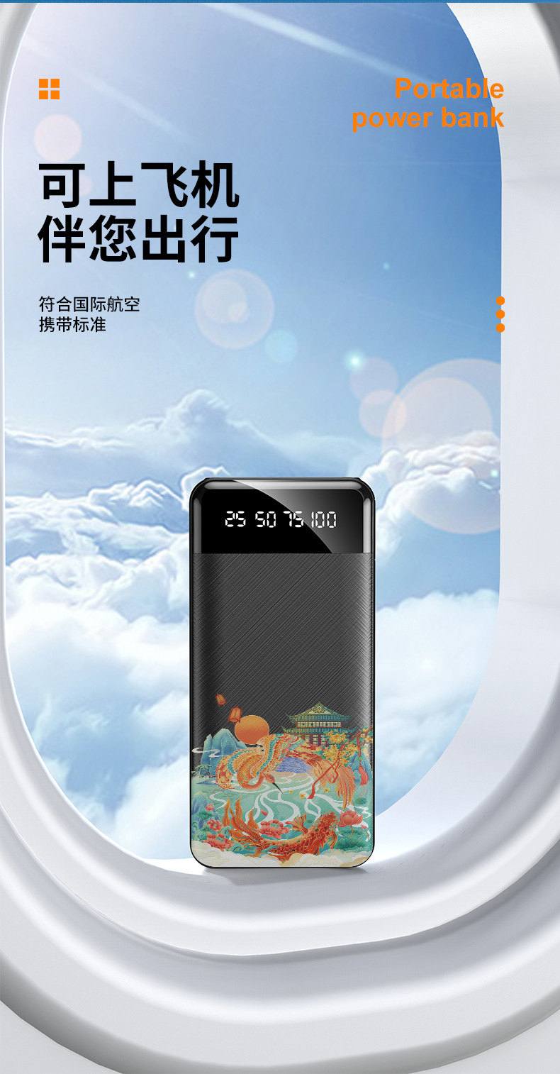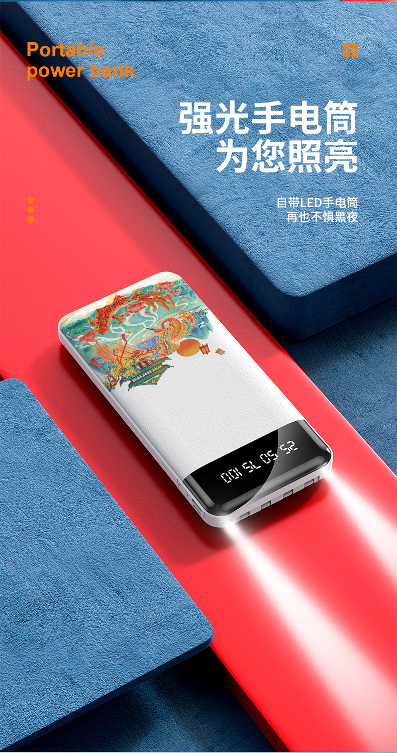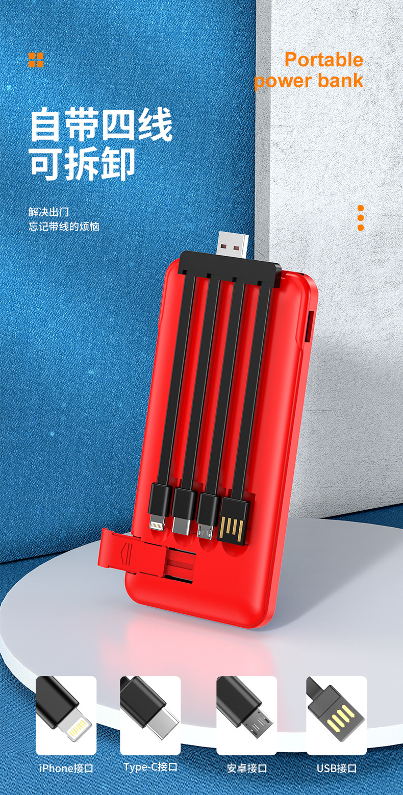 跨境批发自带线充电宝20000毫安大容量便携移动电源礼品LOGO定 制