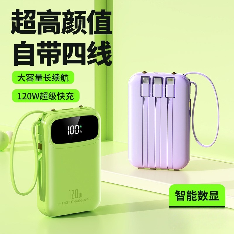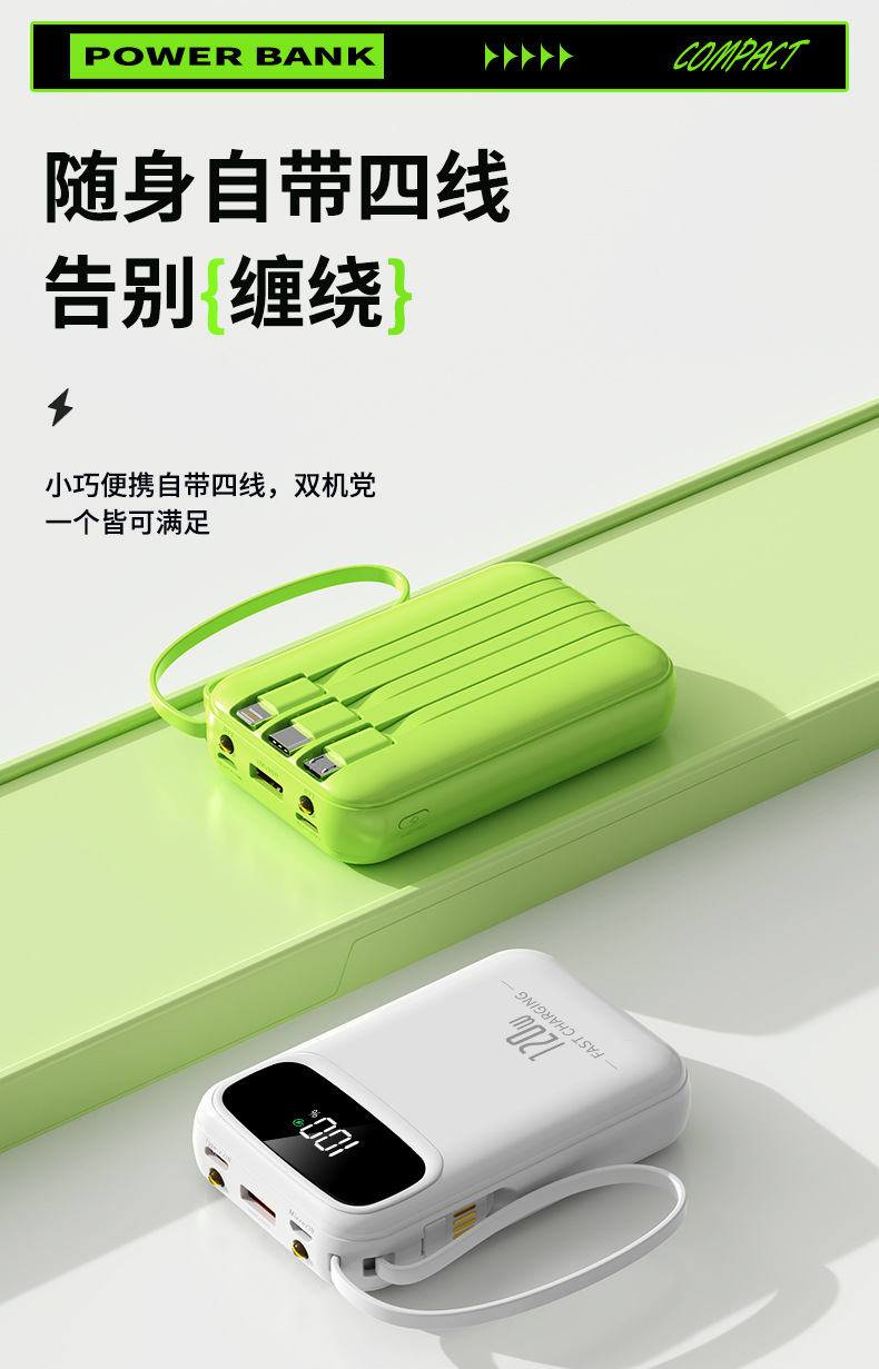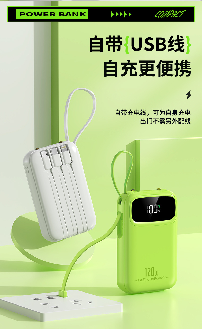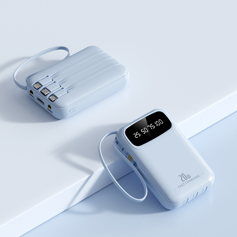 迷你自带线充电宝20000mah大容量超级快充便携移动电源定制kc跨境