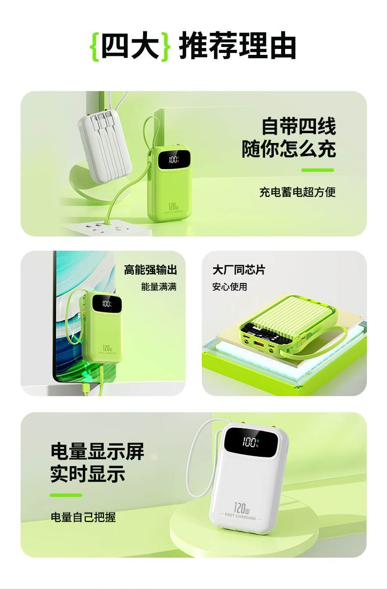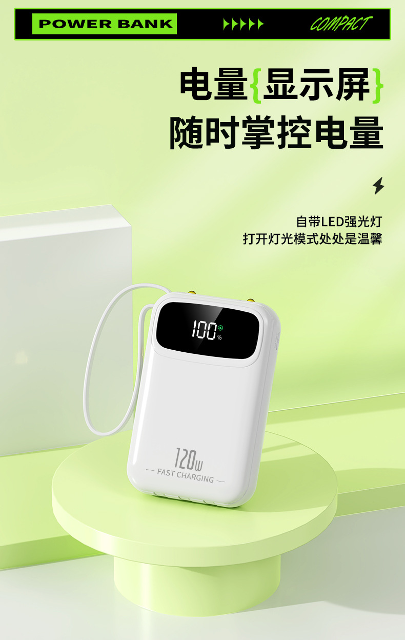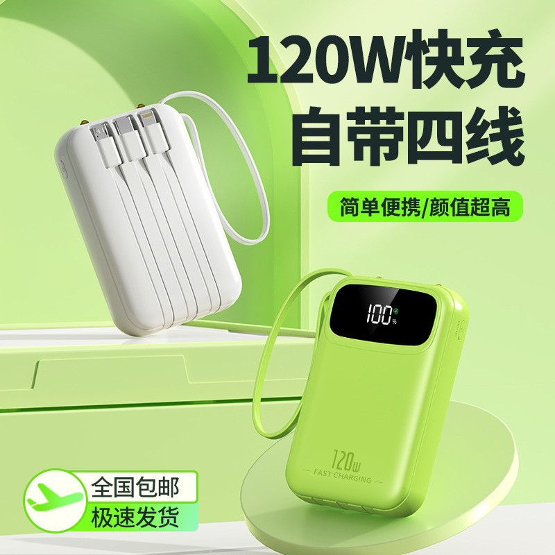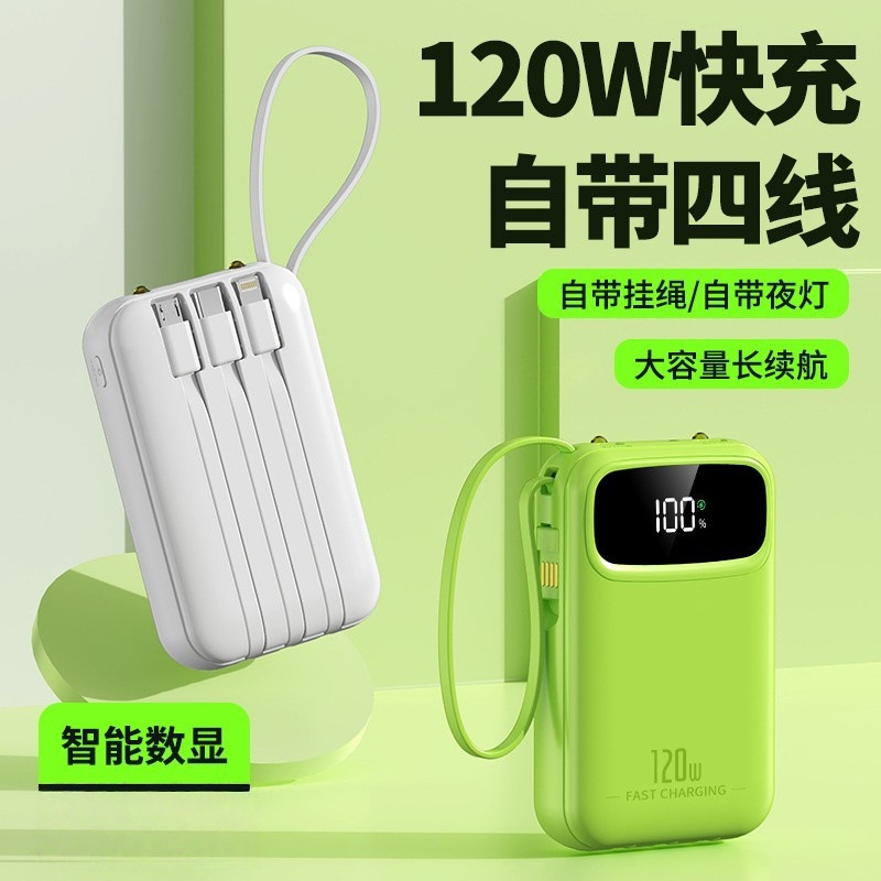 迷你自带线充电宝20000mah大容量超级快充便携移动电源定制kc跨境