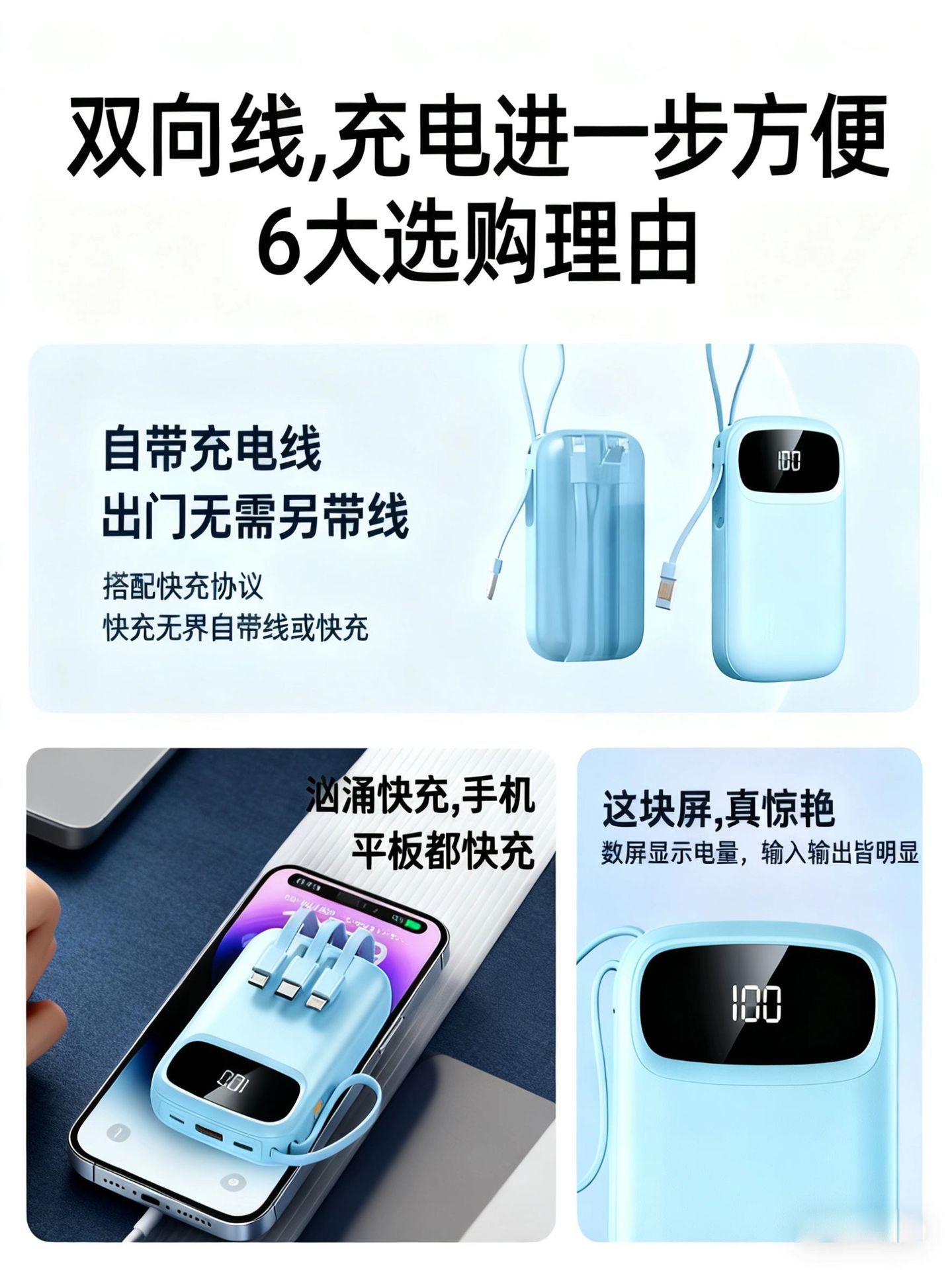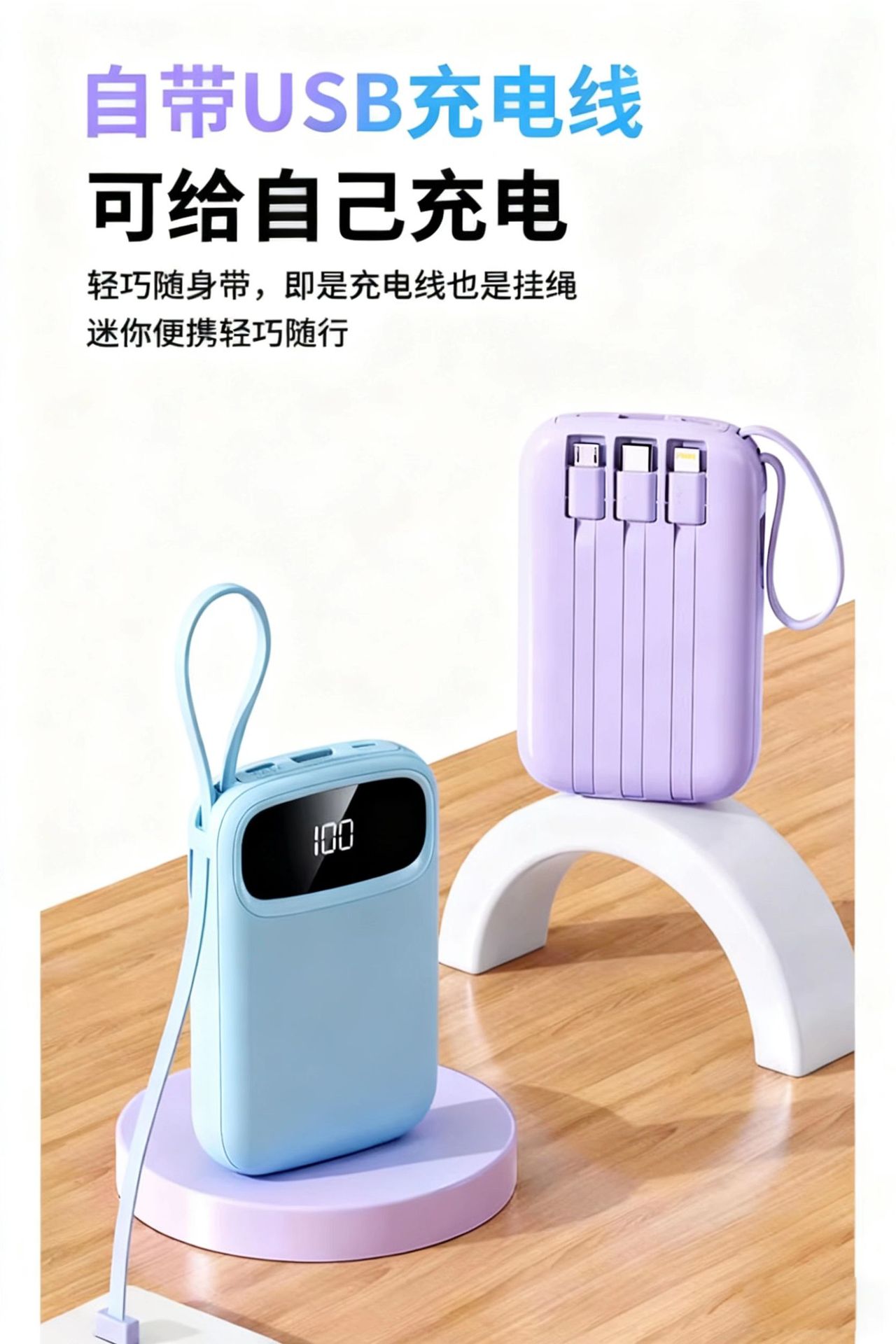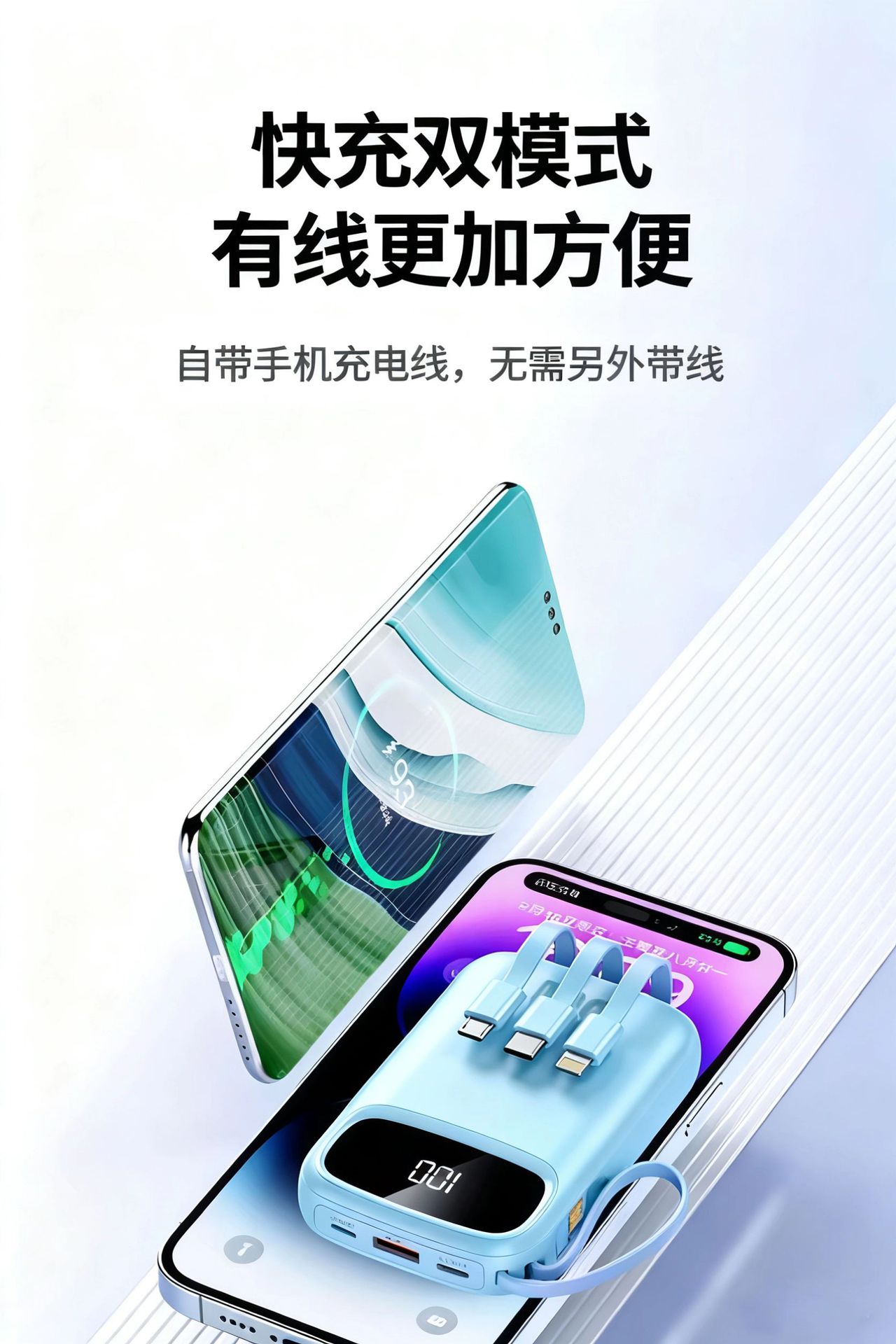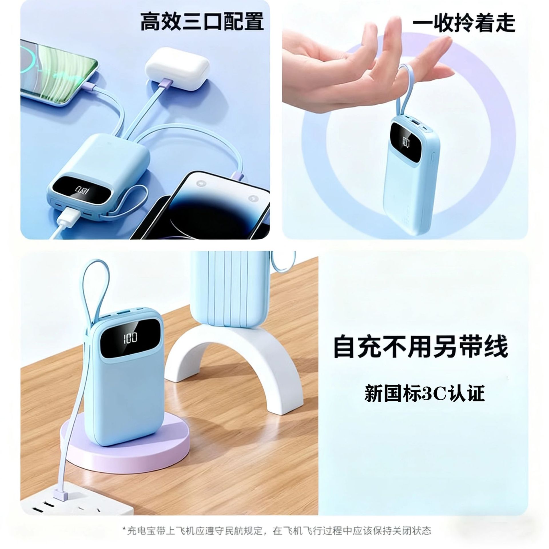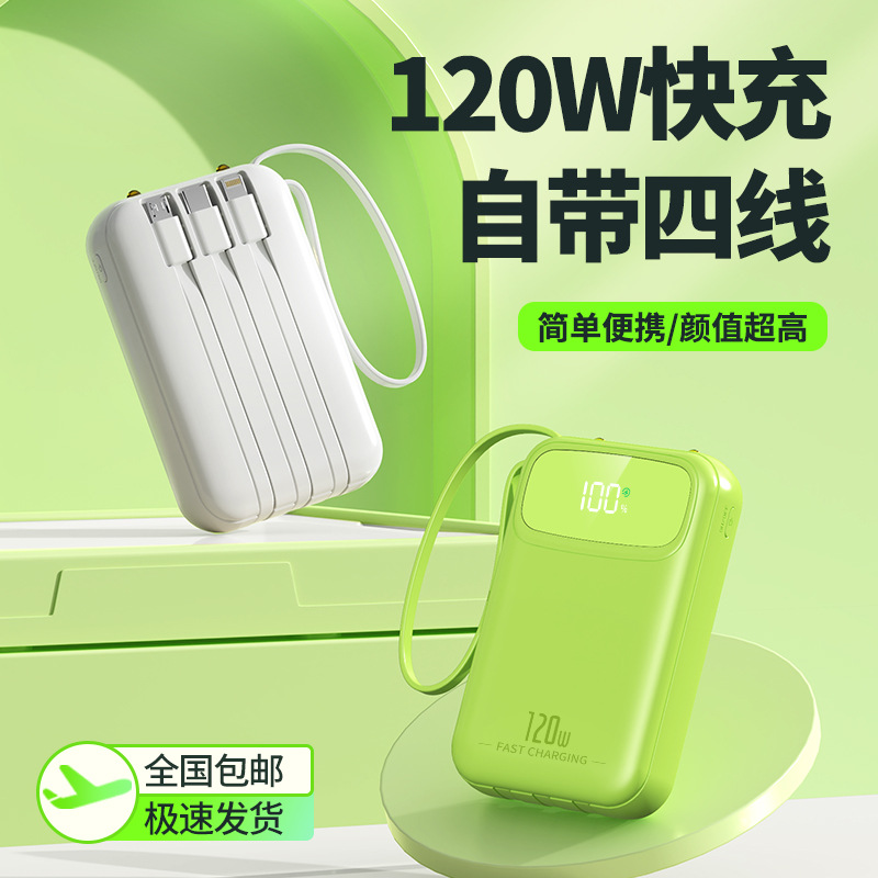 2025新款充电宝120W超级快充自带线20000毫安移动电源定制KC跨境