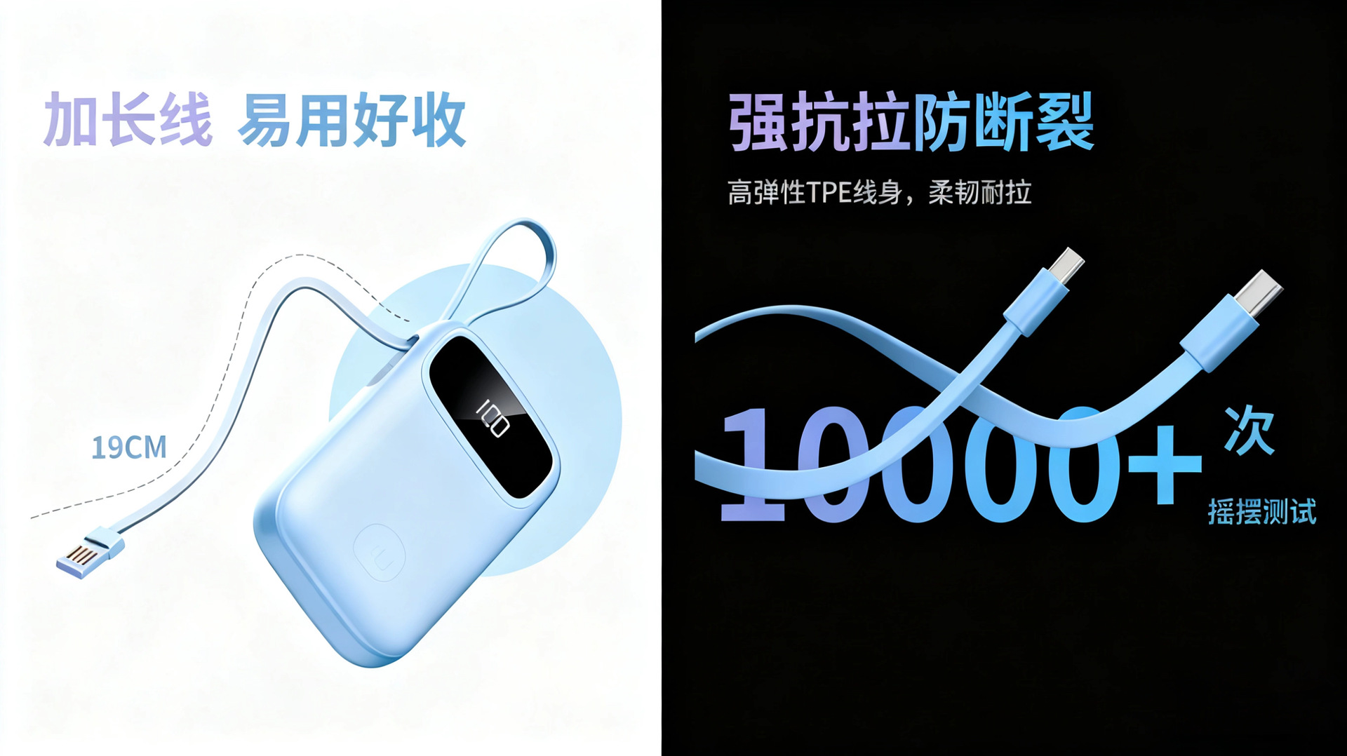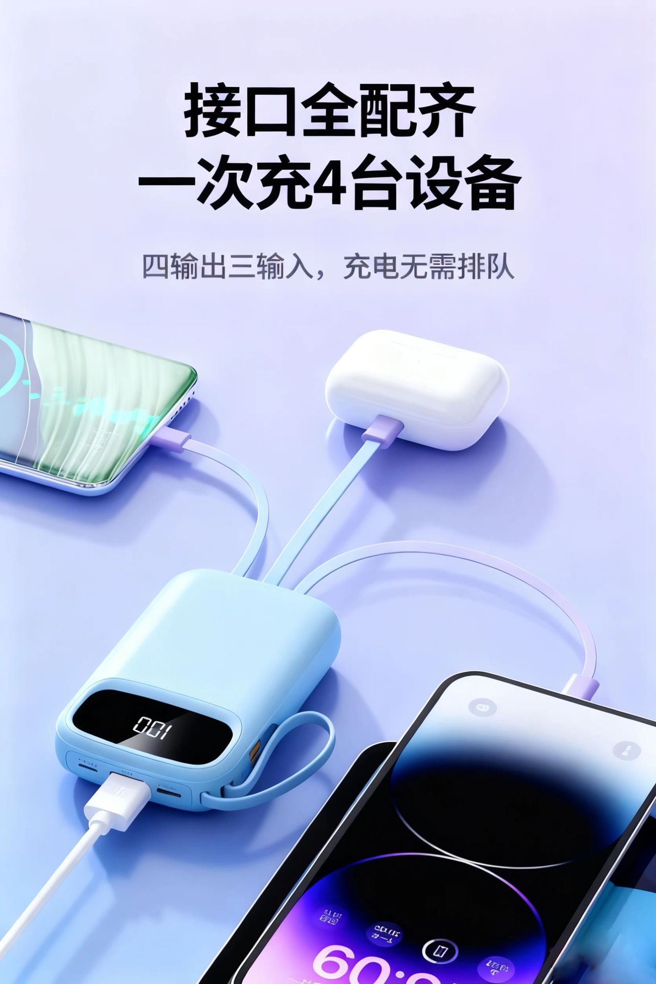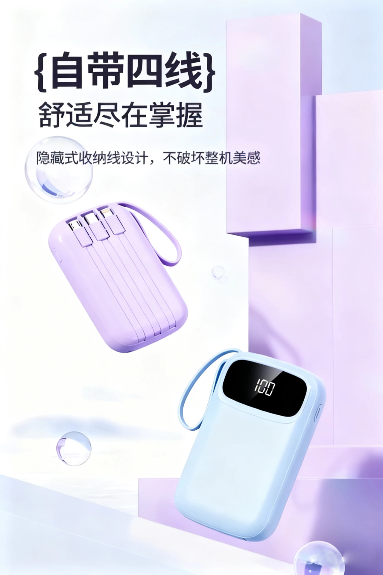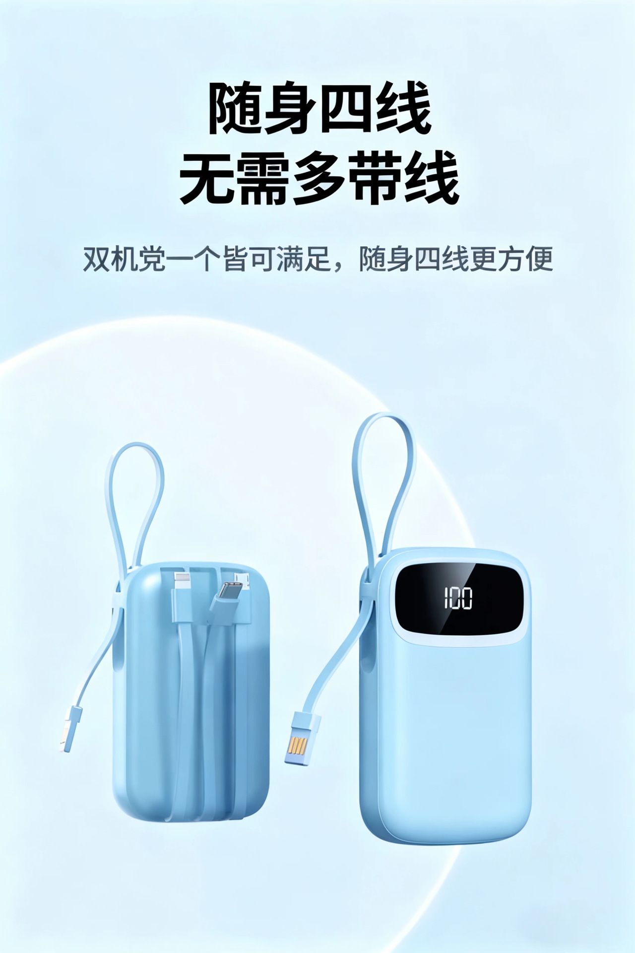 2025新款充电宝120W超级快充自带线20000毫安移动电源定制KC跨境