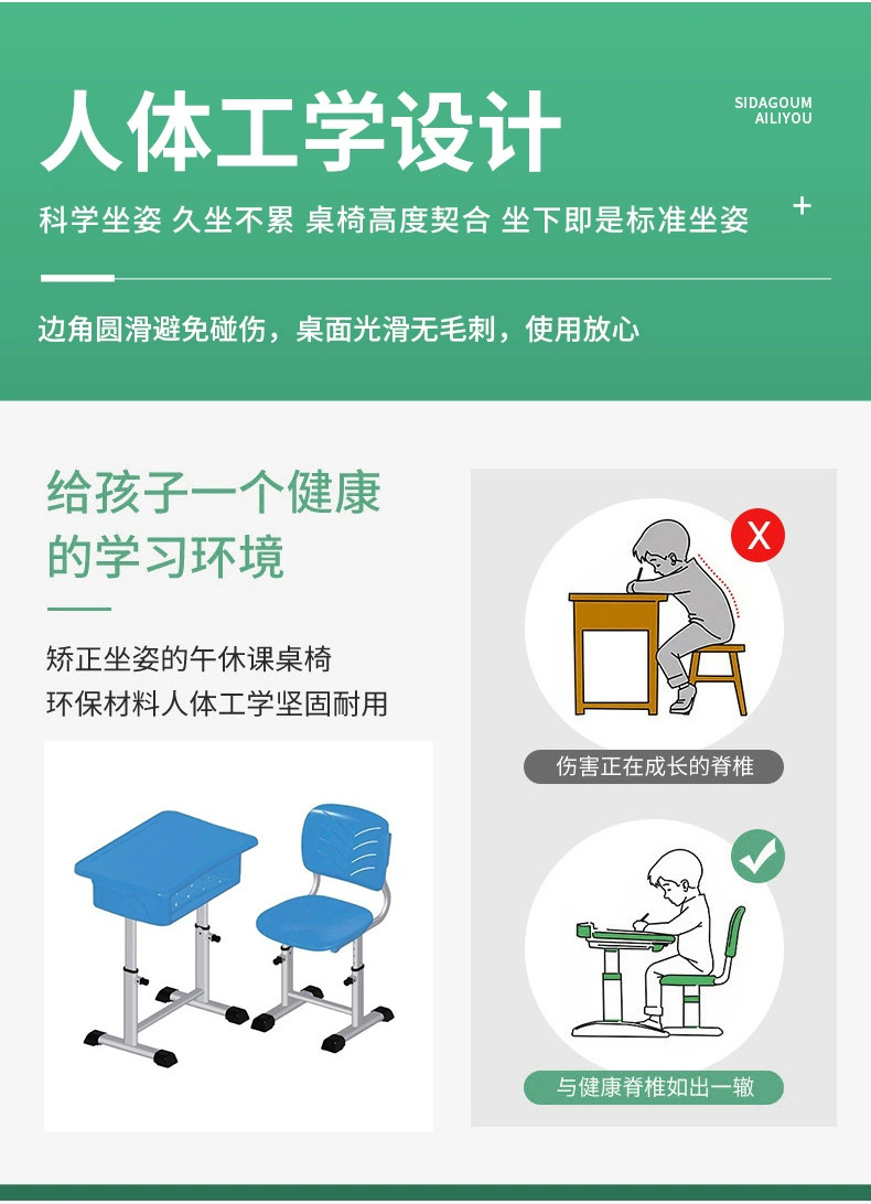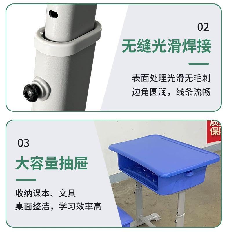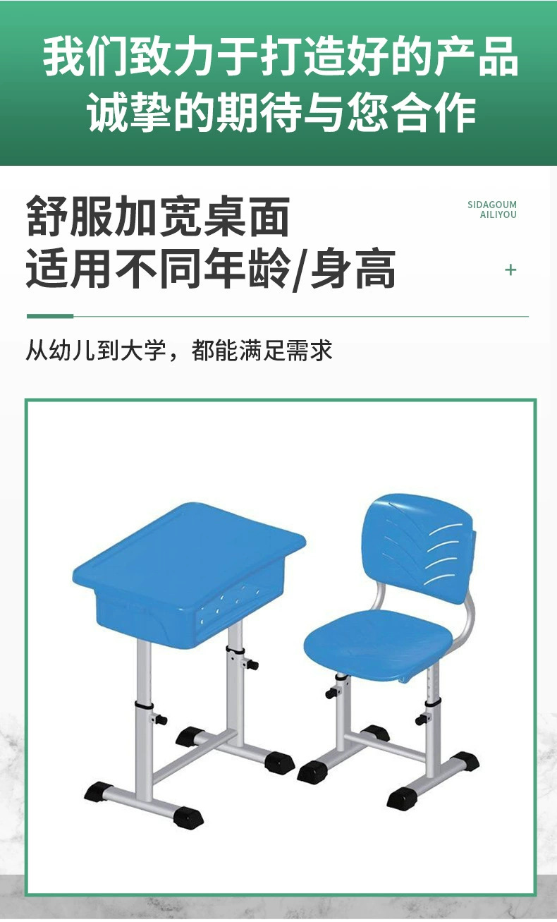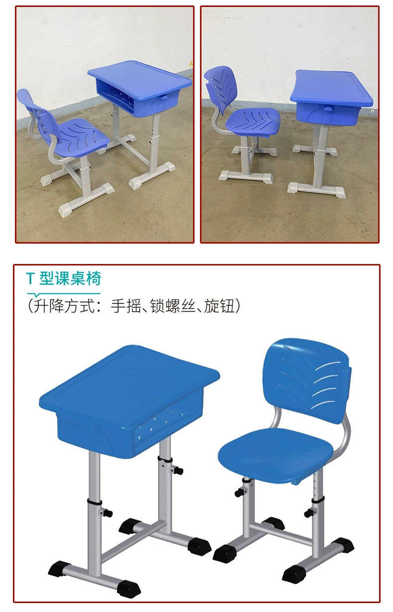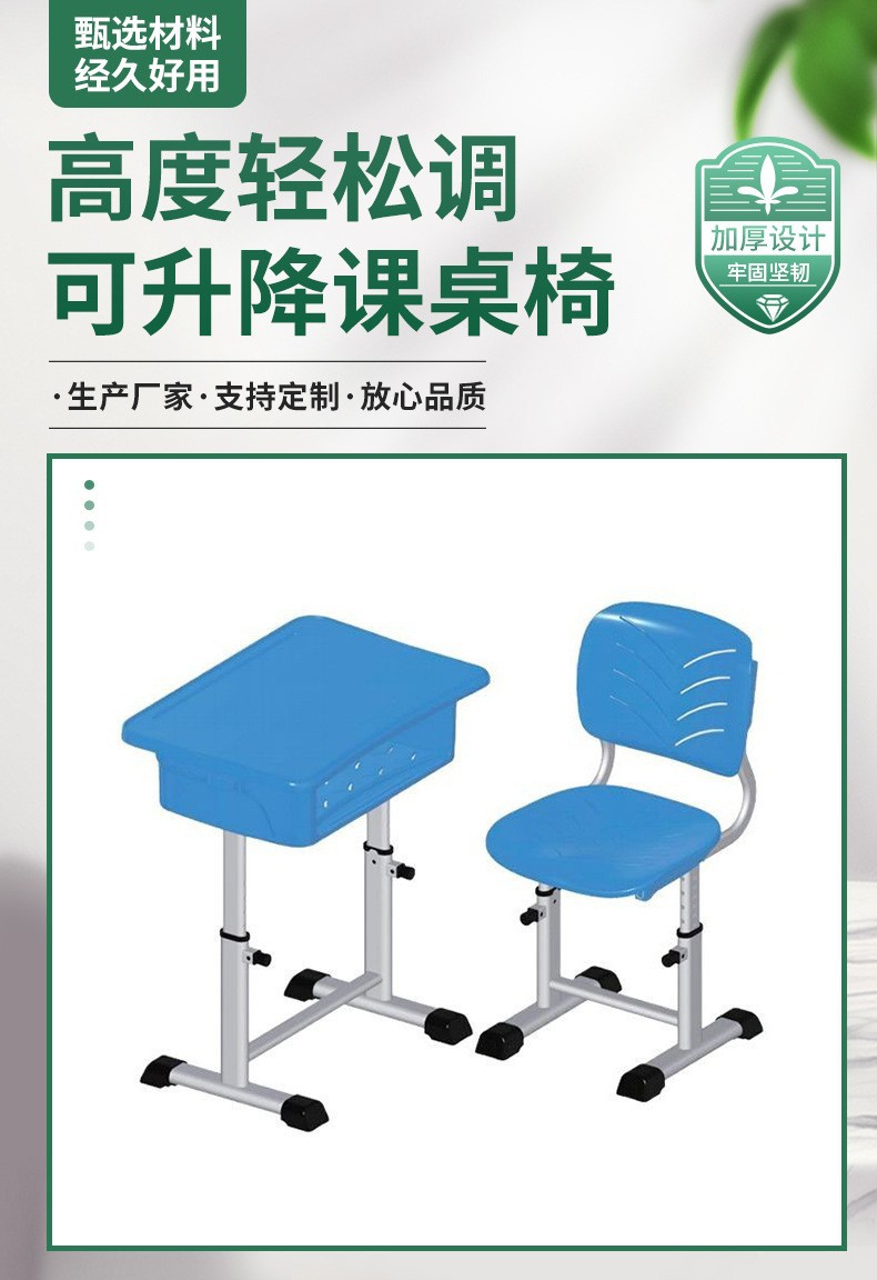 厂家直售可升降课桌椅学校培训班课桌椅学习桌椅 ABS学生课桌椅