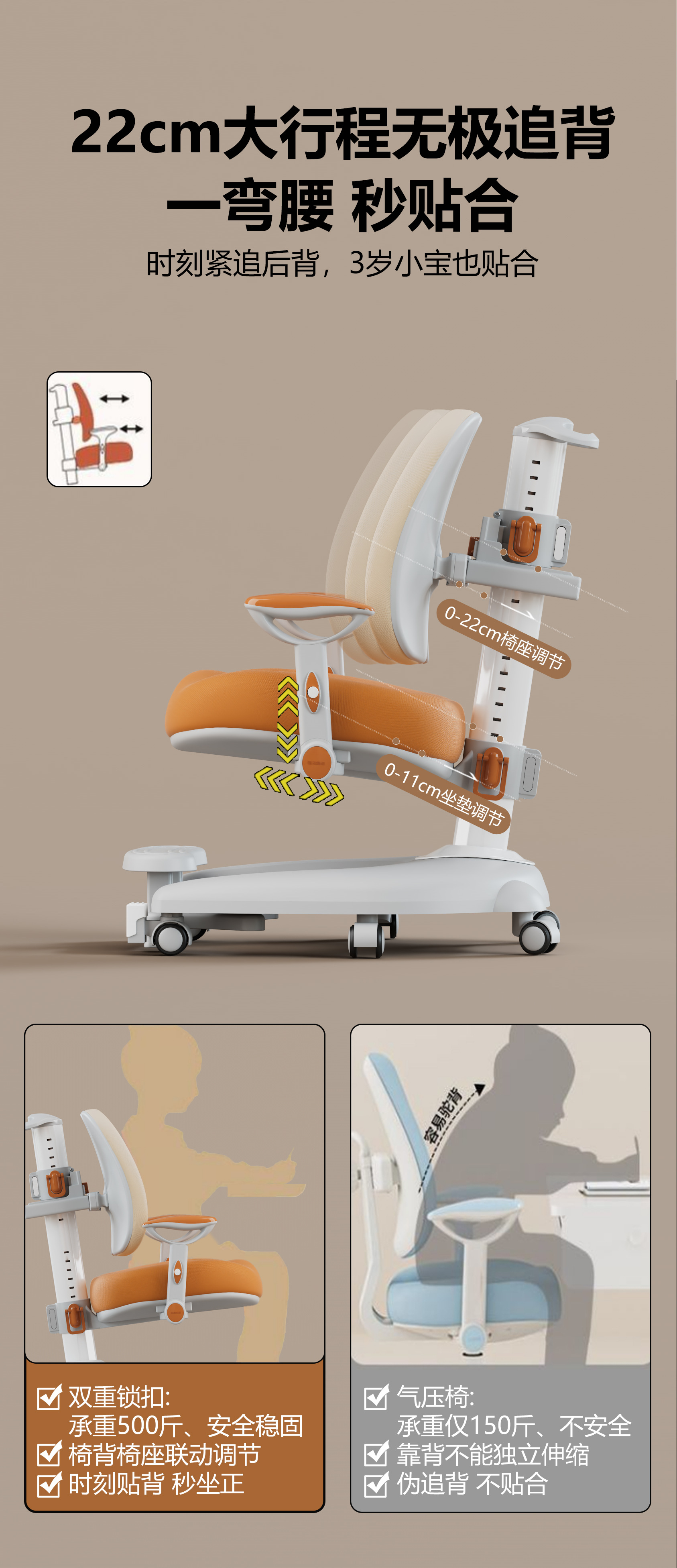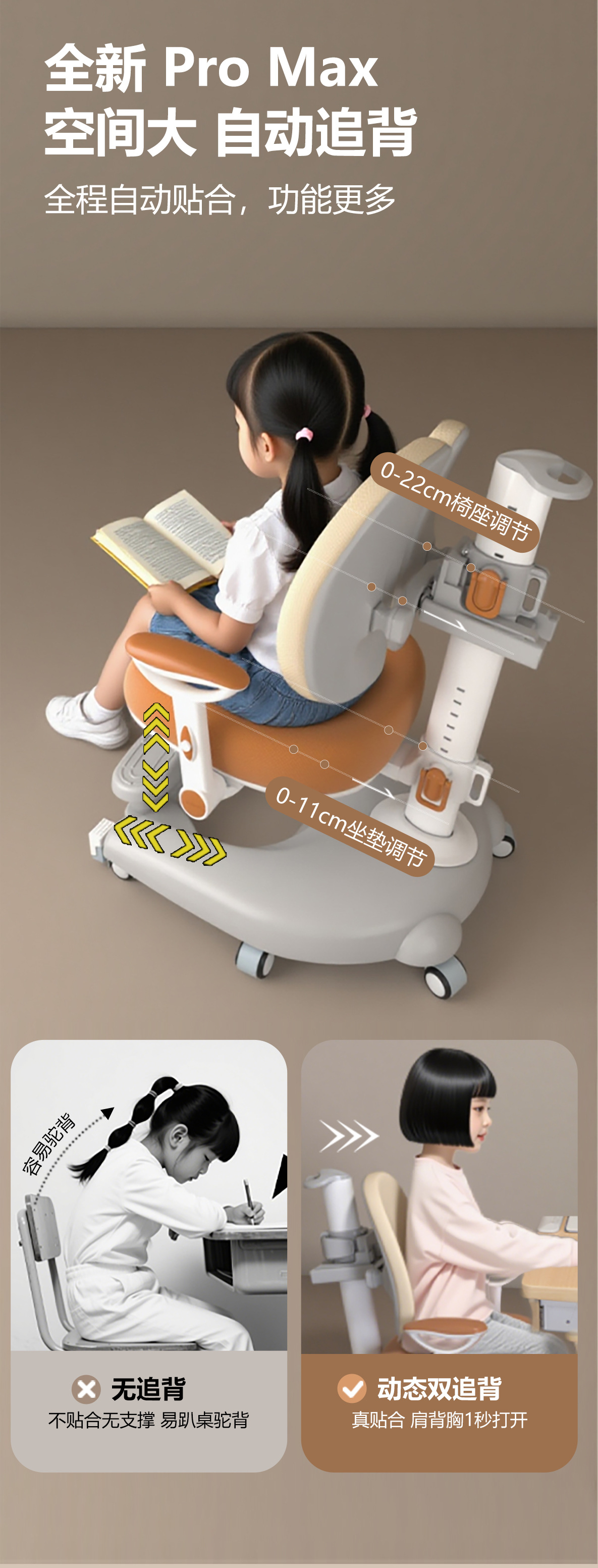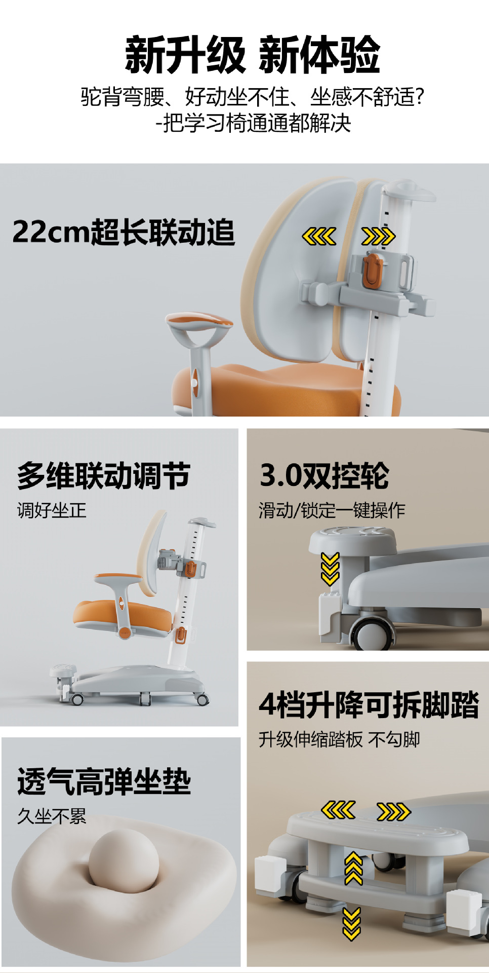 儿童学习椅中小学生人体工学椅自动追背可升降椅学生椅子靠背座椅