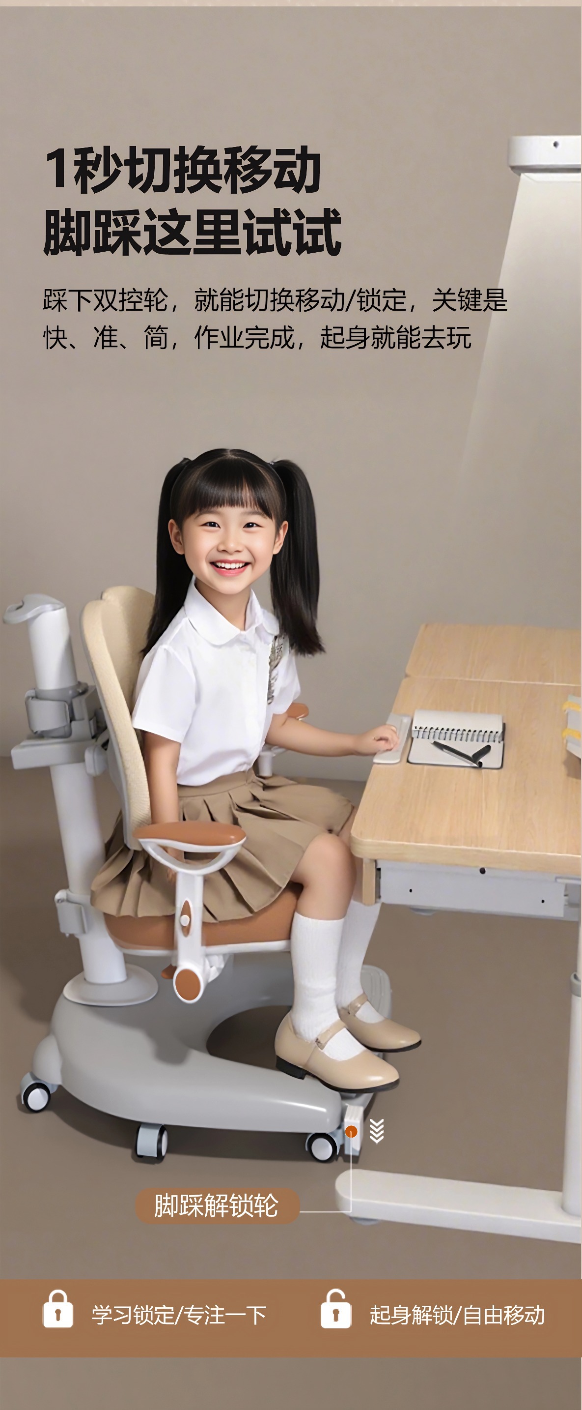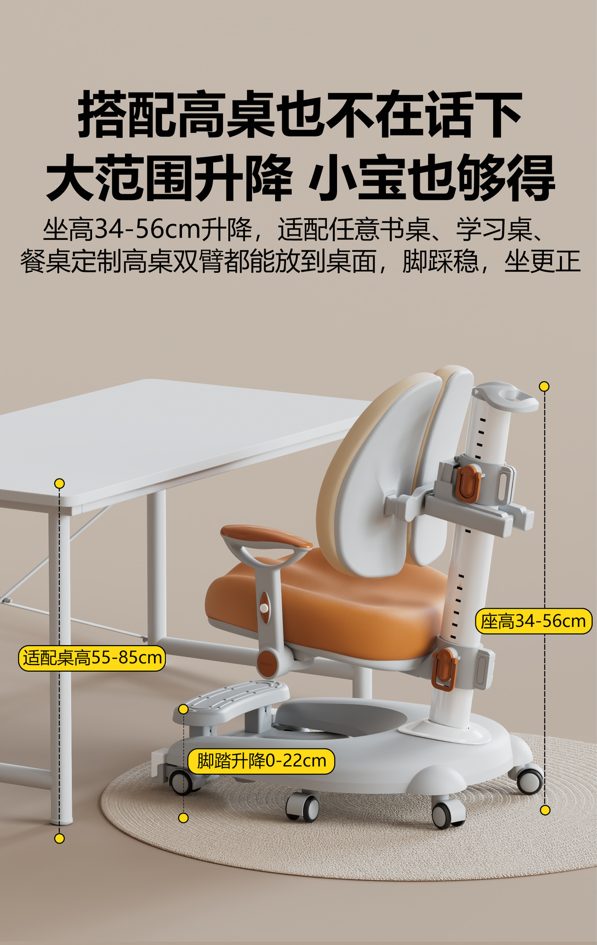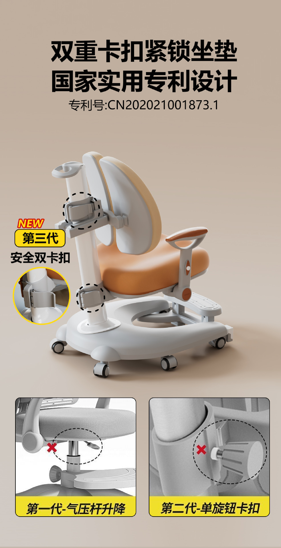 儿童学习椅中小学生人体工学椅自动追背可升降椅学生椅子靠背座椅