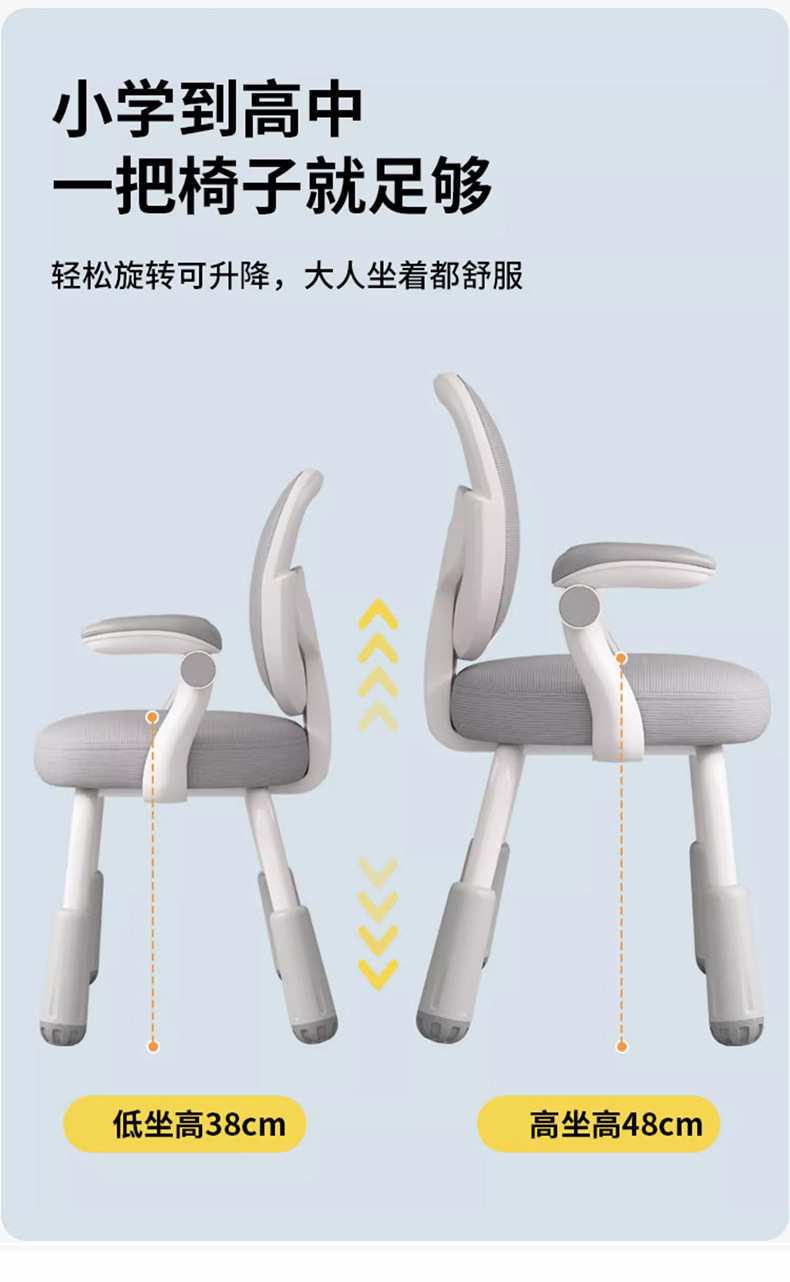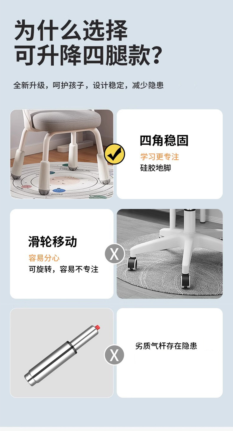 儿童学习椅可升降调节家用写字椅矫正坐姿靠背凳子小学生书桌椅子