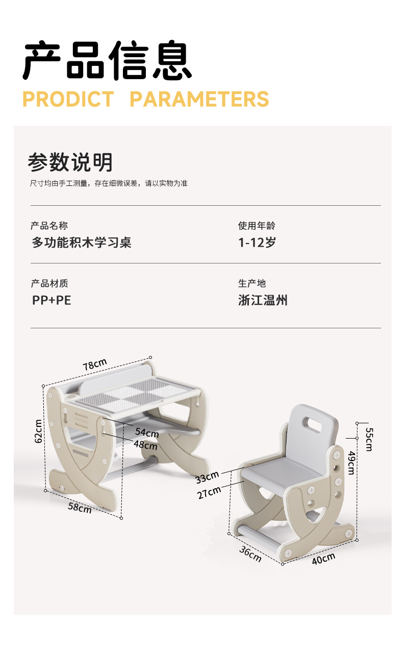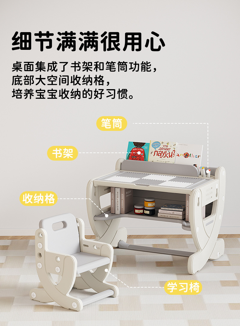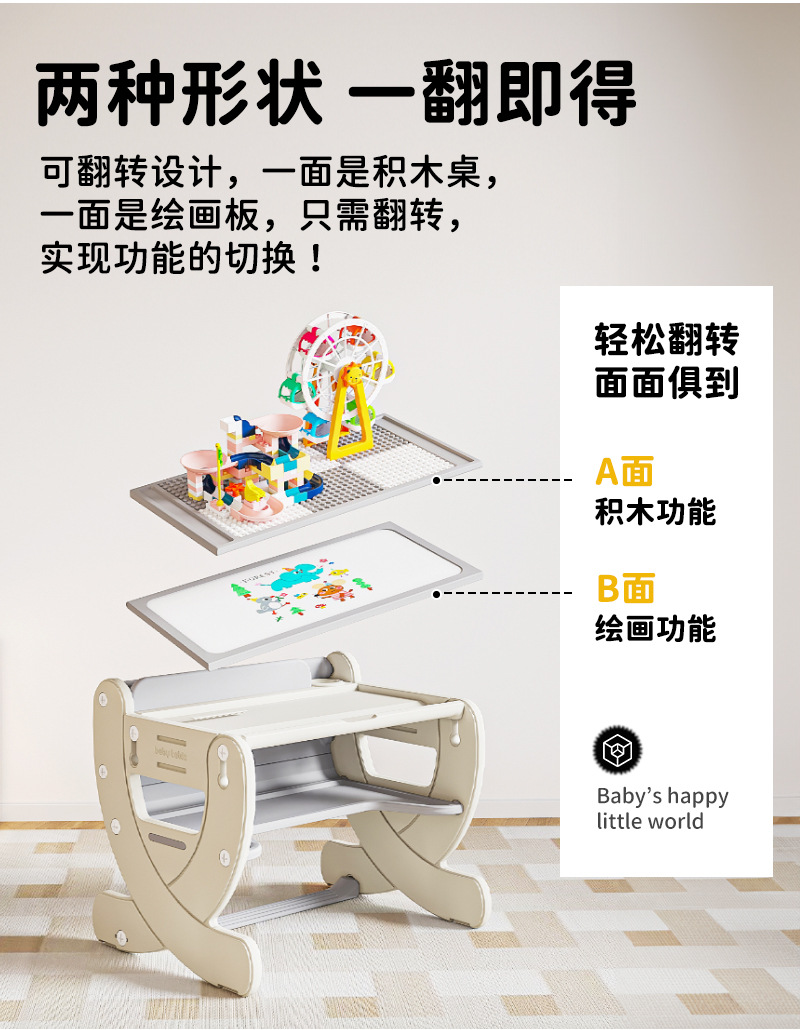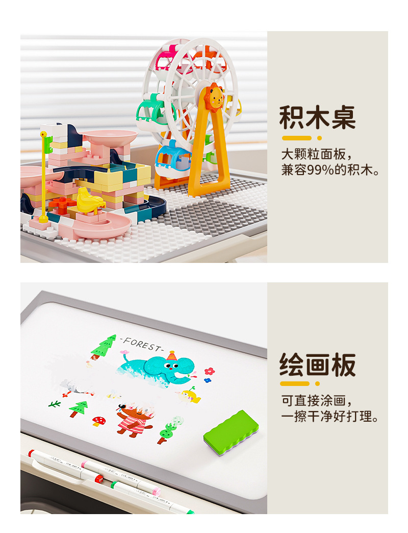 儿童学习桌宝宝游戏可调节阅读积木桌椅套装多功能画板写字桌看书