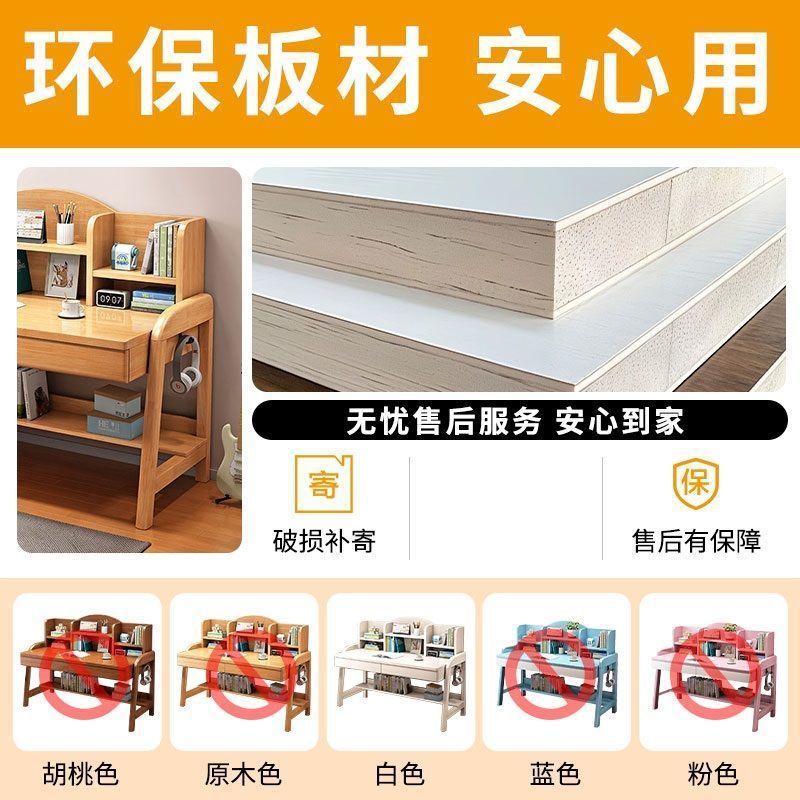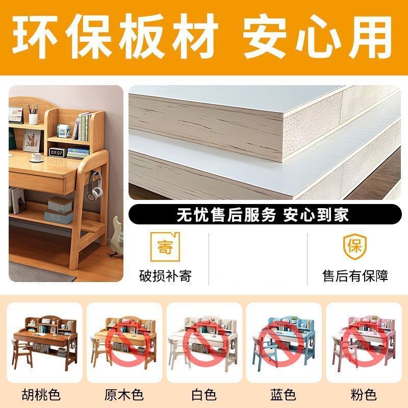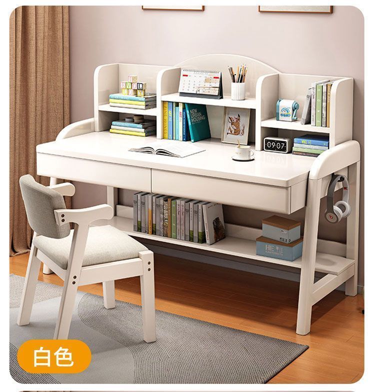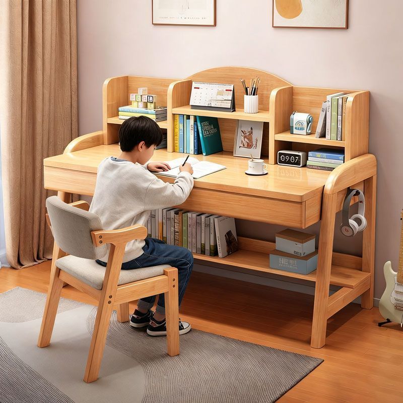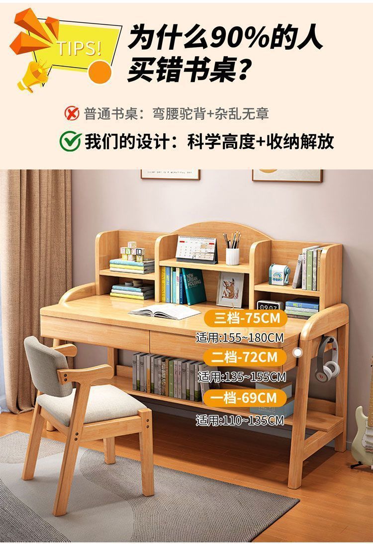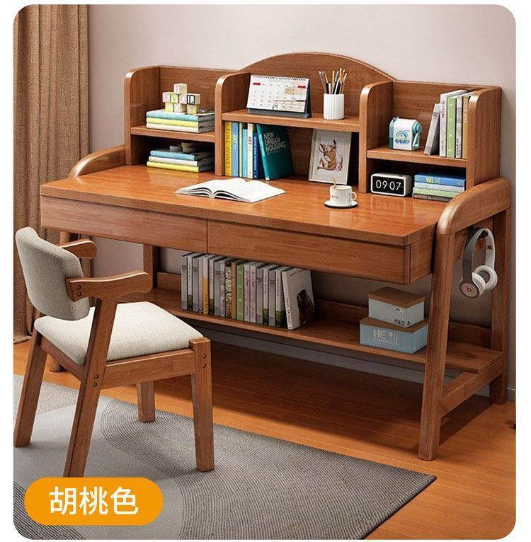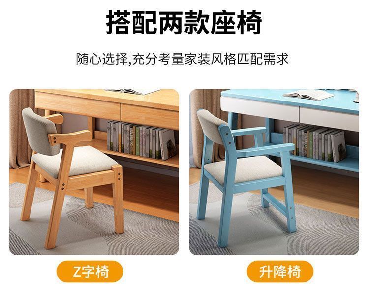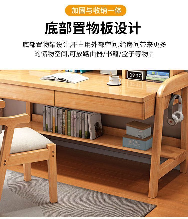 实木儿童学习桌中小学生家用书架一体桌可升降卧室书房办公写字桌