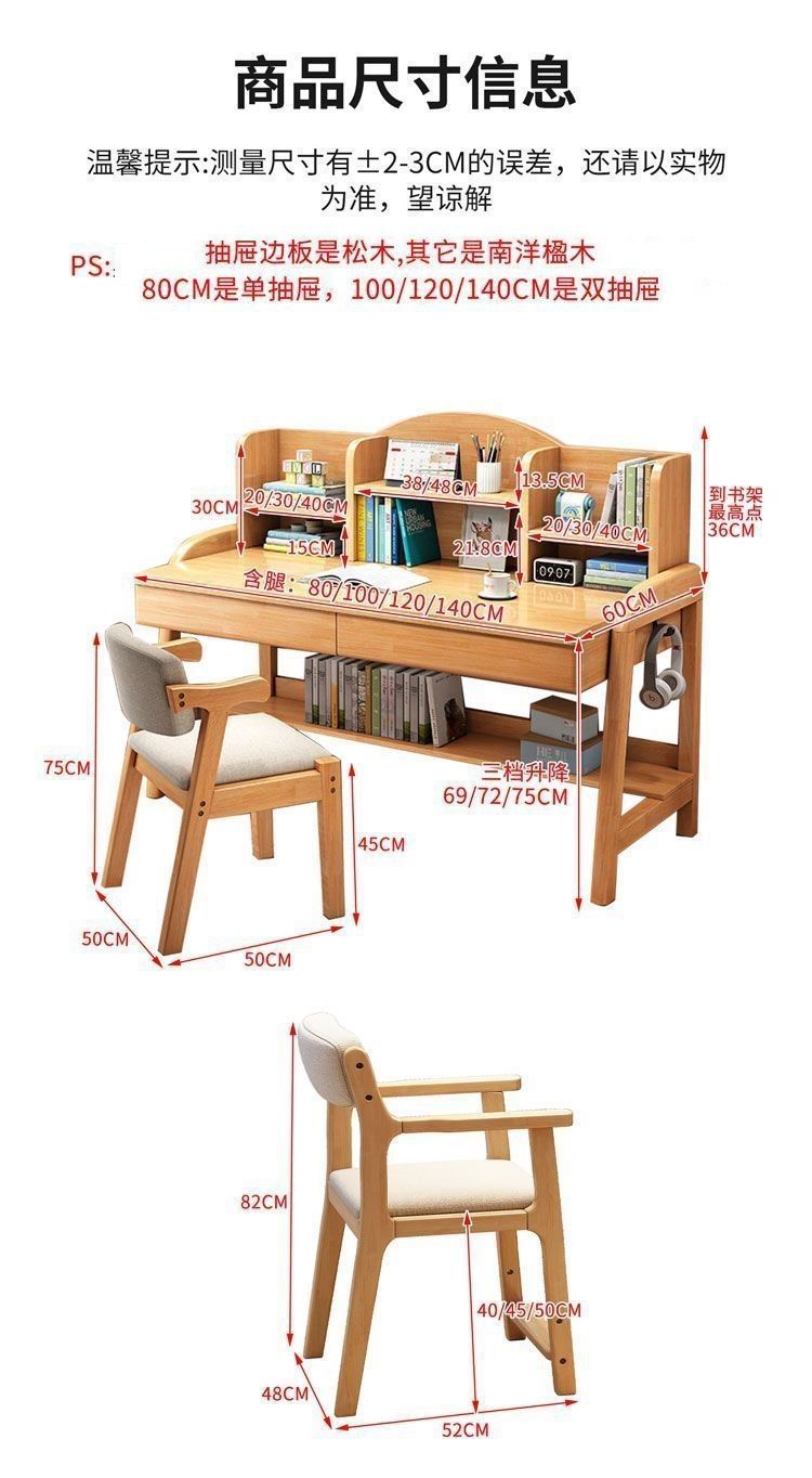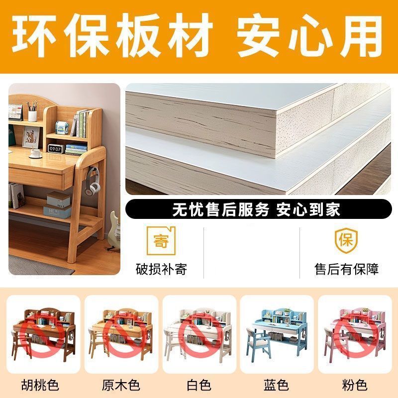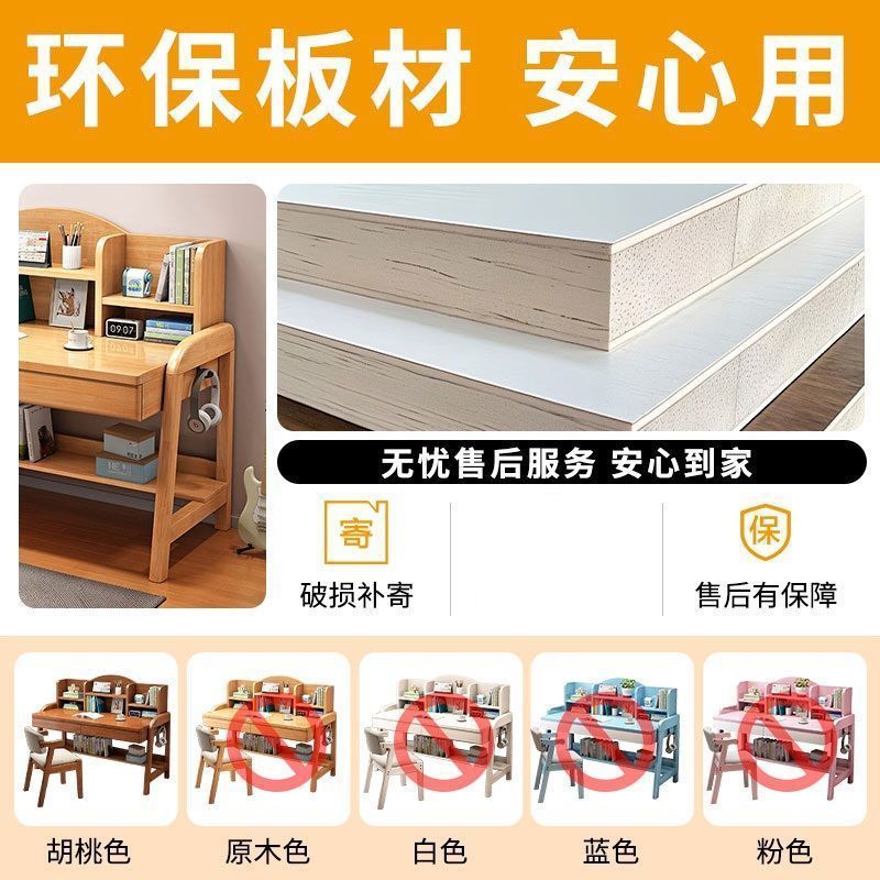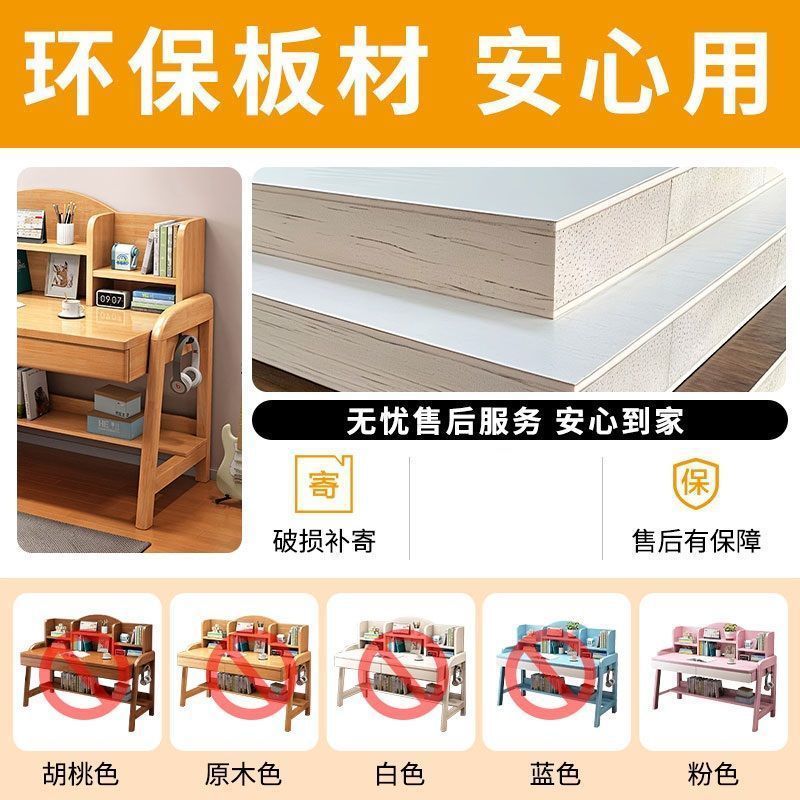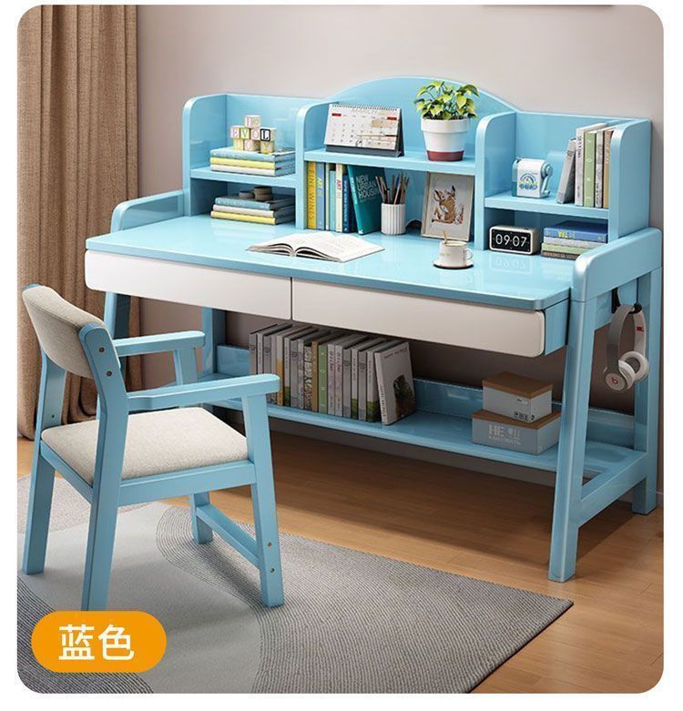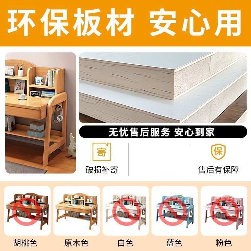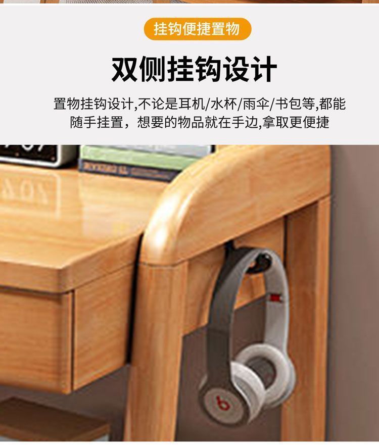实木儿童学习桌中小学生家用书架一体桌可升降卧室书房办公写字桌