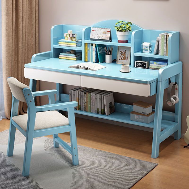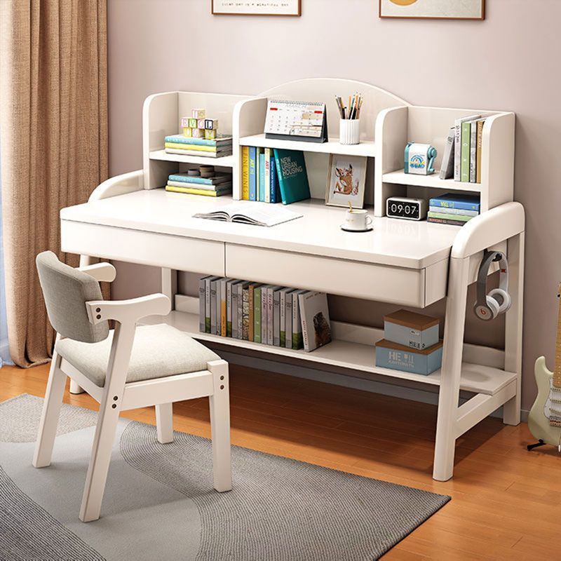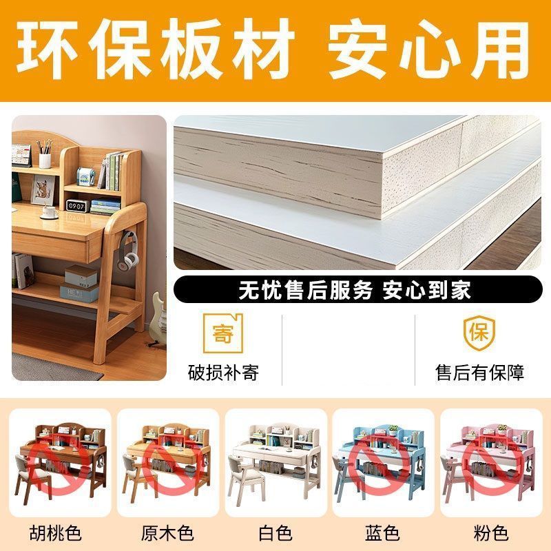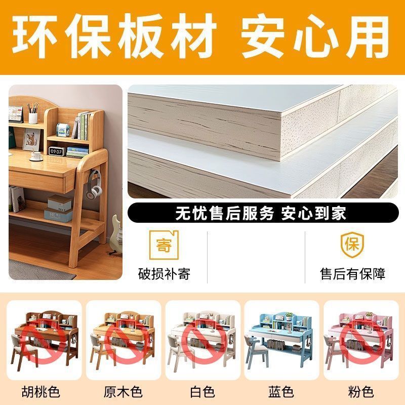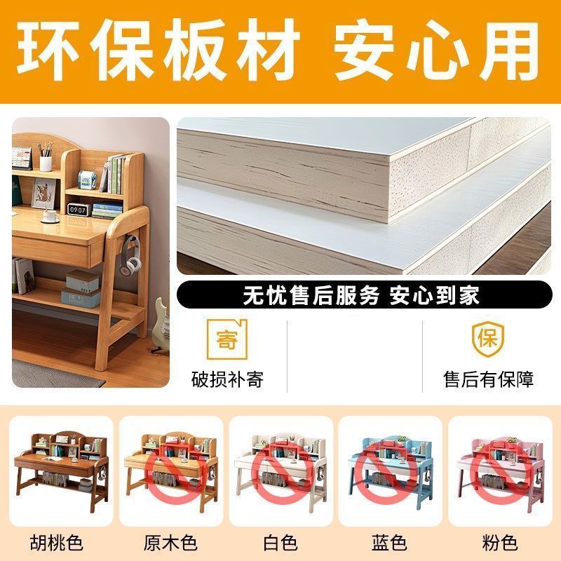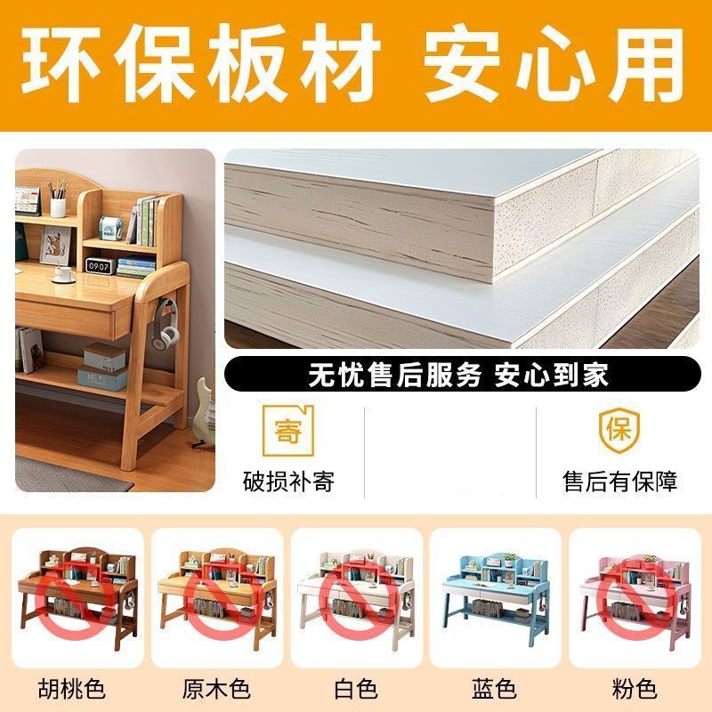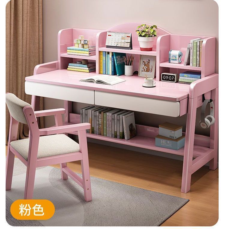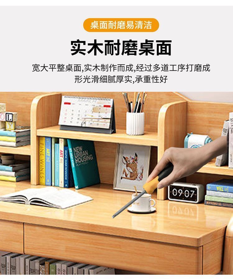 实木儿童学习桌中小学生家用书架一体桌可升降卧室书房办公写字桌