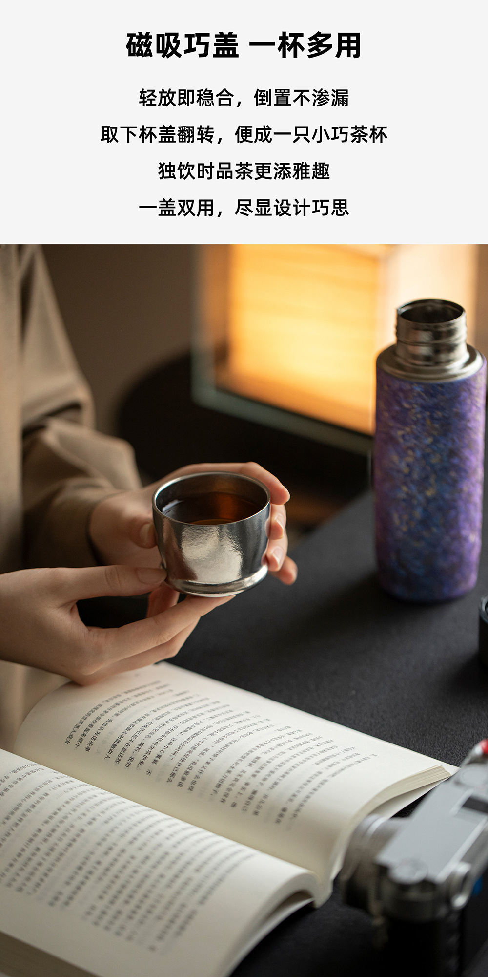 纯钛磁吸高颜值女保温杯焖泡茶男士车载水杯子高档茶水分离大容量