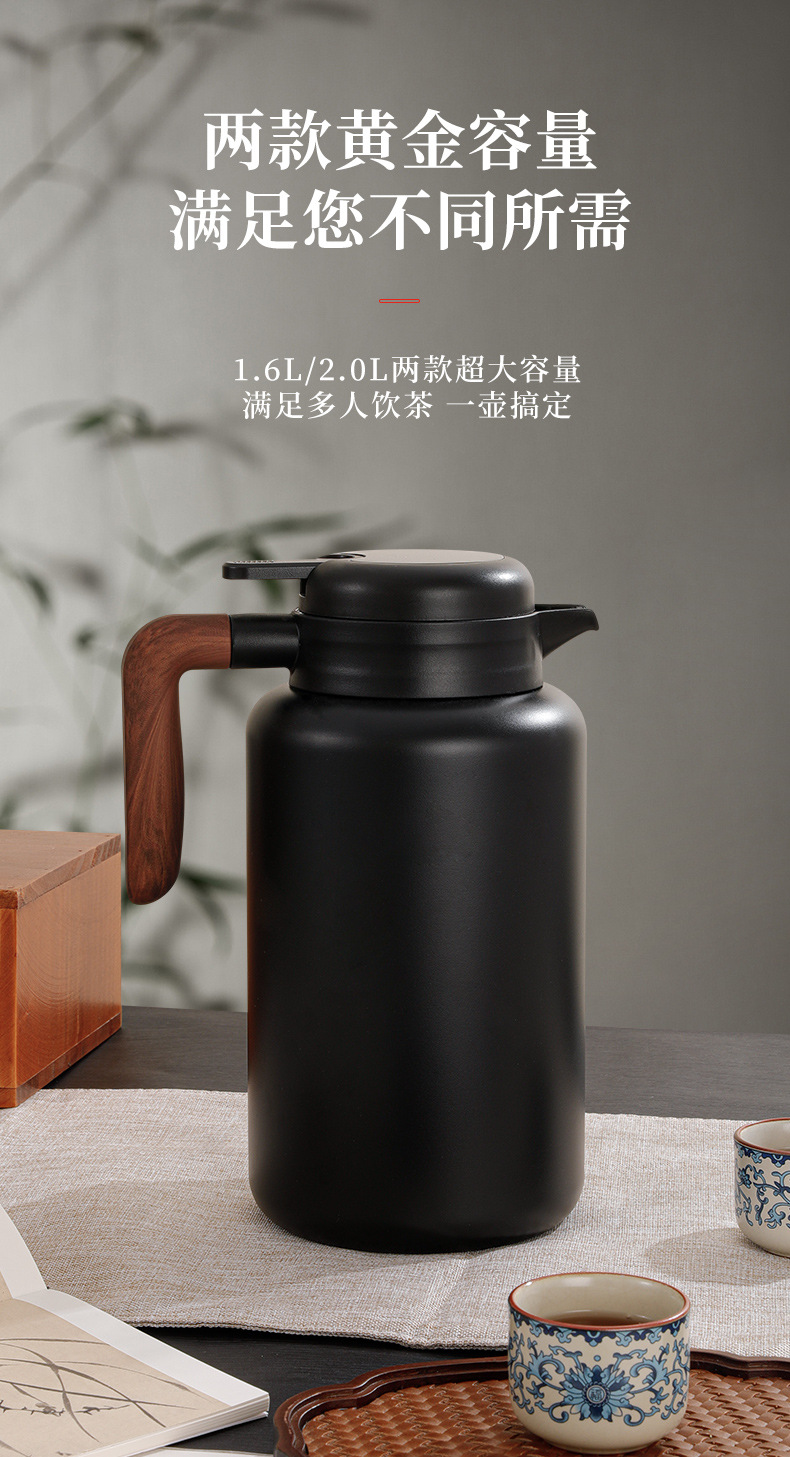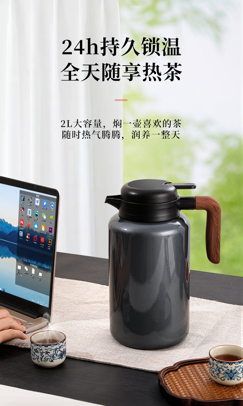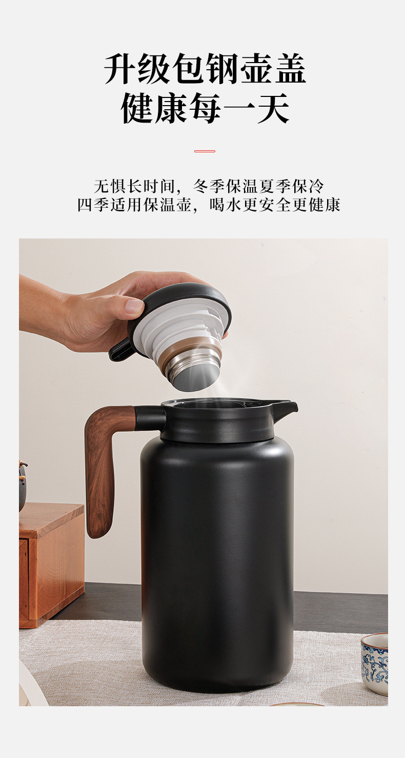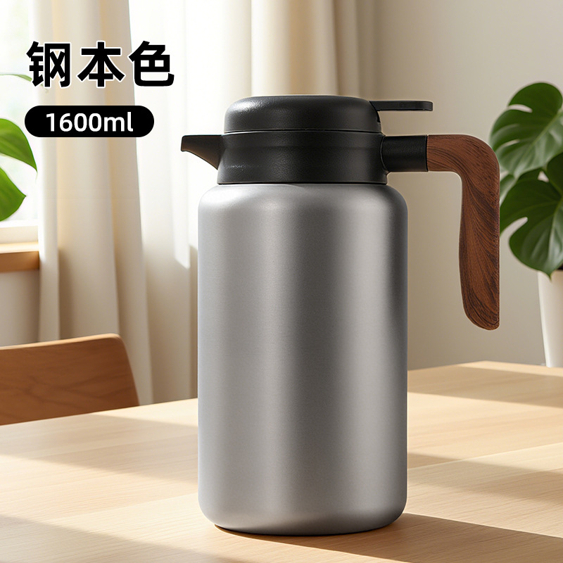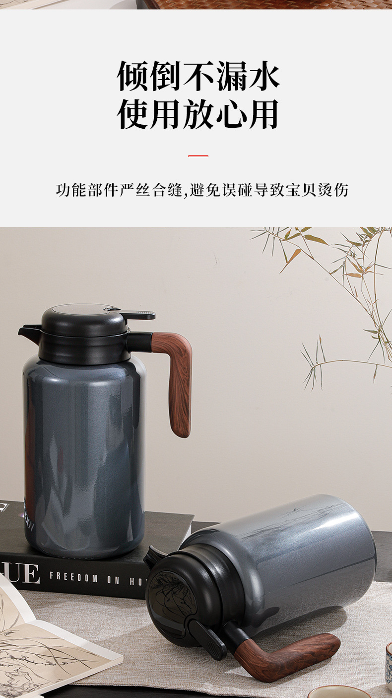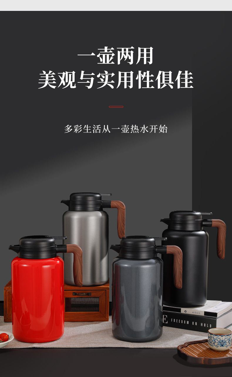 真空不锈钢保温壶高颜值大容量木纹手柄保温水壶家用商务闷烧壶