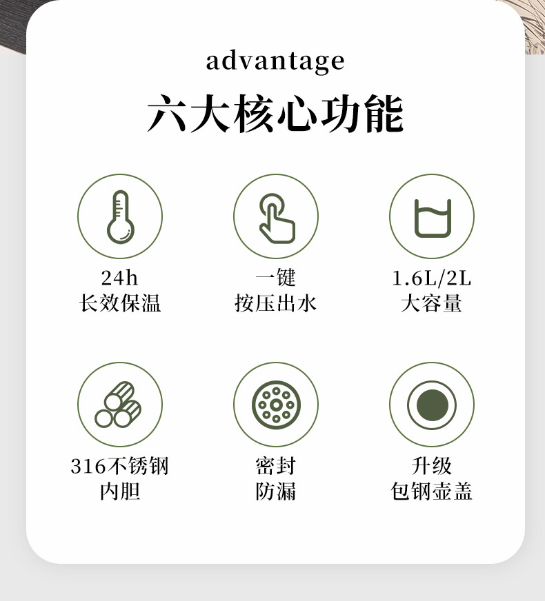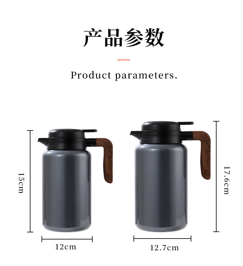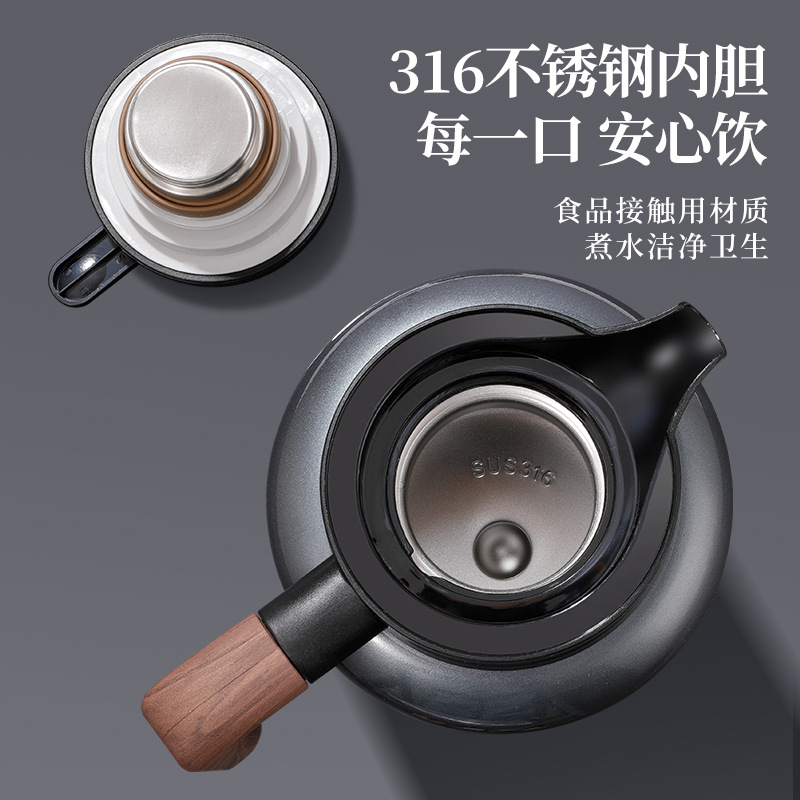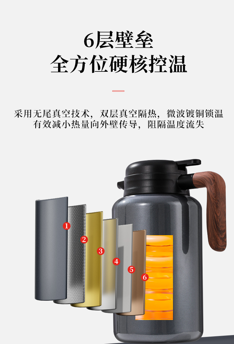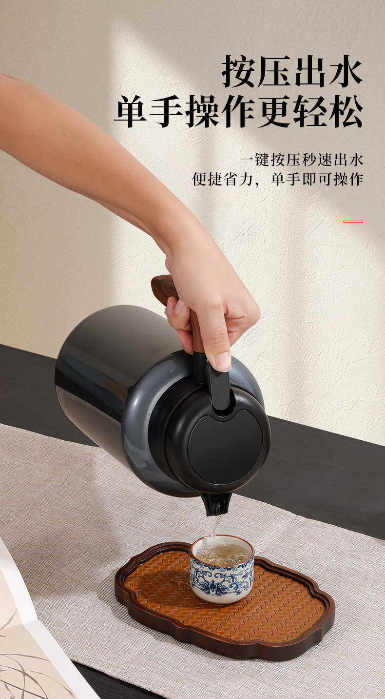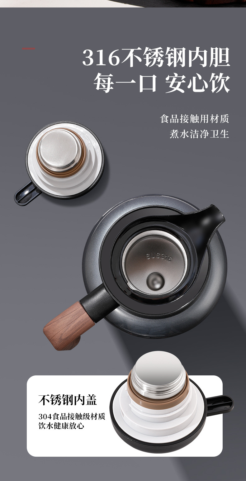 真空不锈钢保温壶高颜值大容量木纹手柄保温水壶家用商务闷烧壶
