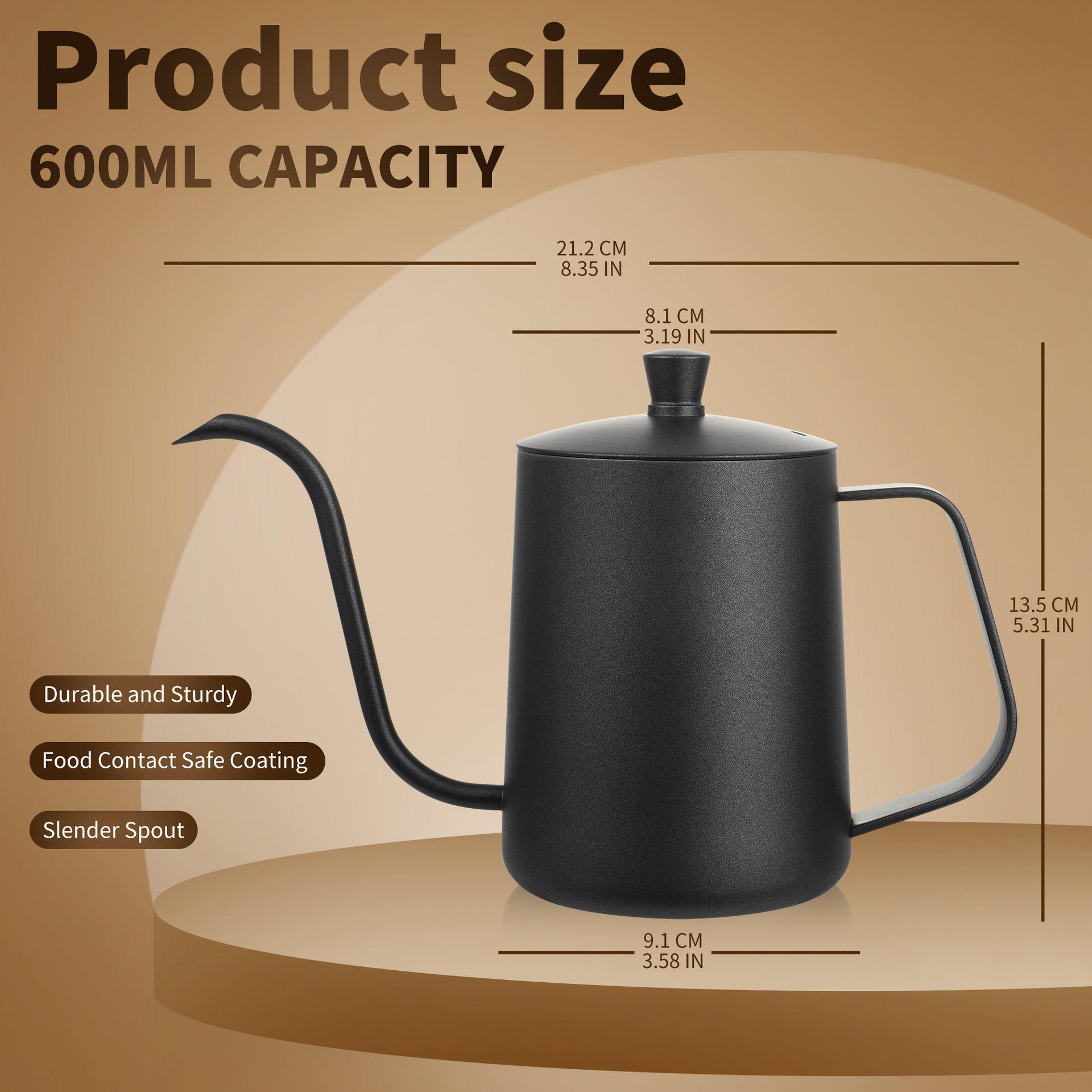 26年新款跨境咖啡壶家用304不锈钢600ml大容量手冲细口壶手冲壶