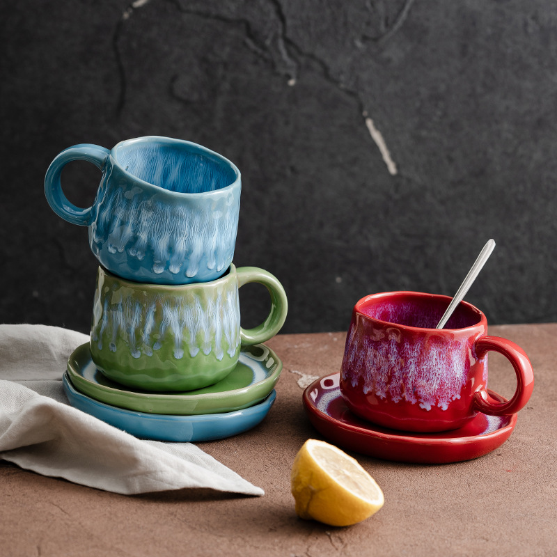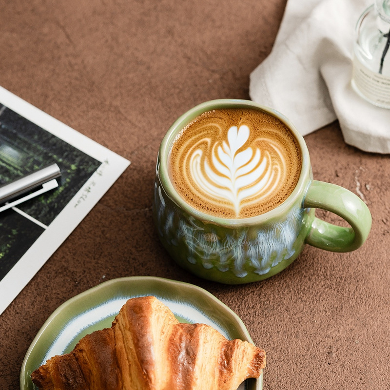 咖啡陶瓷杯碟复古拿铁下午茶ins风浮雕拉花杯咖啡杯套装马克杯