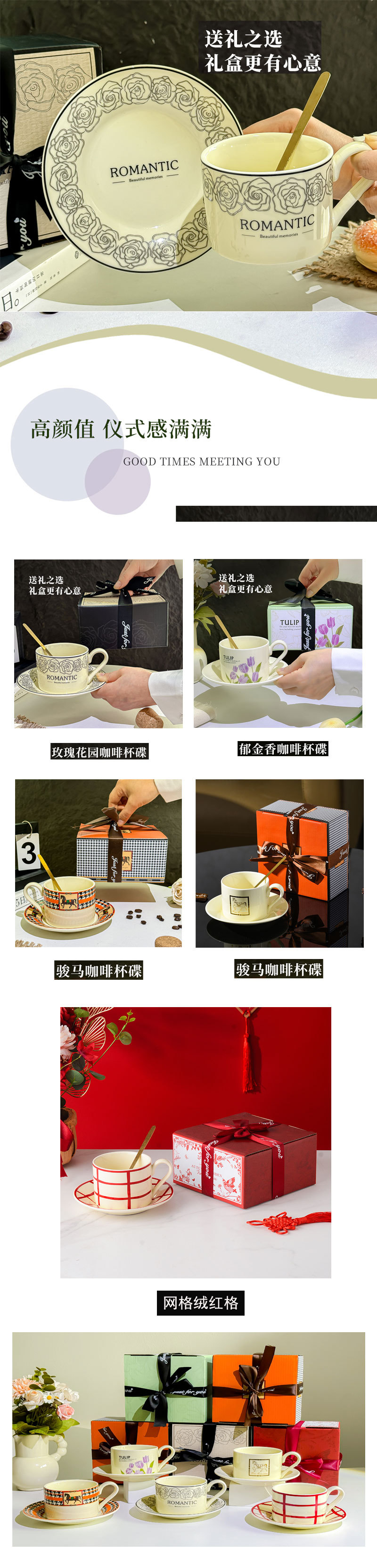 餐厅咖啡杯碟户外复古水杯陶瓷高级杯子办公室玻璃杯下午茶伴手礼