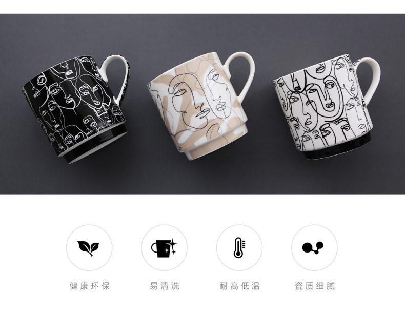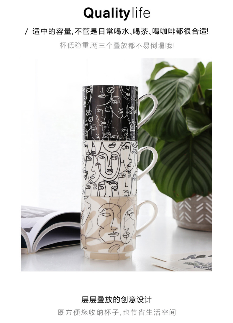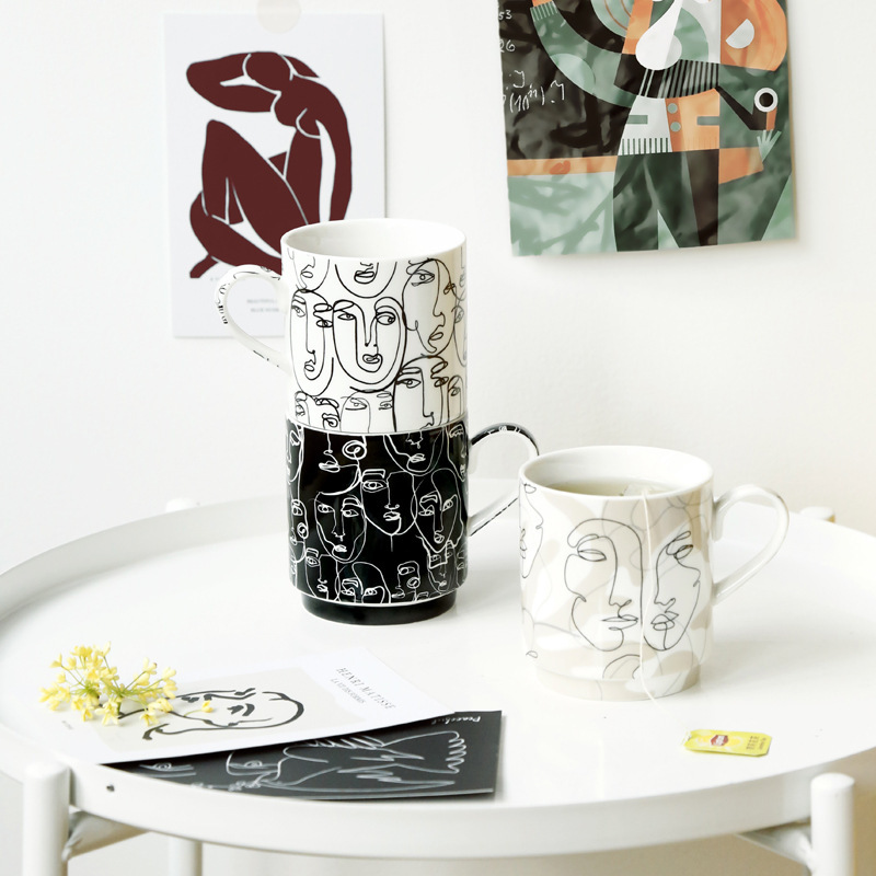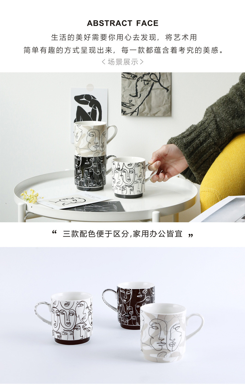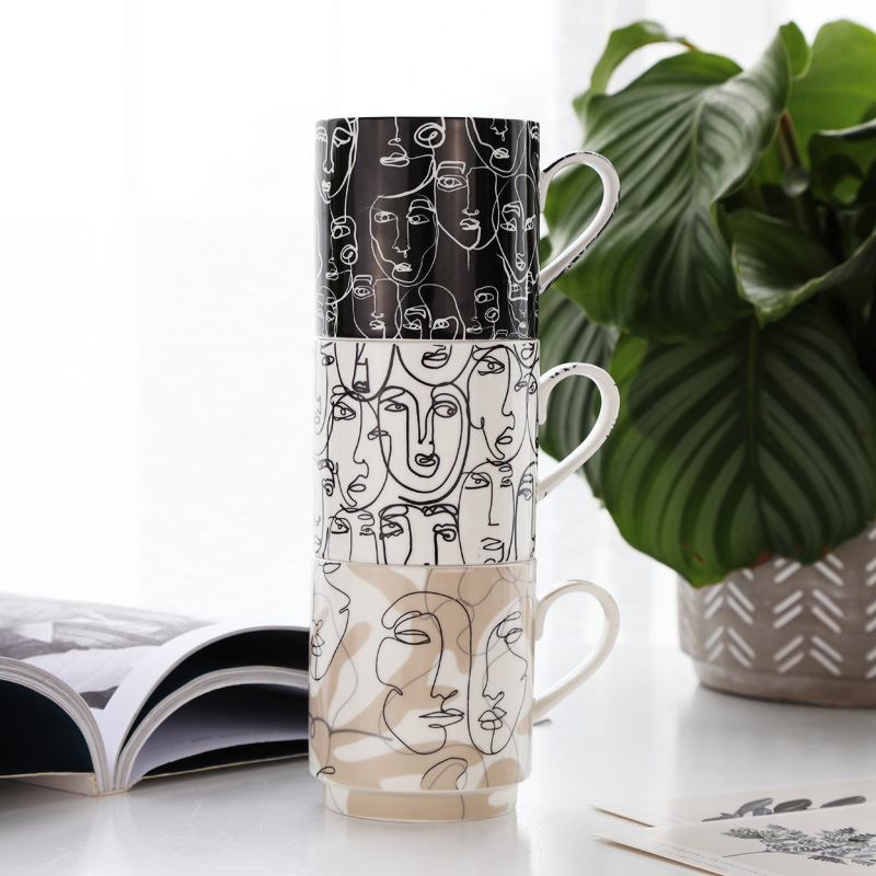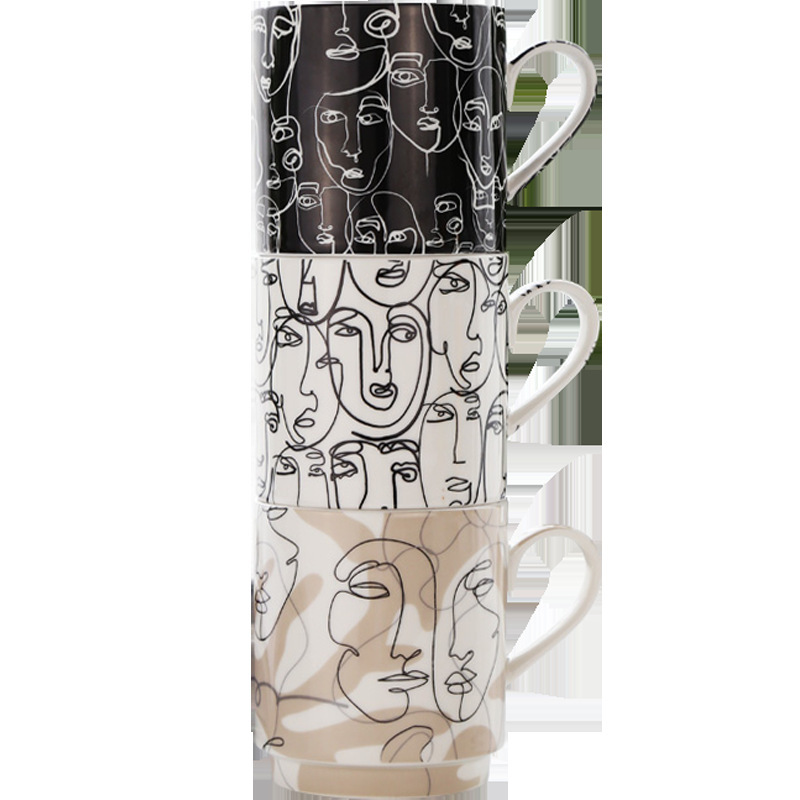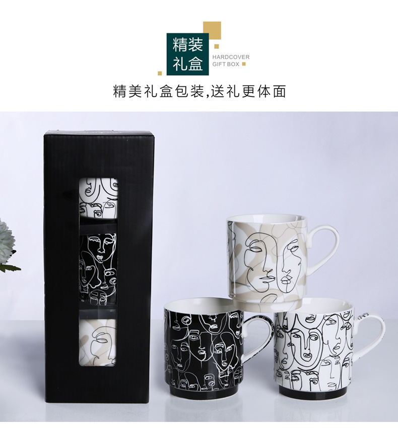 抽象人脸陶瓷杯陶瓷马克杯三件套礼盒装礼品陶瓷水杯咖啡牛奶杯子