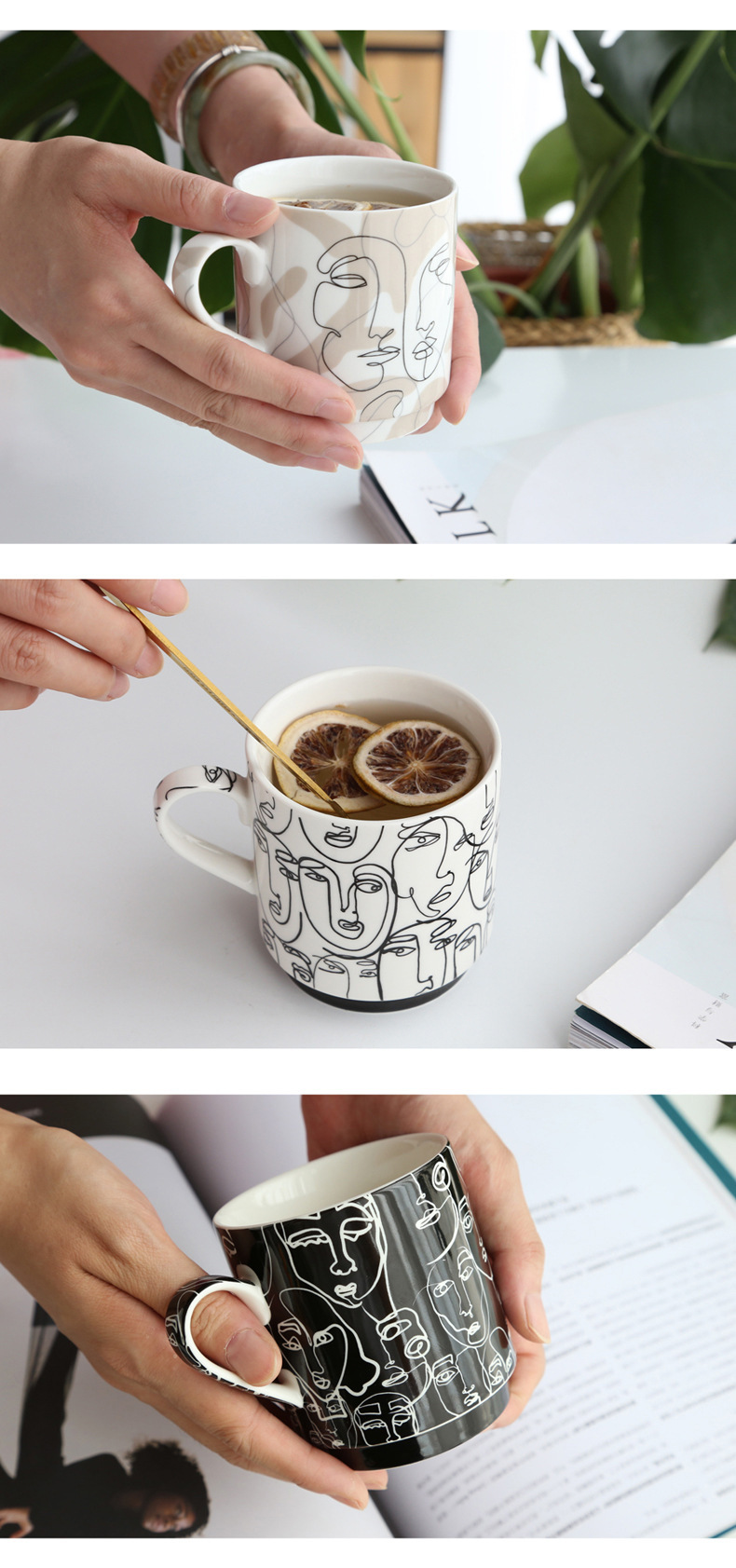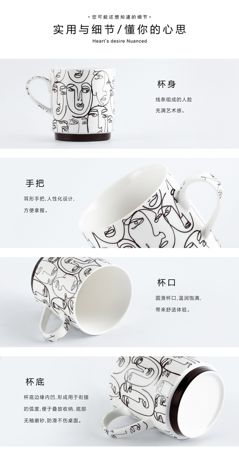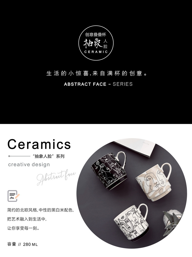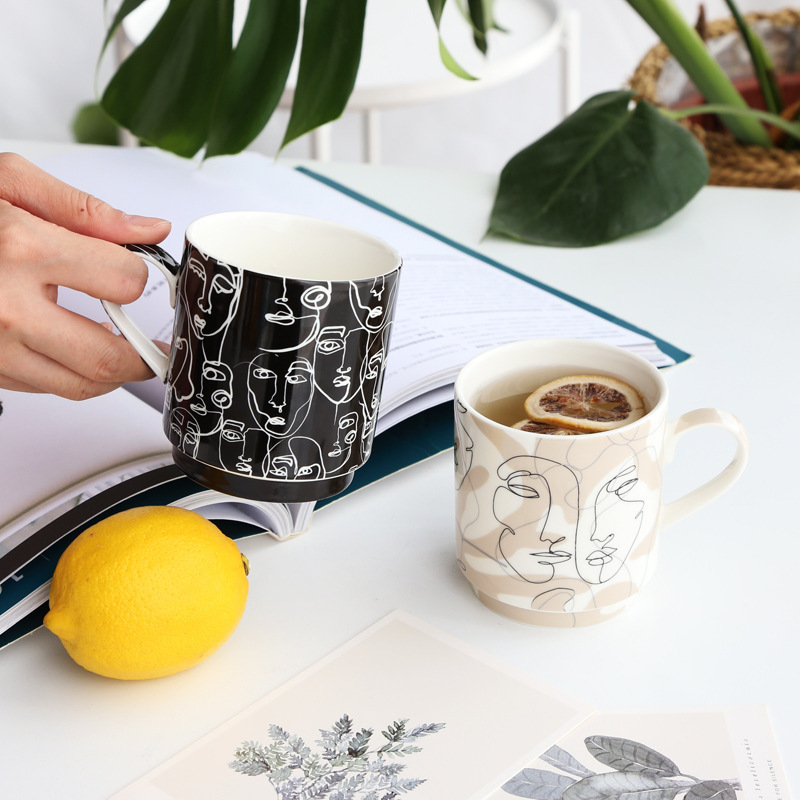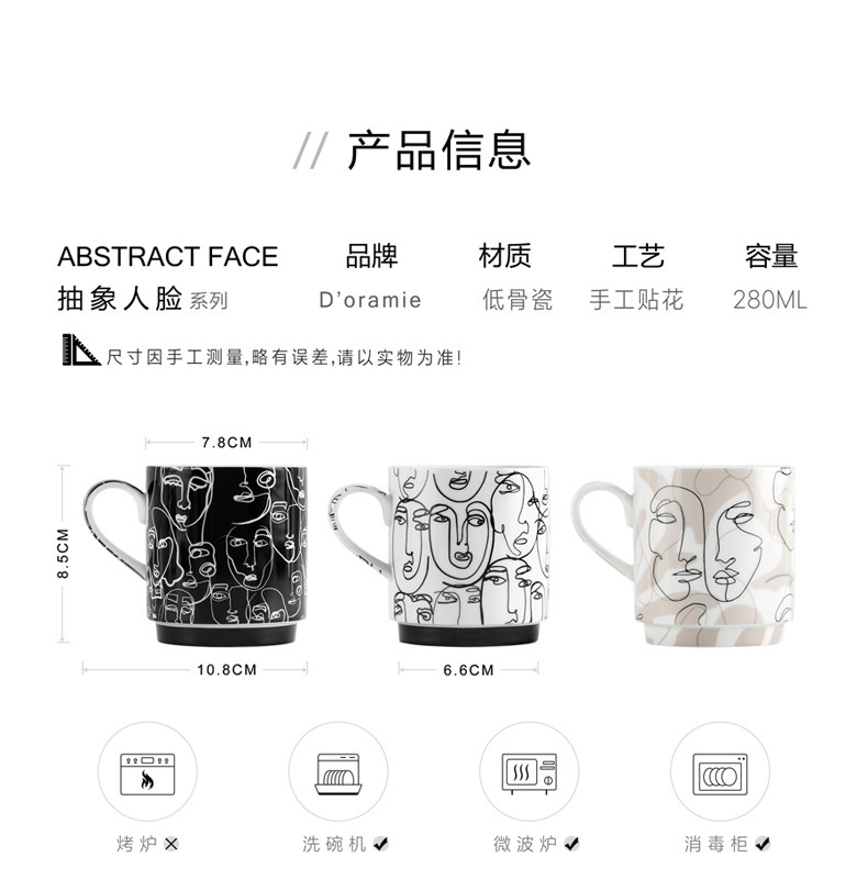 抽象人脸陶瓷杯陶瓷马克杯三件套礼盒装礼品陶瓷水杯咖啡牛奶杯子