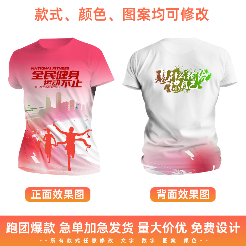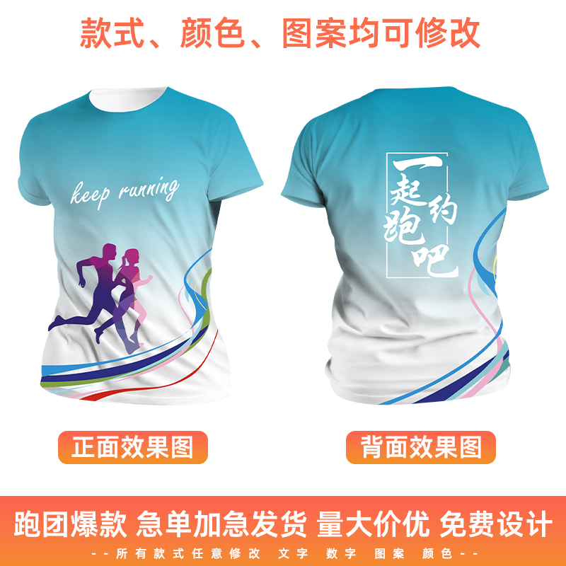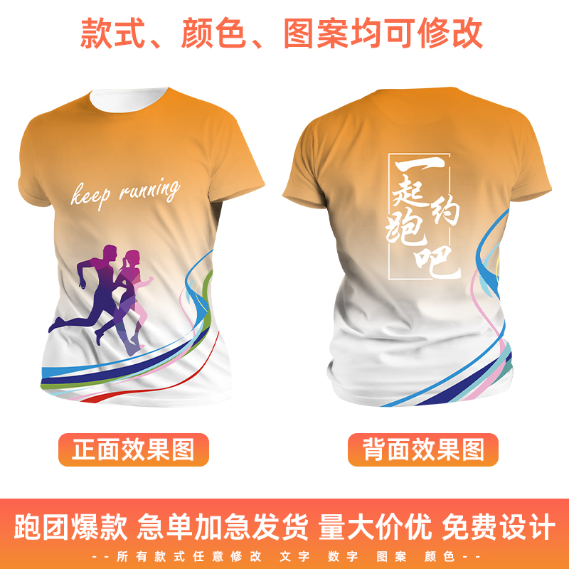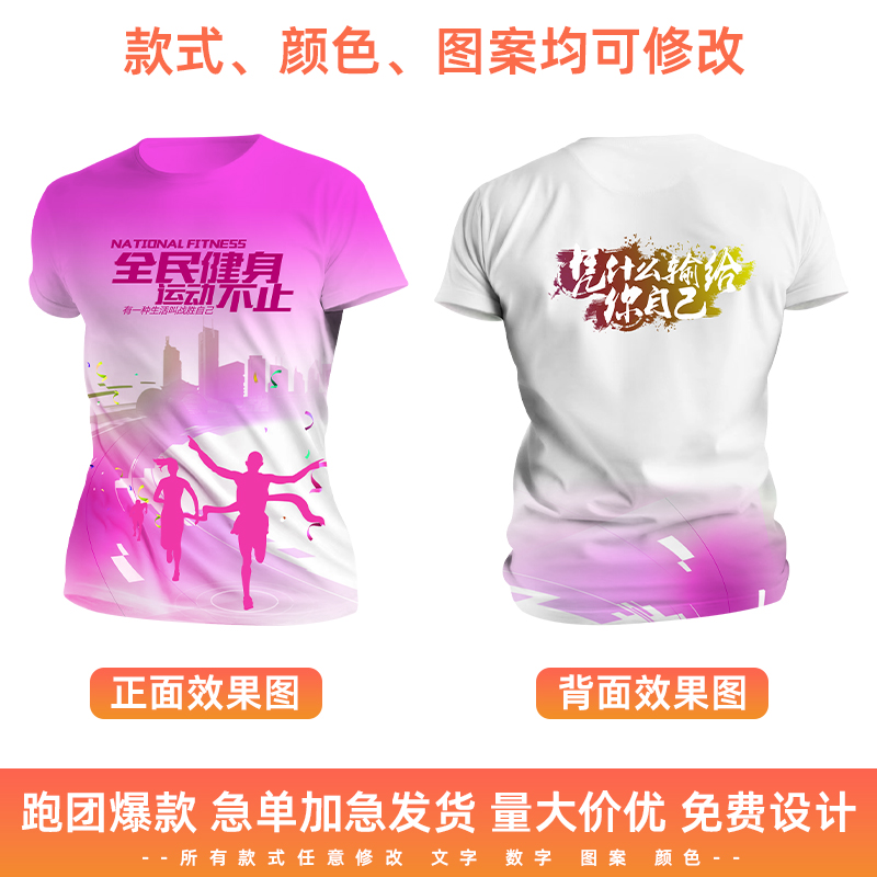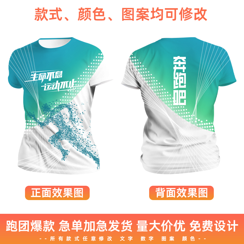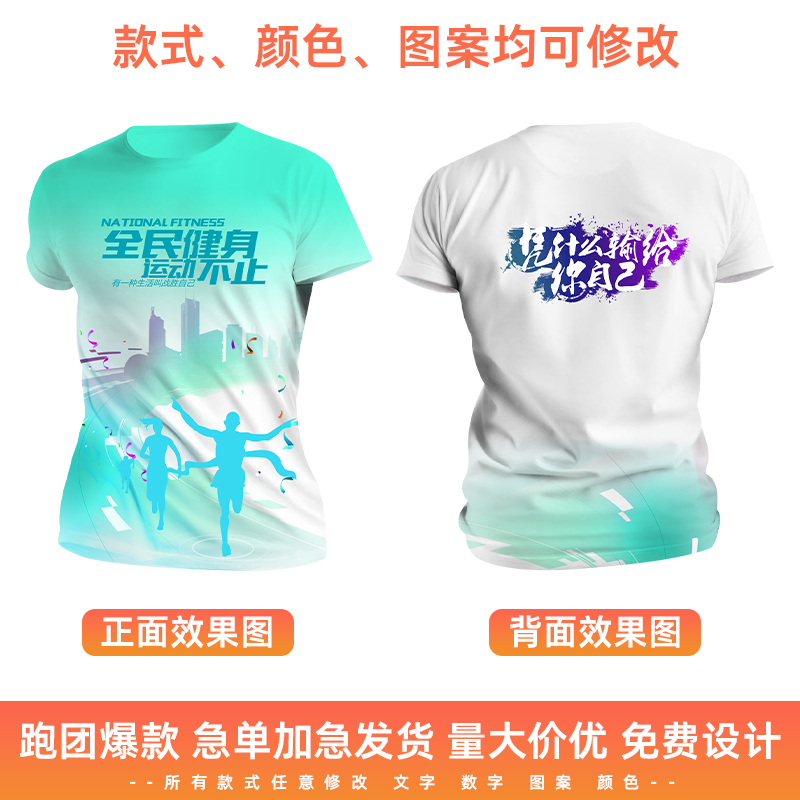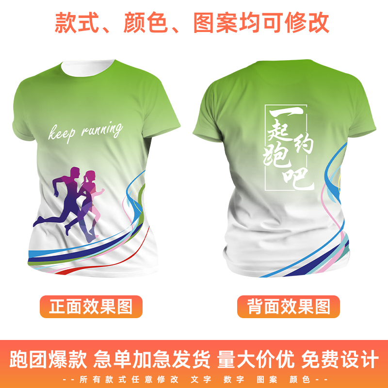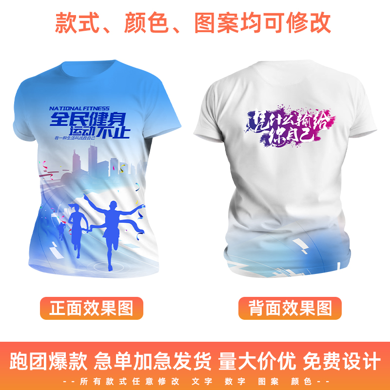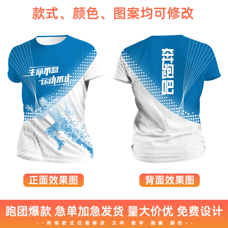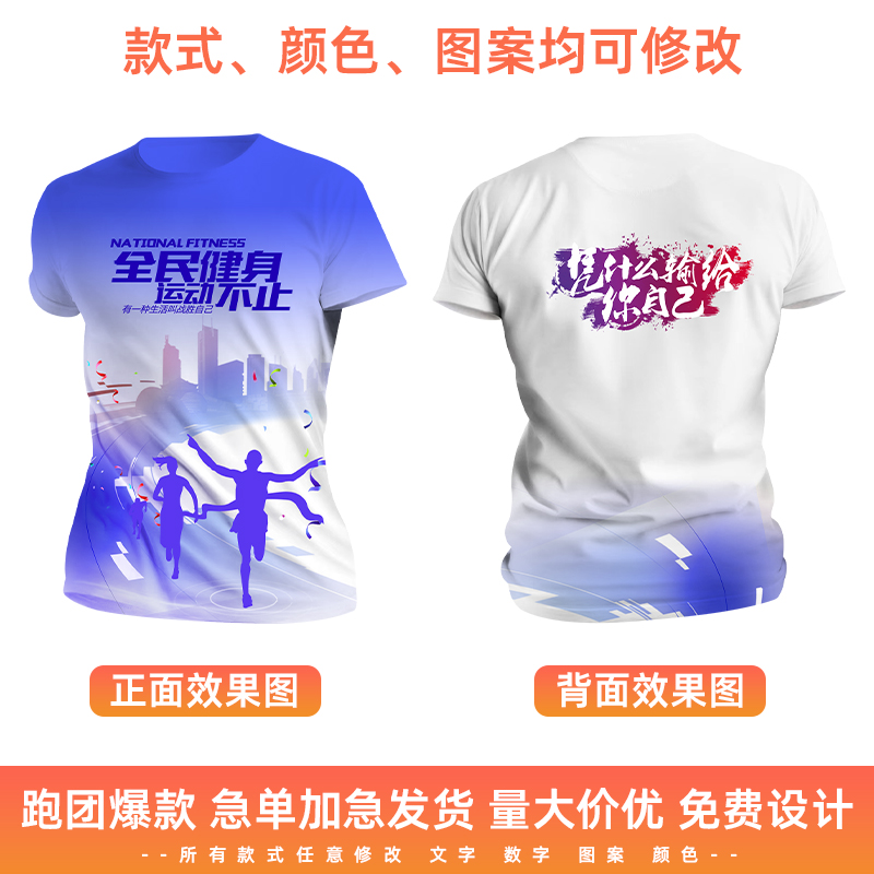 马拉松跑步服定制衣服logo印字速乾T恤马拉松跑团运动短袖团体服