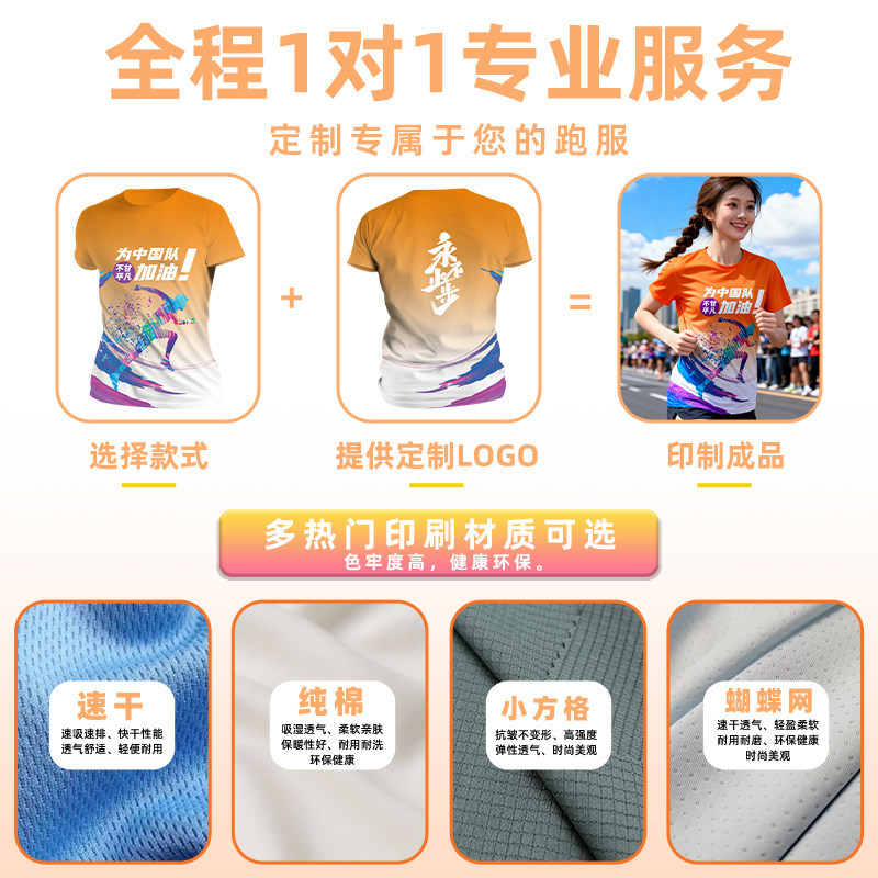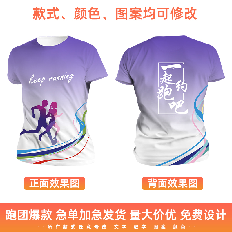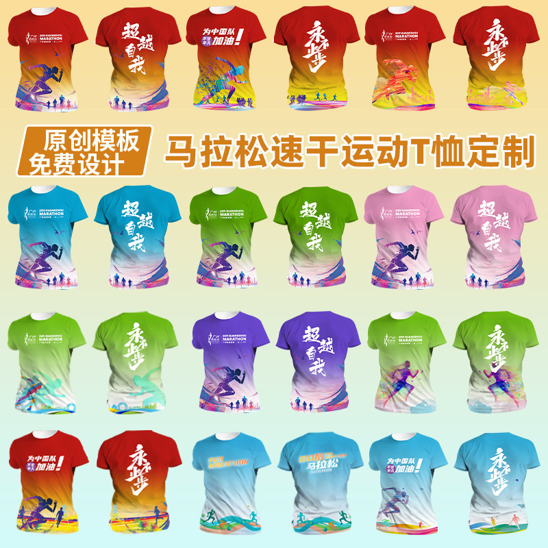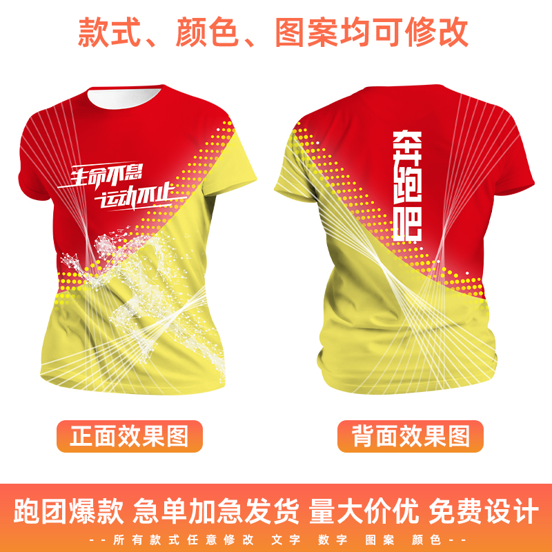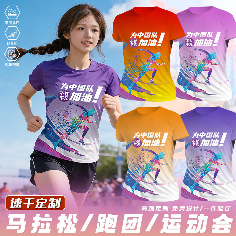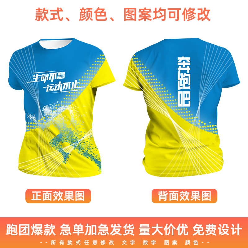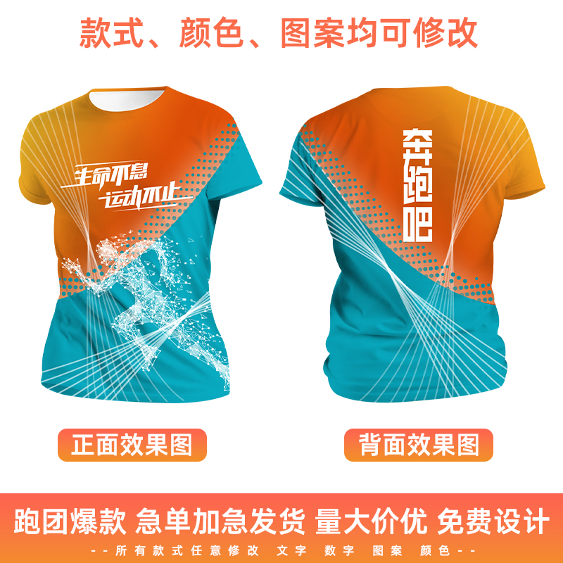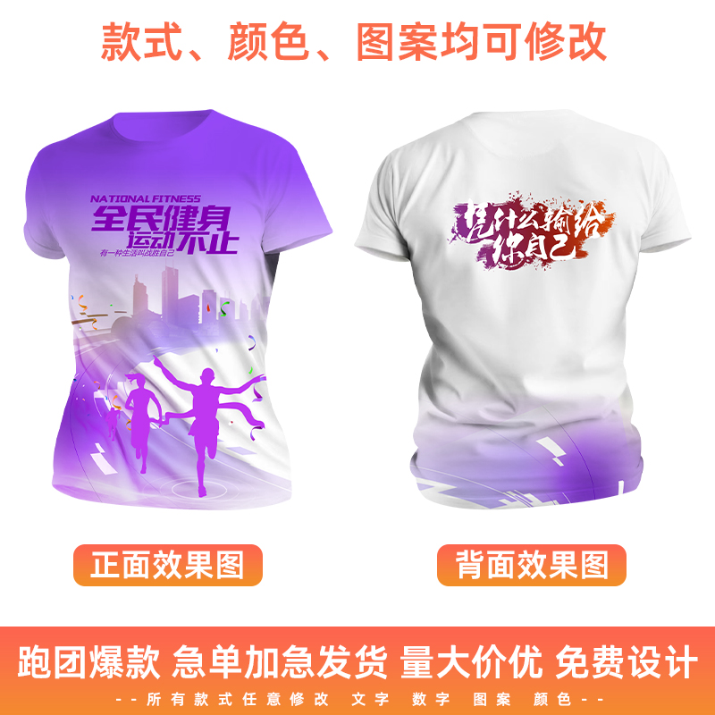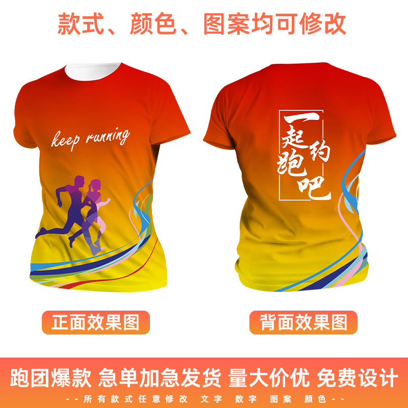马拉松跑步服定制衣服logo印字速乾T恤马拉松跑团运动短袖团体服