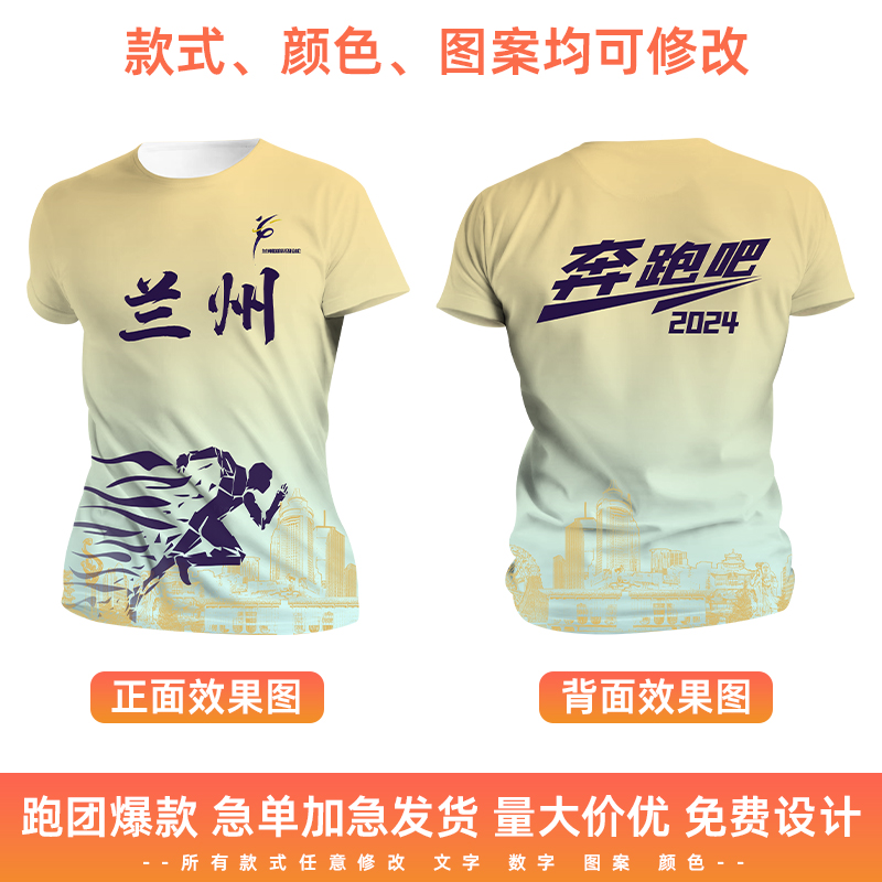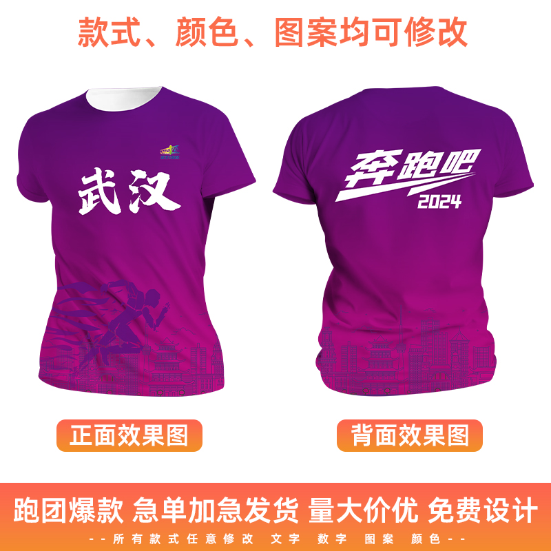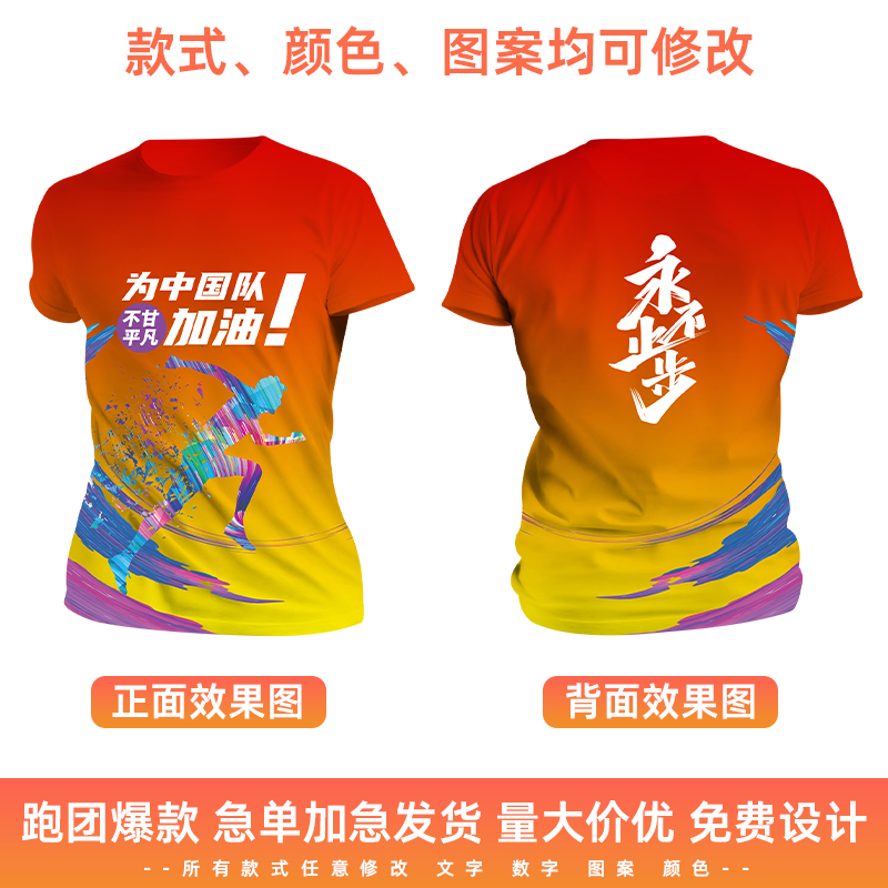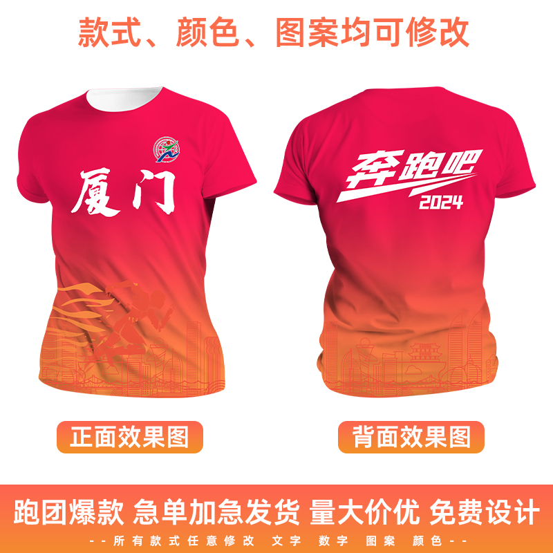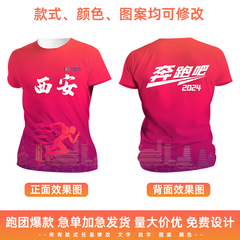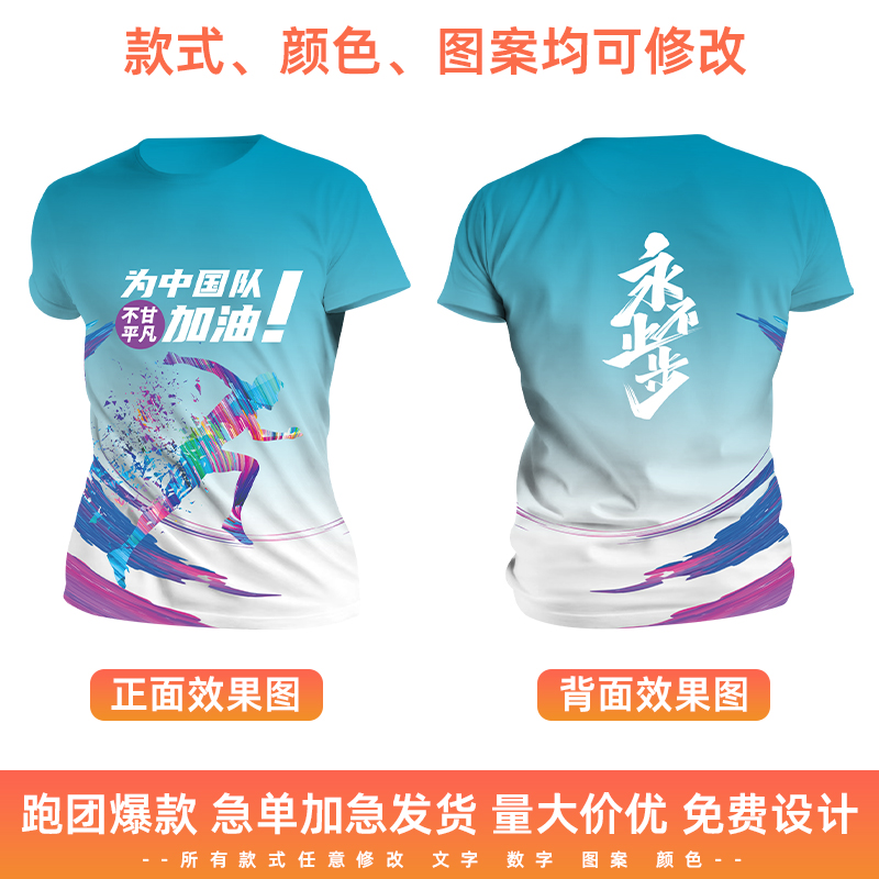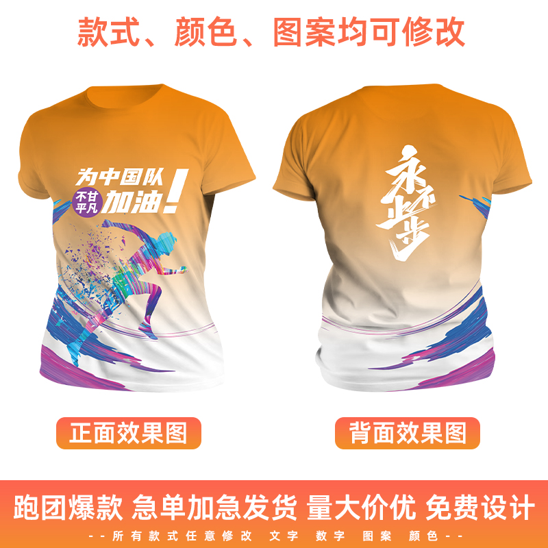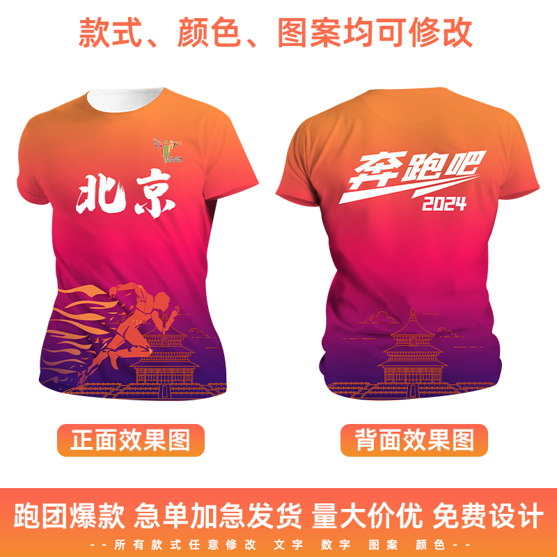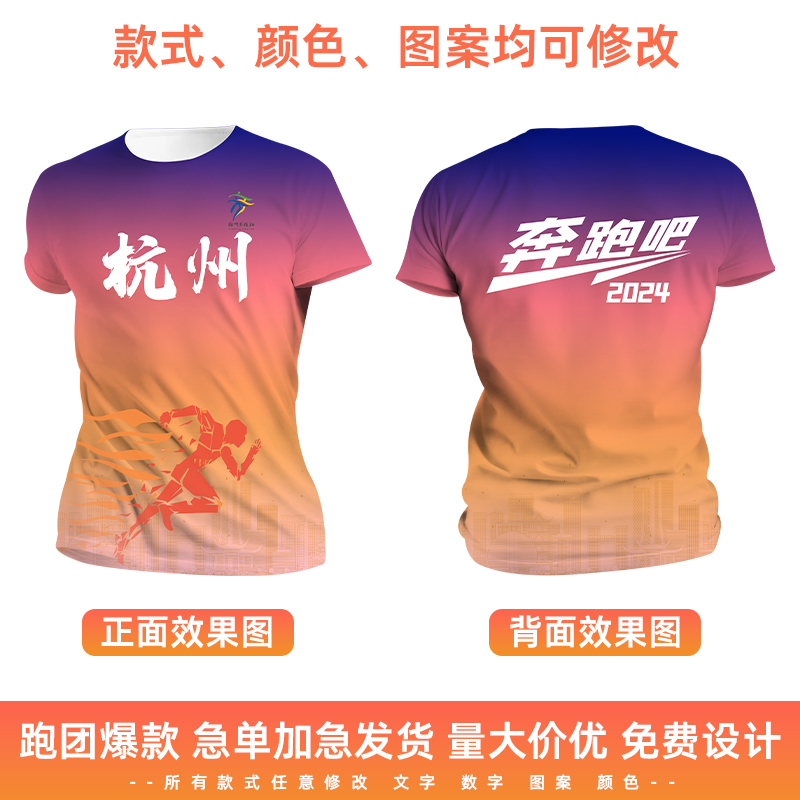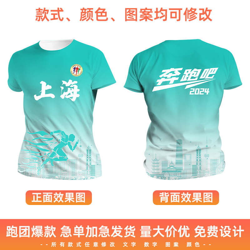 马拉松跑步服定制衣服logo印字速乾T恤马拉松跑团运动短袖团体服