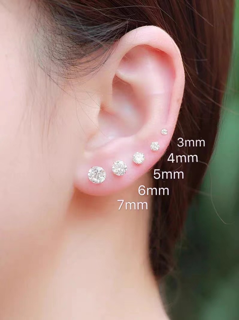 爆款925针锆石时尚简约百搭白色锆石养耳洞小巧迷你简约耳钉