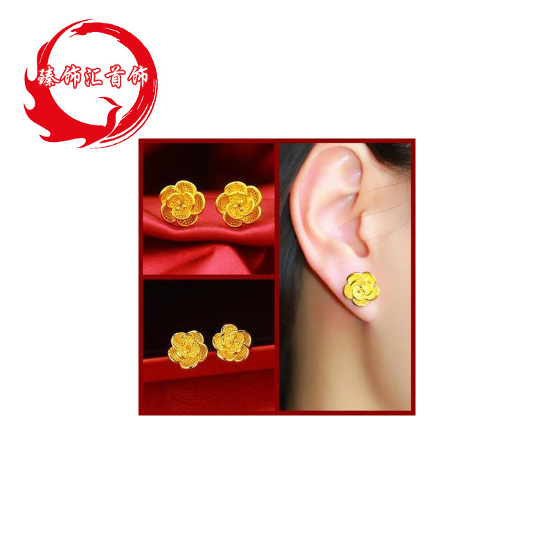 玫瑰花耳钉耳饰铜镀金超仙时尚新款清新甜美久不掉色厂家批发