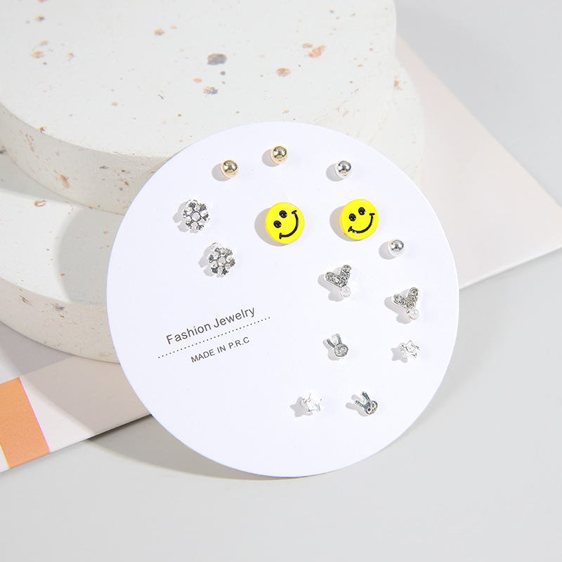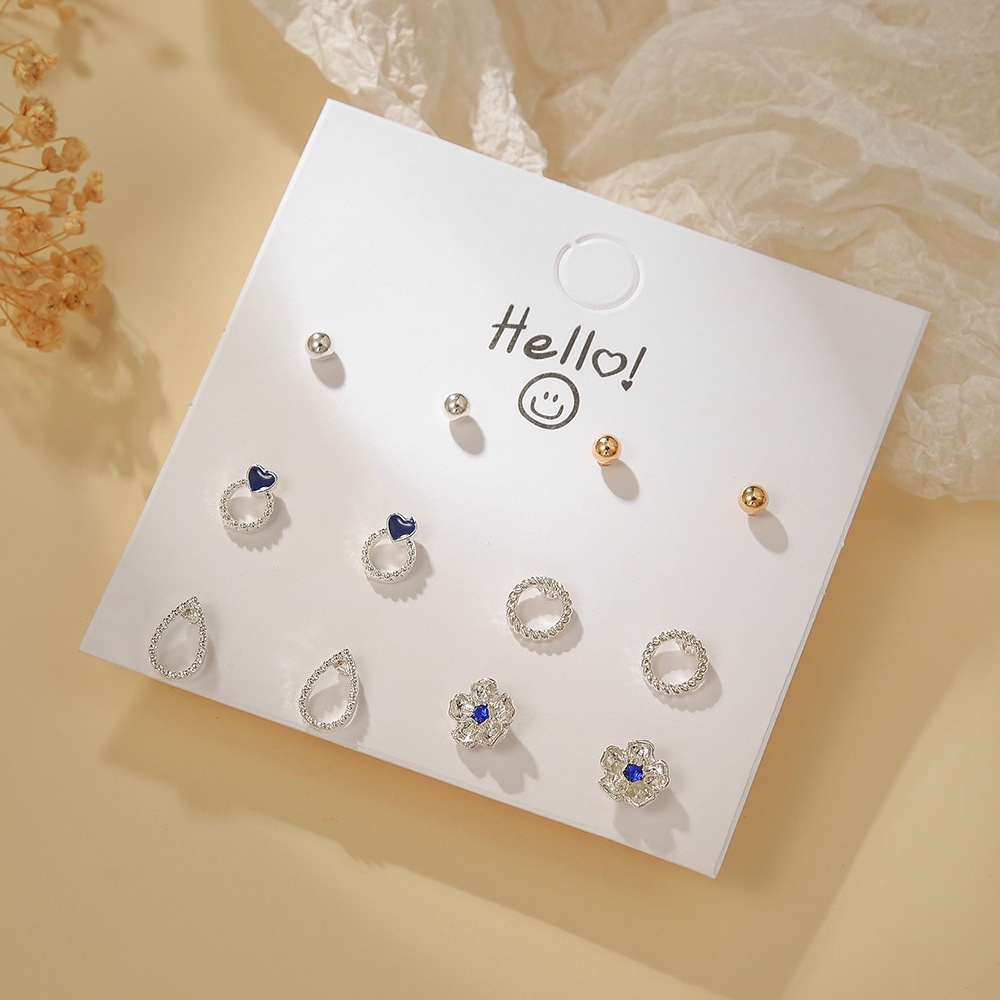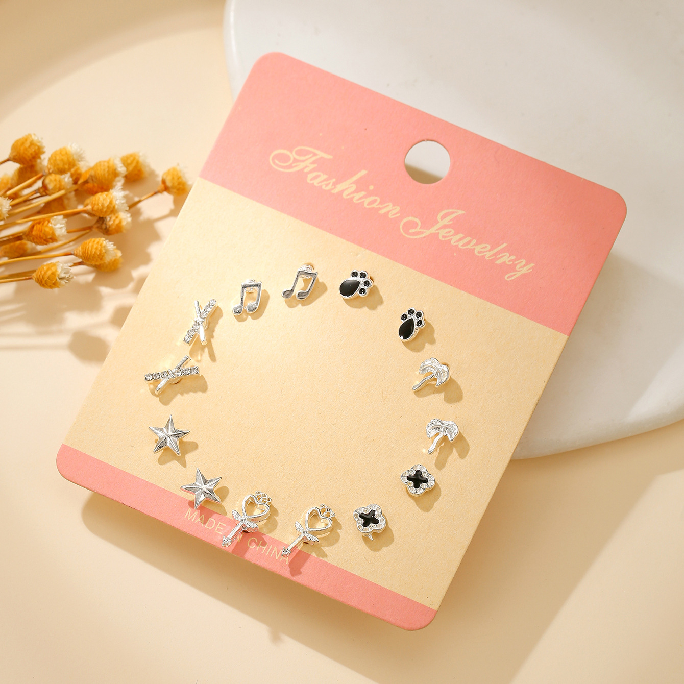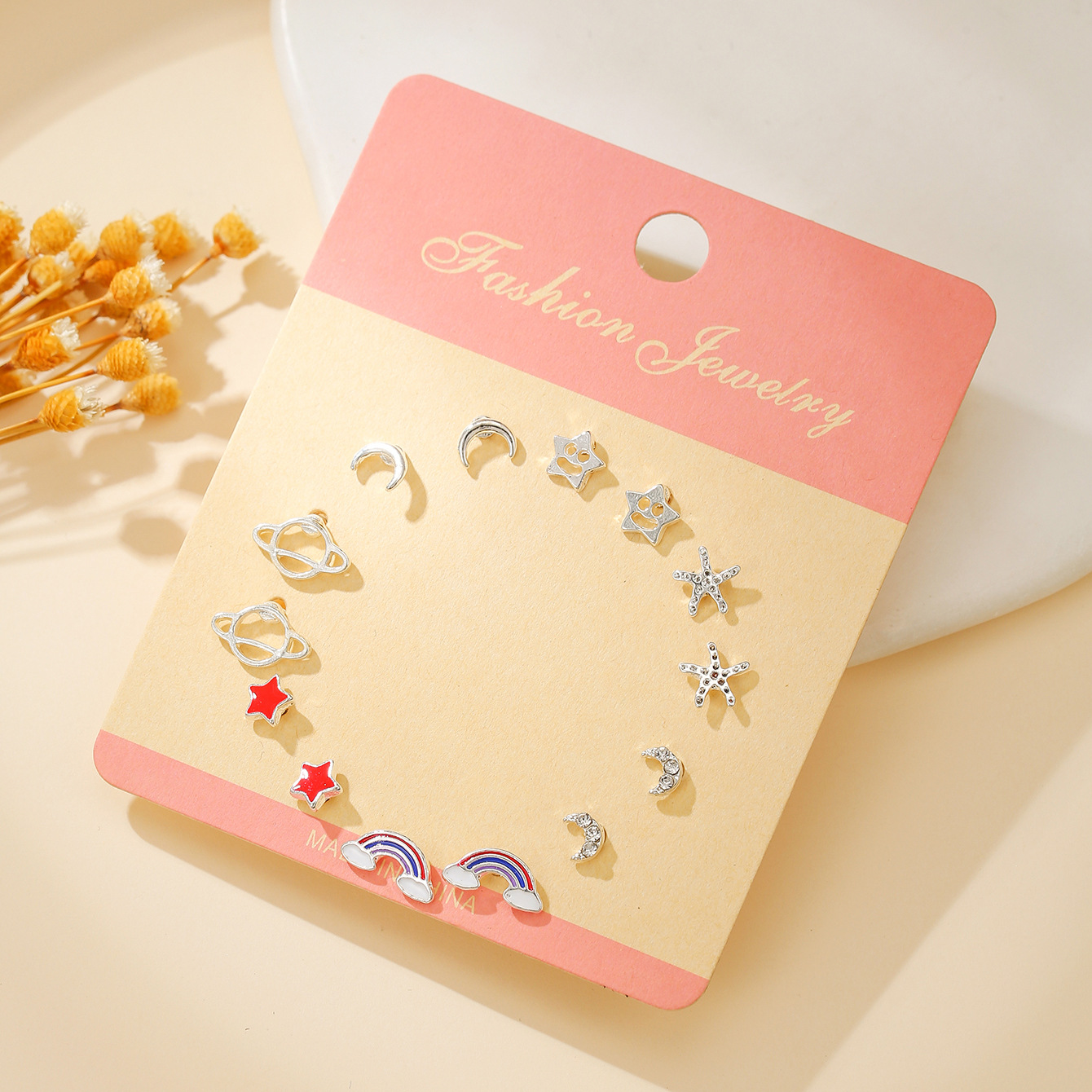 韩版可爱小巧一周耳钉套装 7对装气质小众高级感卡通彩学生耳饰品
