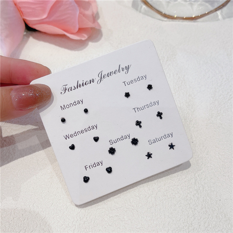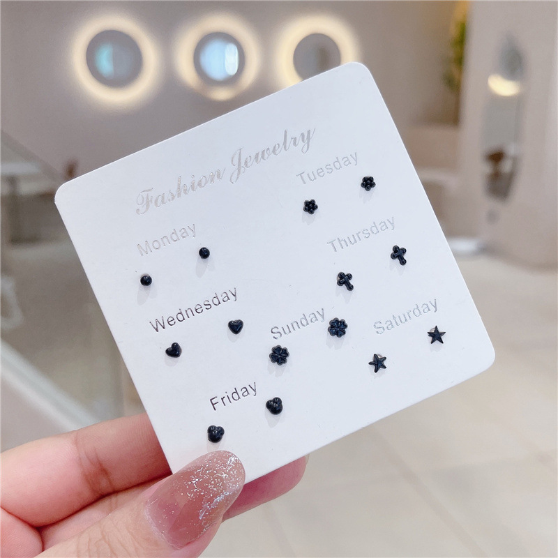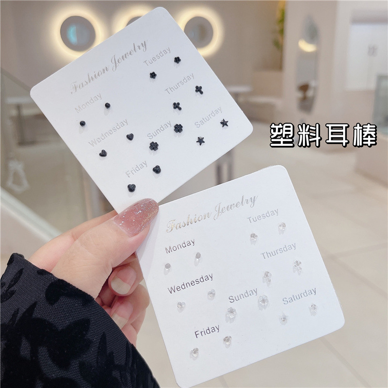 新款迷你耳钉养耳洞塑料耳棒套装小巧爱心花朵五角星组合耳饰批发