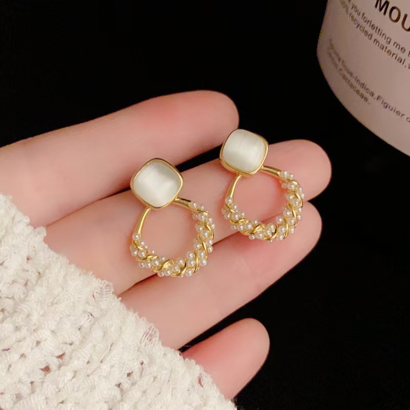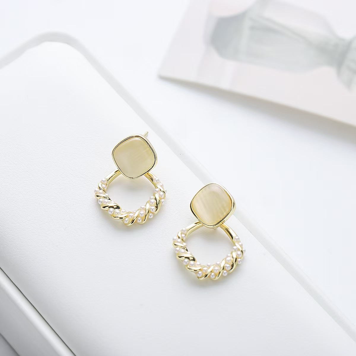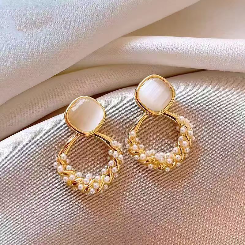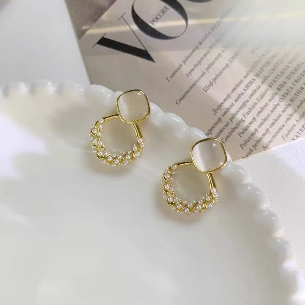 新款猫眼石时尚气质百搭耳钉小众设计简约精致时尚轻奢高级感耳饰