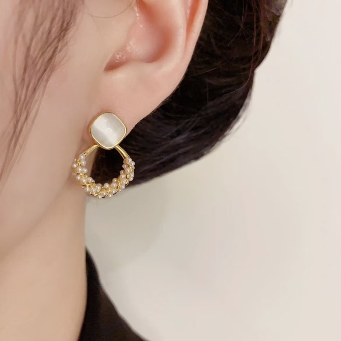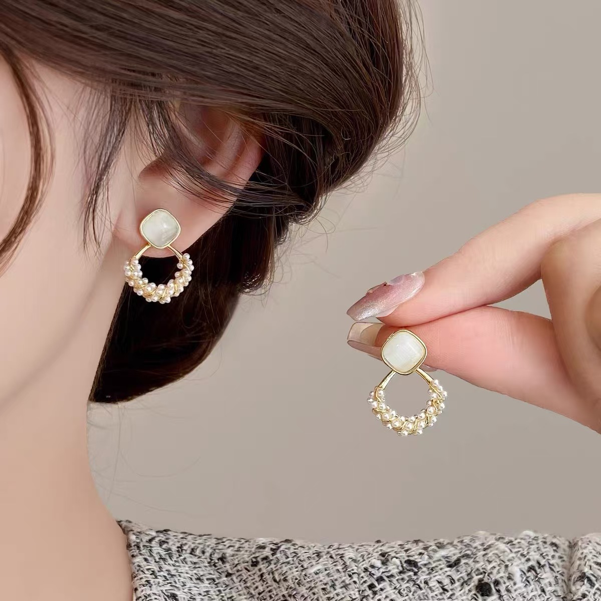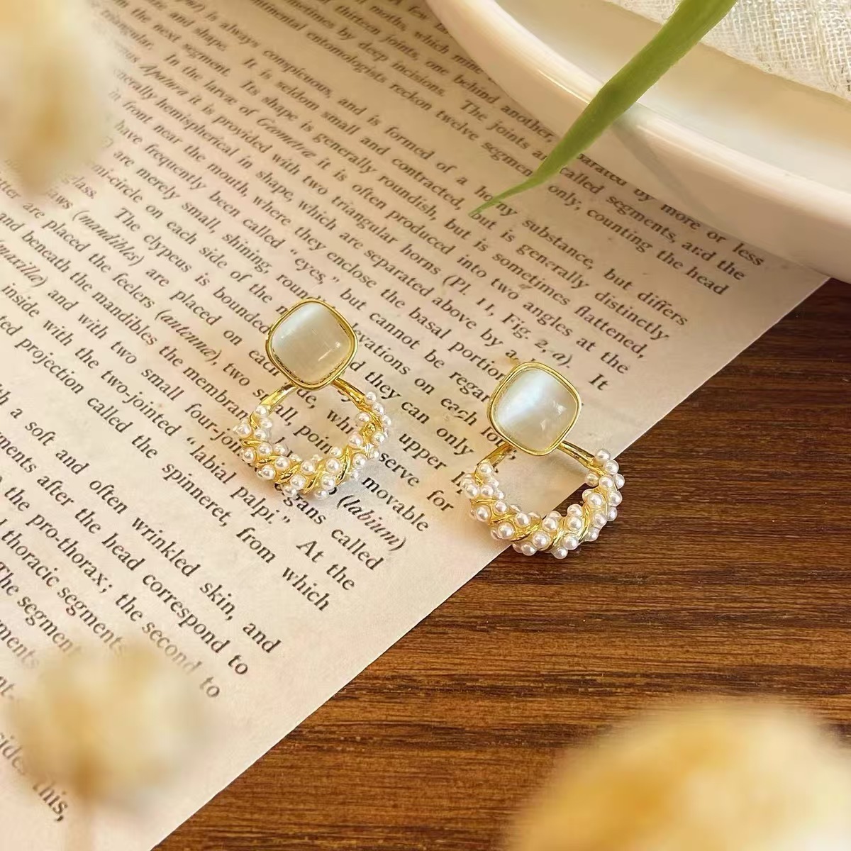 新款猫眼石时尚气质百搭耳钉小众设计简约精致时尚轻奢高级感耳饰