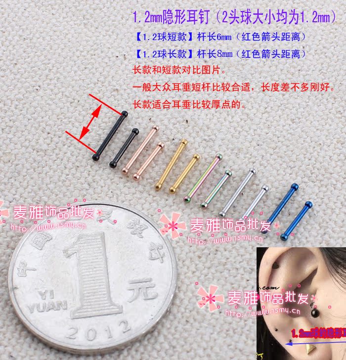 韩版 迷你时尚隐形小耳钉 小耳洞 耳骨钉 耳饰 防堵塞耳钉W01