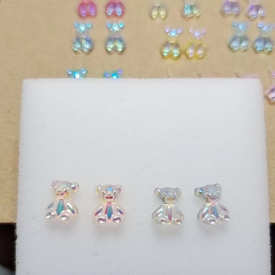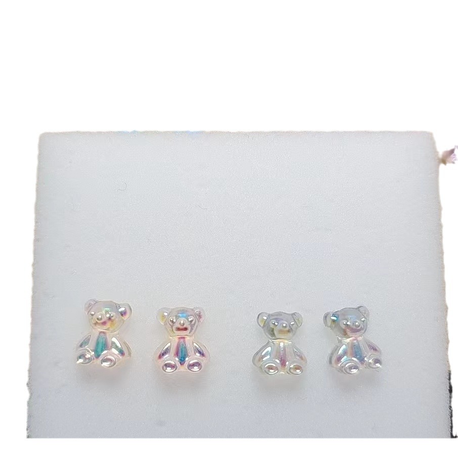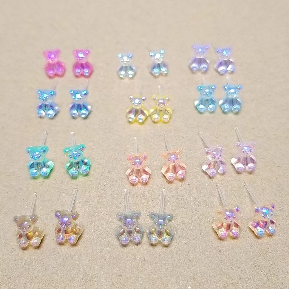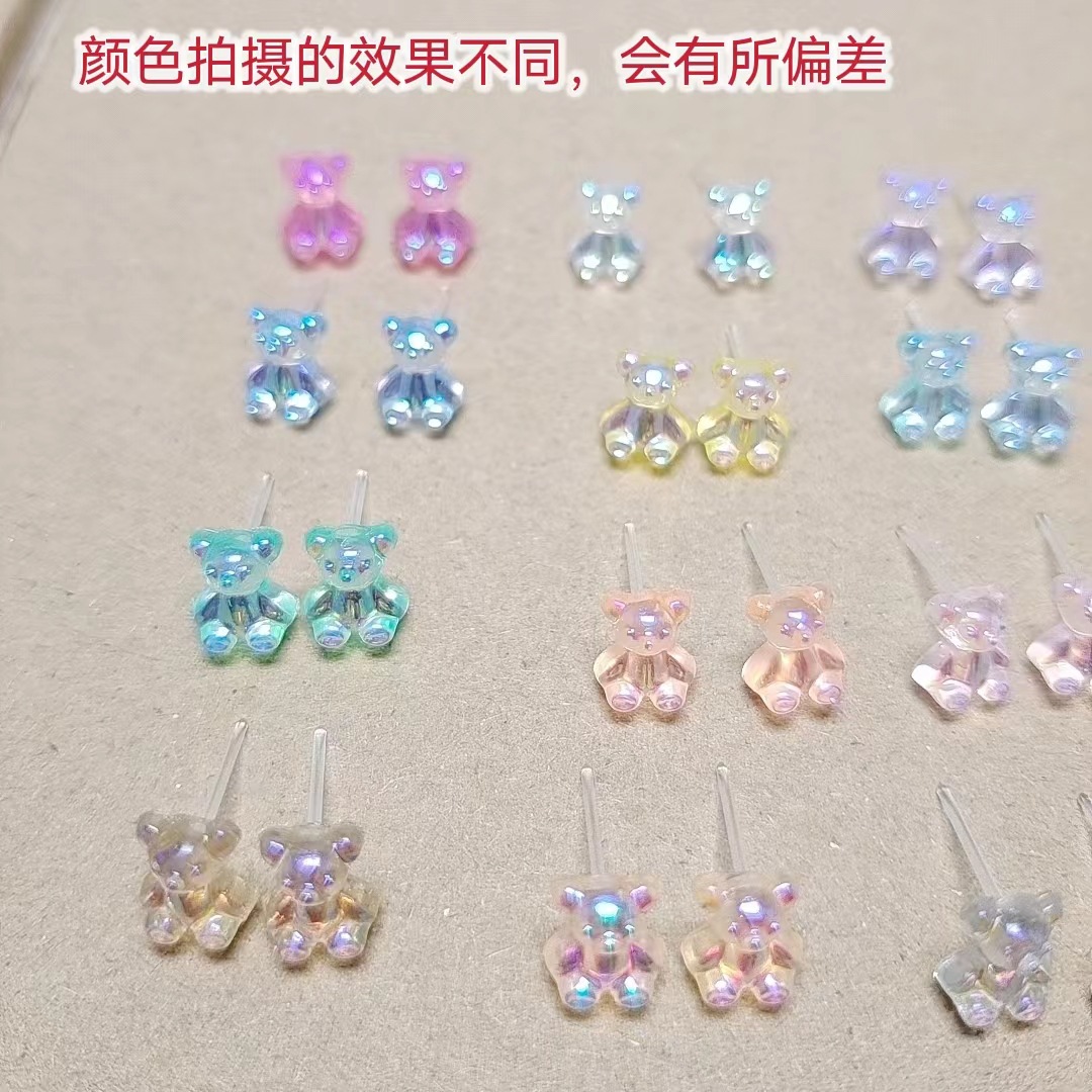 树脂塑料耳钉极光小熊透明耳针养耳洞超萌可爱网红耳饰耳钉批发