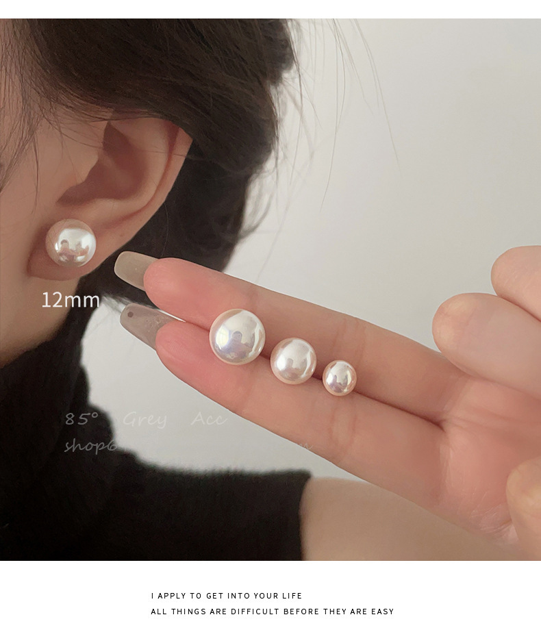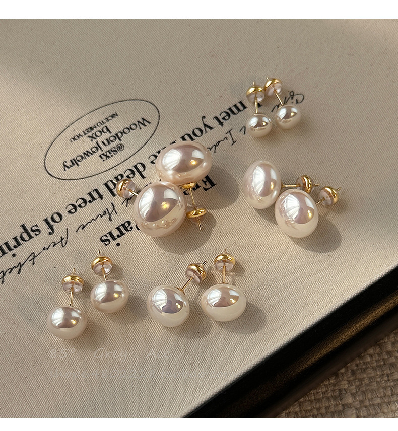 新年元旦新款施家馒头珍珠耳钉女百搭925银针耳钉奶白珍珠耳钉