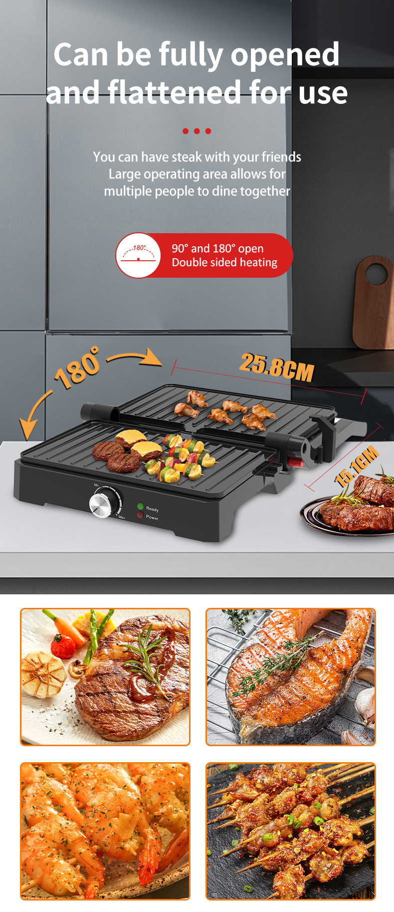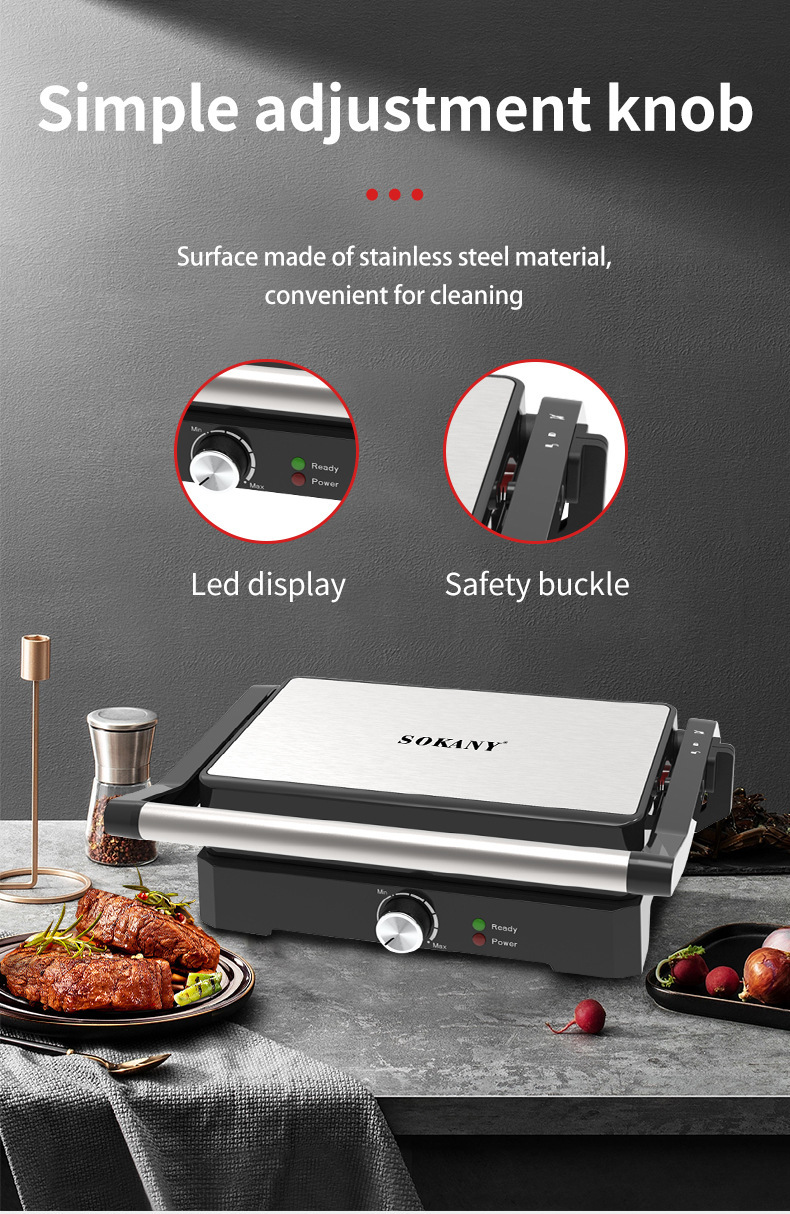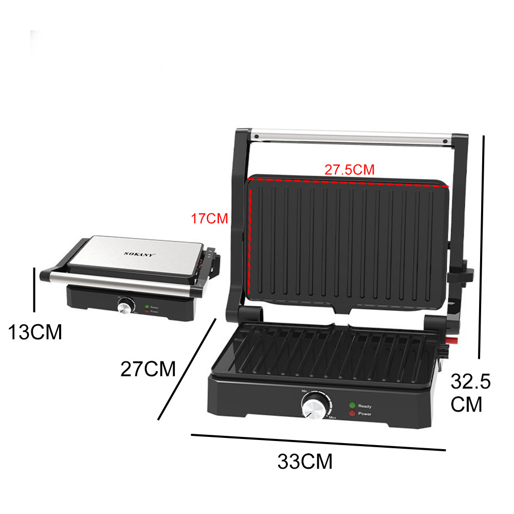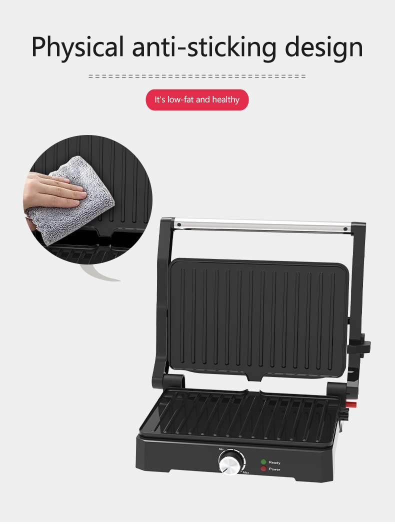 跨境出口热销帕尼尼机三明治机 家用180度摊平牛排机烤肉机汉堡面