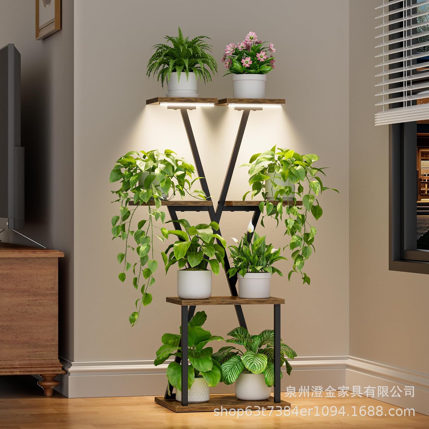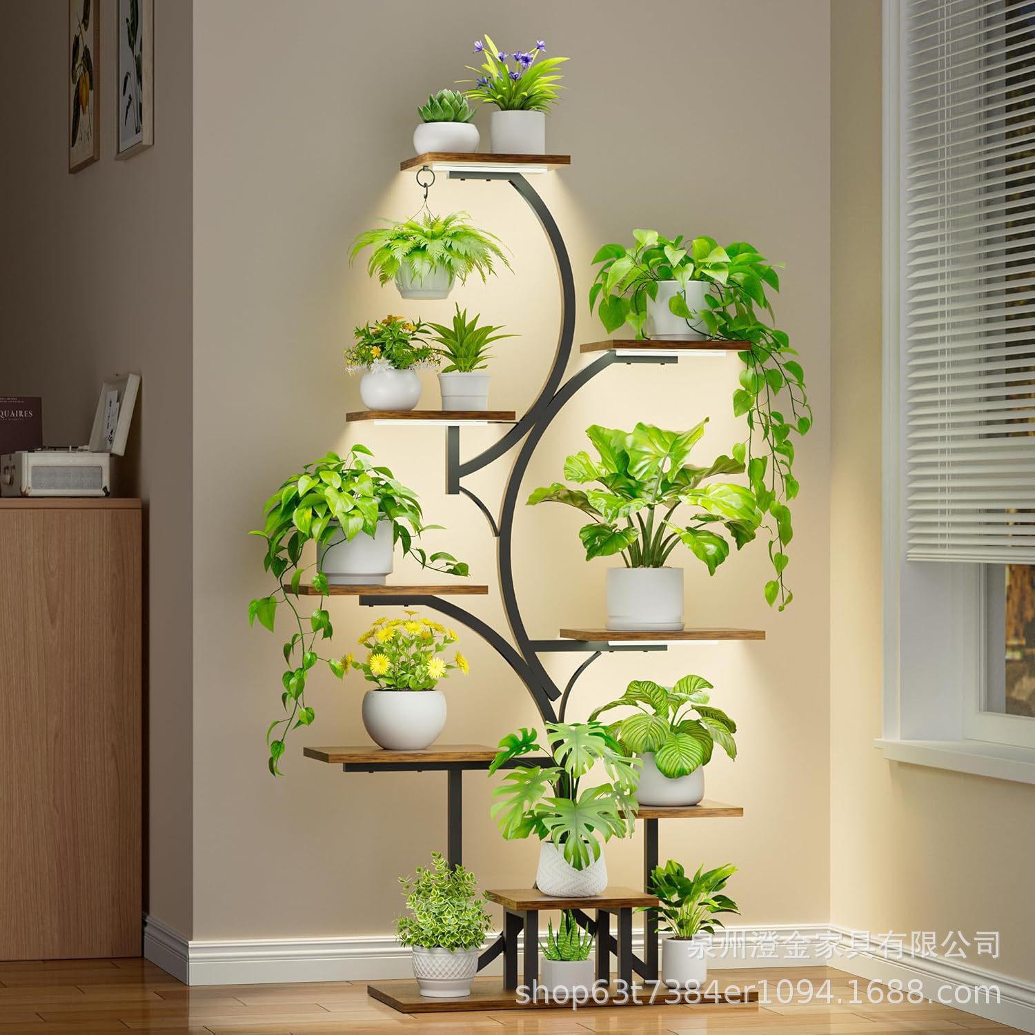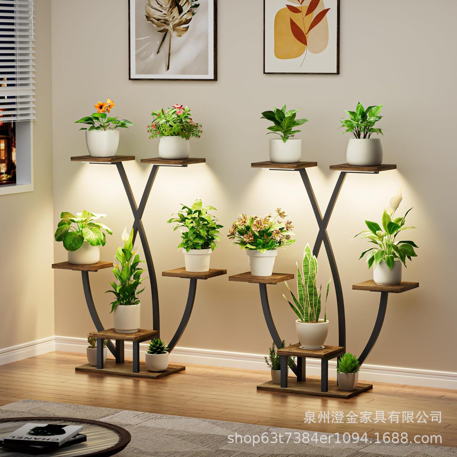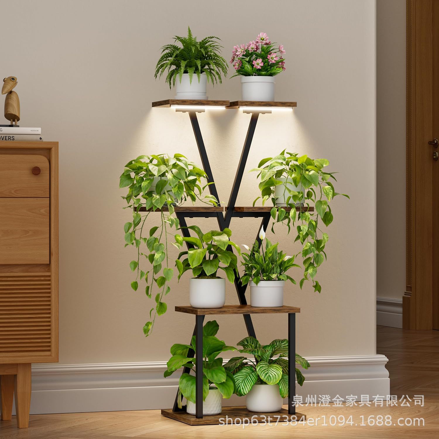 客厅带灯花架生长灯植物支架多层花架室内外阳台带生长灯植物支架