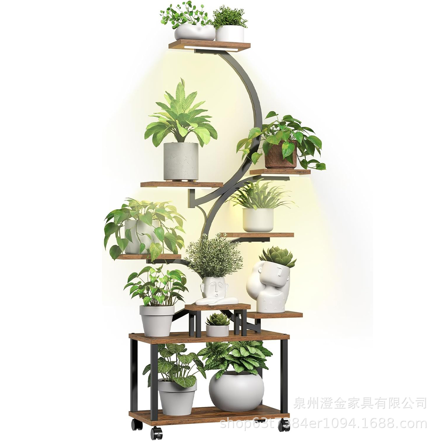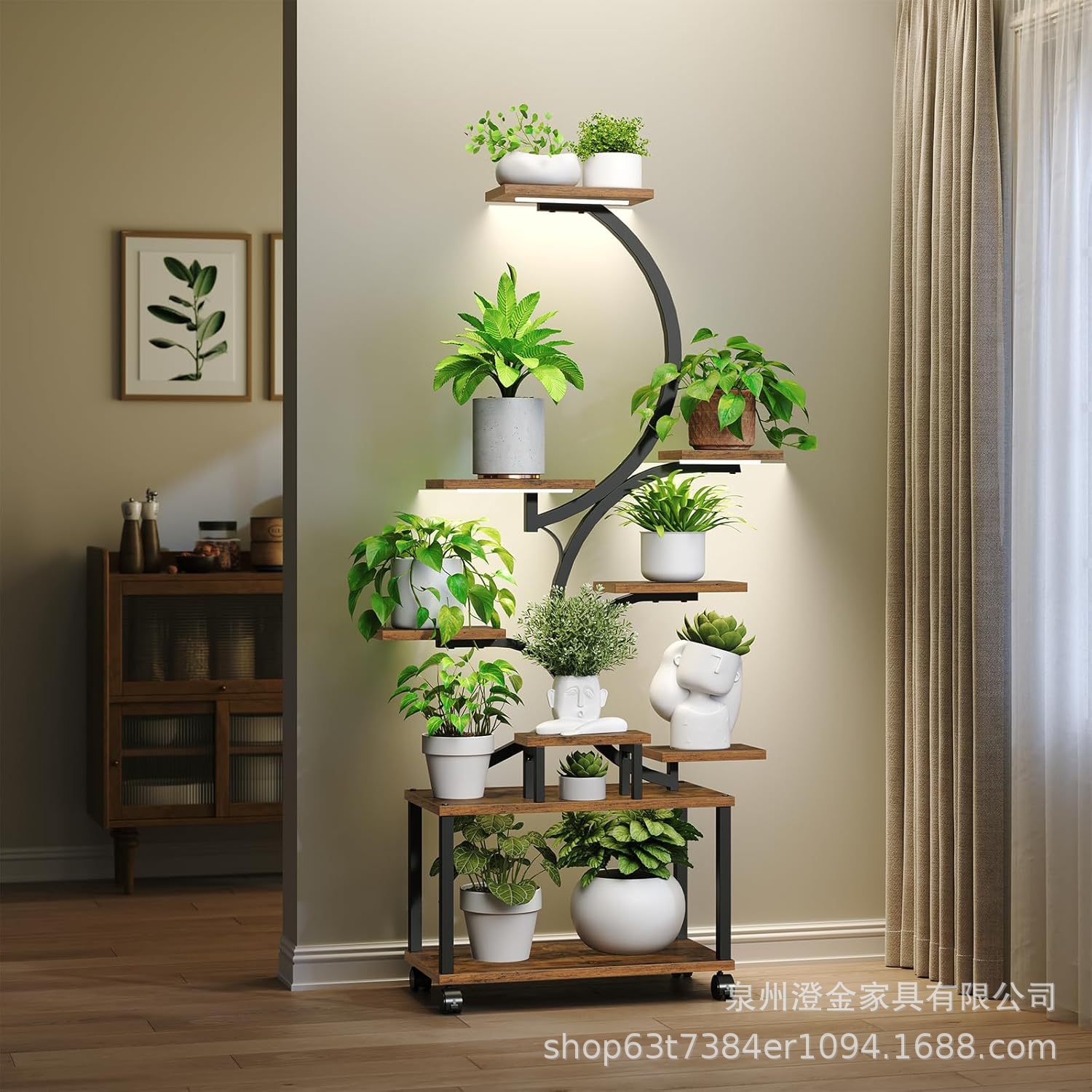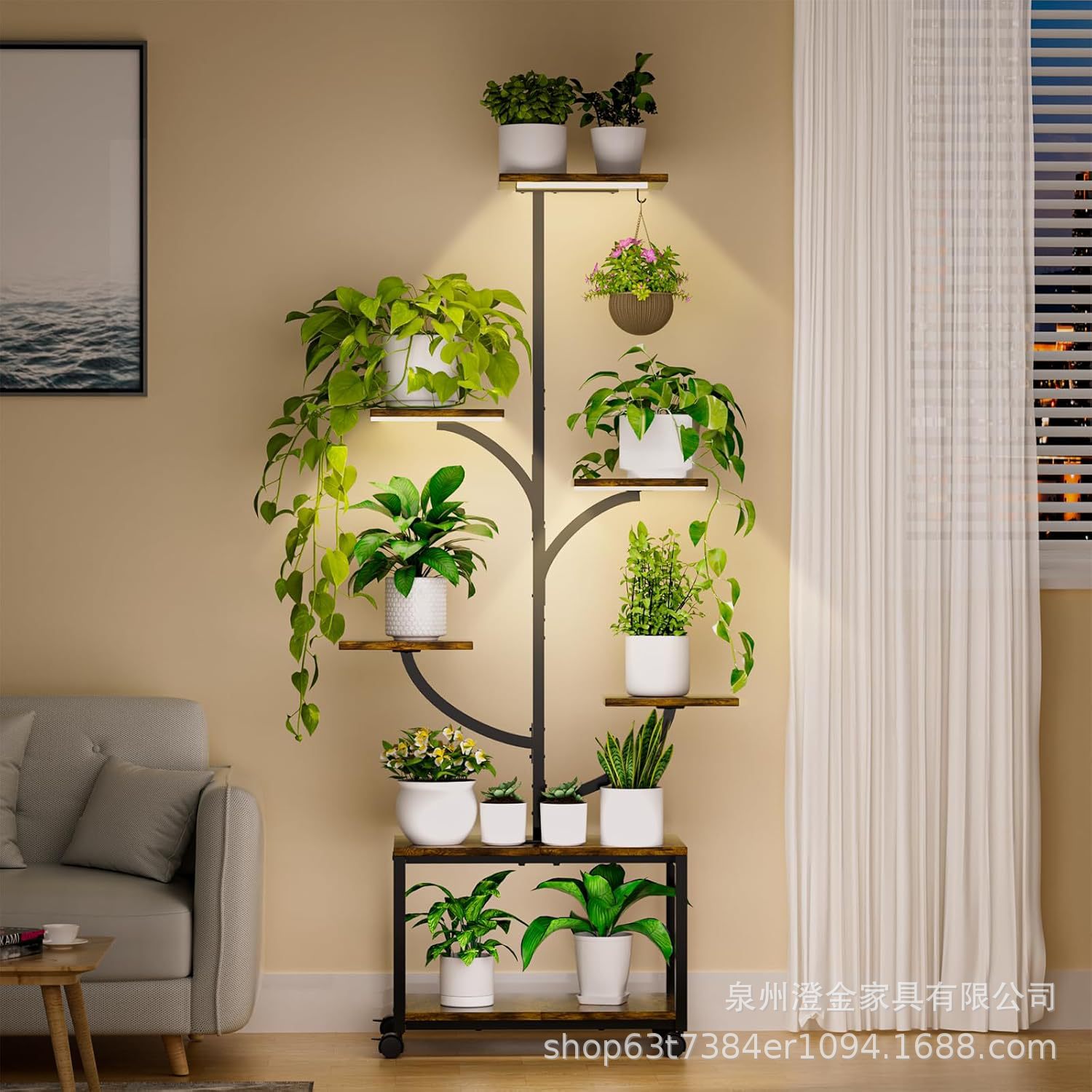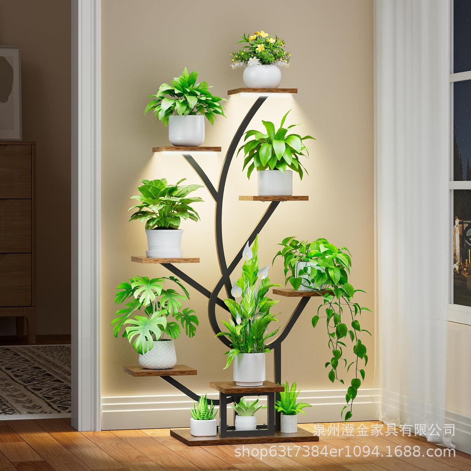 客厅带灯花架生长灯植物支架多层花架室内外阳台带生长灯植物支架
